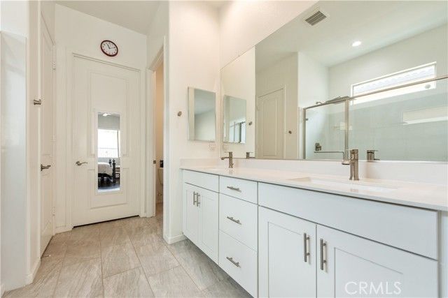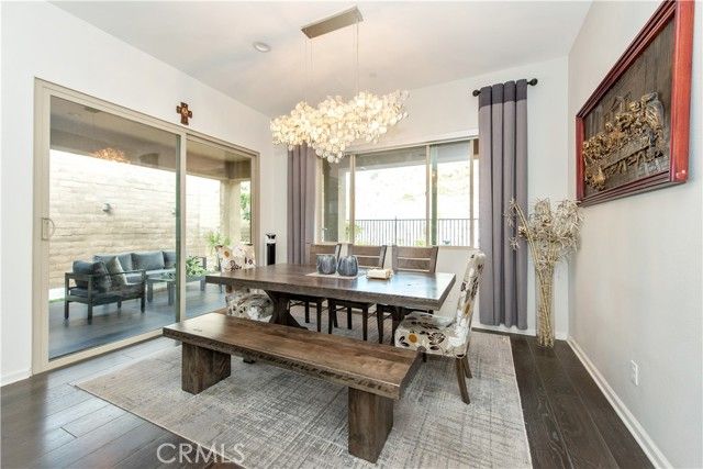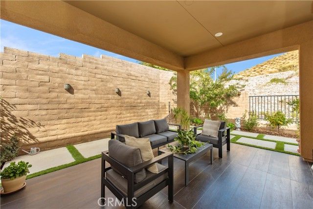 Turnkey! Enjoy effortless living earned at Terramor, a highly sought-after 24/7 guard-attended gated 55+ community. Located on a desirable corner lot, this cozy single-story home is designed for likeminded residents seeking peaceful well-being. The fully paid-off solar system locks in low electricity costs, providing immediate comfort and a lasting energy advantage. As you step into the home, it greets with an open, cozy living room filled with abundant natural light that flows seamlessly into the kitchen and dining area. Visualize preparing meals at the central island, where the kitchen elevates daily necessity with upgraded Quartz countertops, a sensor faucet, and an upgraded KitchenAid stainless appliance suite featuring a 6-burner range and a dedicated ventilation system that allows you to fully immerse in the gourmet experience to share with family. The interiors soothe senses with upgraded earthy tone paints and modern remote-controlled window blinds, complemented by a water softener for quality water and continuous upgraded wood flooring throughout the living space, all illuminated by recessed lighting and an upgraded dining room chandelier. Comfort is further enhanced by ceiling fans in the living room and both bedrooms. The master bedroom offers a good-sized walk-in closet with sensored lighting, while a second bedroom, currently used as an in-home office, demonstrates flexible living. Step through the sliding door from the dining room onto a private patio to entertain—the center of a tranquil, fully landscaped, low-maintenance backyard oasis, secured and ready for a genuinely relaxed life. Additional features include an upgraded glass-insert front door, upgraded tile at foyer, sensored lighting system in both bathrooms and walking closet, patio, and foyer, an individual laundry room, tankless water heater, 2-car attached garage, and a smart water conserve sprinkler system. Your fulfilled quality living is supported by HOA amenities including indoor/outdoor pools, a gym, clubhouse, sauna, gated access, pickleball/tennis/sports courts, a dog park, and banquet facilities.