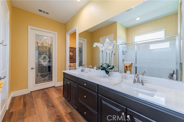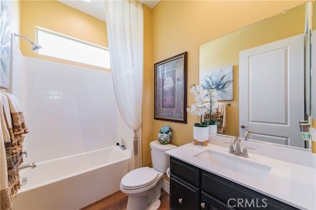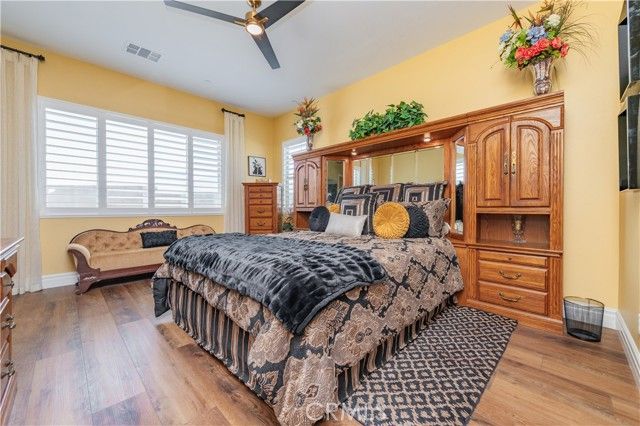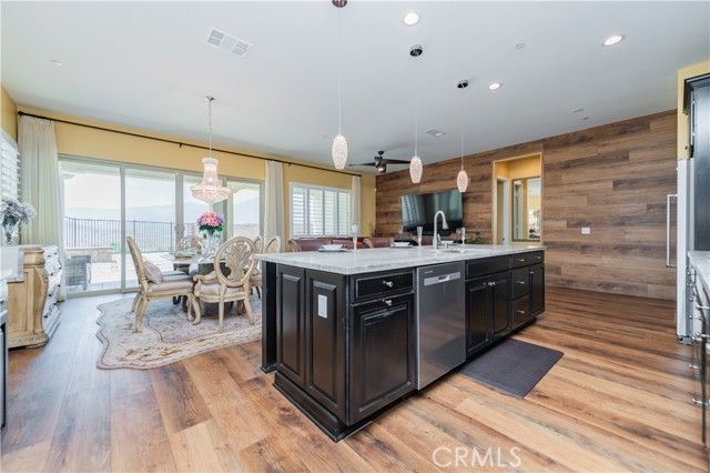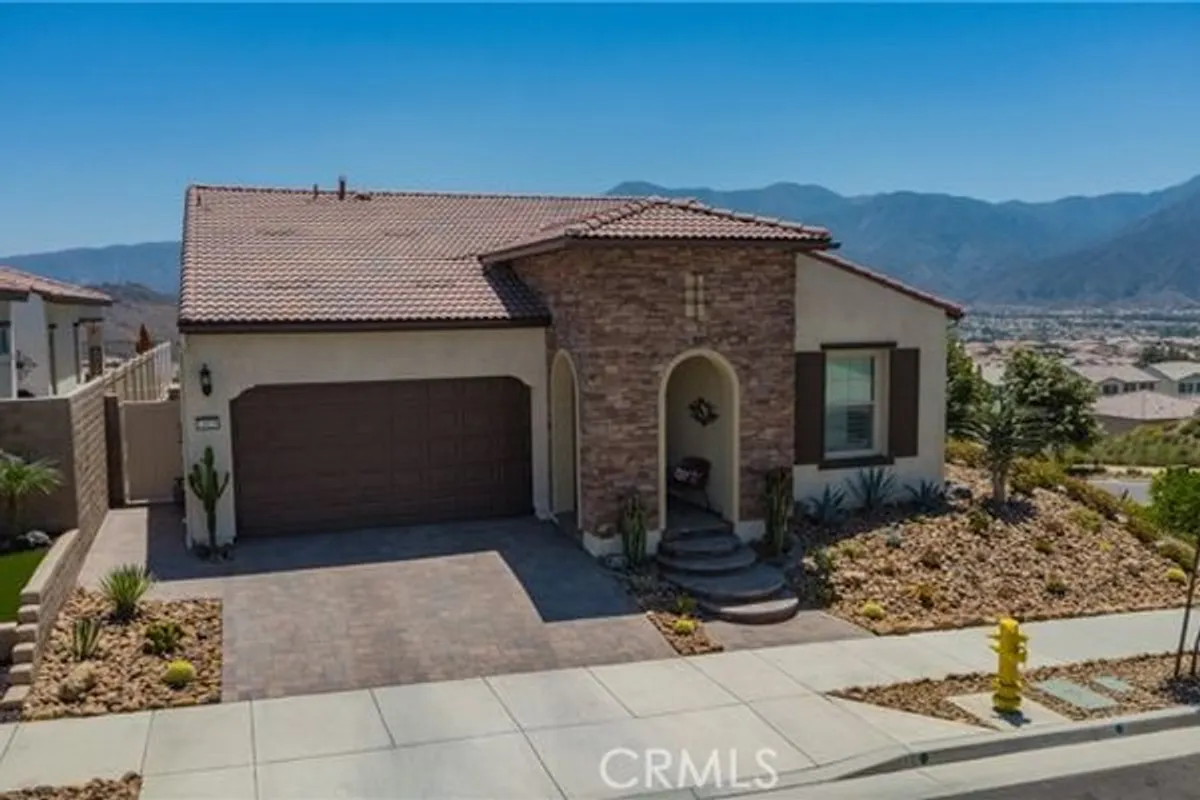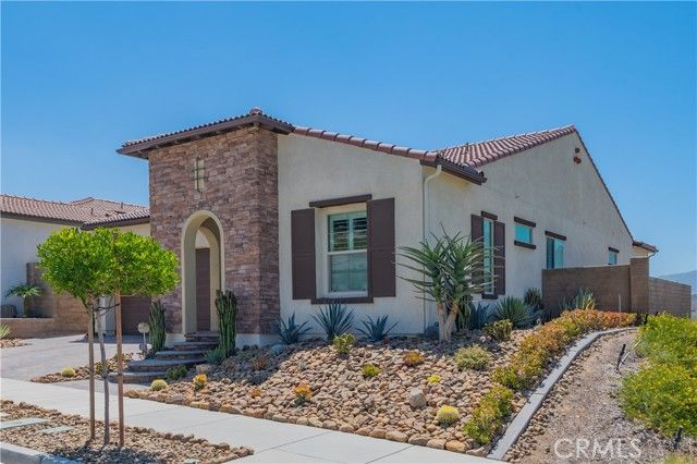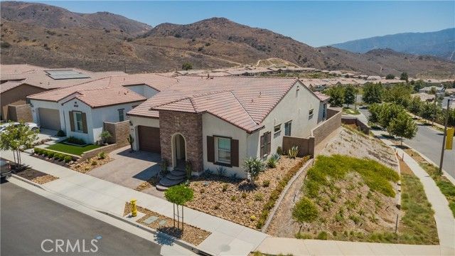 Single Story Masterpiece High Above the Hills with $250K+ Upgrades. 3 Bedrooms | 2 Baths | 2 Car Garage | 1,902 Sq. Ft. | Lot Size 8,285 Sq. Ft. | Built in 2022. Single story masterpiece sits high above the hills on a 8,285 square foot corner lot within prestigious gated 55 plus community of terrain. No expense is spared on this luxurious 3-bedroom home with over $250,000 worth of upgrades! From custom wood floors, 4-inch window shutters, designer full stone backsplash and espresso cabinets in the kitchen, wood paneling on family room walls, crystal chandelier and pendants, custom doors at entry, closet, pantry and much more. The extensive list of upgrades continues to the exterior with Arizona style landscaping in the front with exotic succulent plants, rocks, lighting pavers throughout covering entire driveway. Beautiful travertine flooring extends the California room to a spacious backyard with low maintenance landscape which offers panoramic view of distant mountains and city lights. Attached 2 car garage with epoxy flooring and custom built in storage cabinets. This gorgeous home is also equipped with smart home technologies including security alarm and paid solar panels. The fitness facility and clubhouse in the community offers nothing short of five-star resort amenities from indoor/outdoor pools, cabana, exercise gym, sauna, private massage rooms, bar, meeting rooms, BBQ, tennis and pickle-ball courts and more. Welcome home!