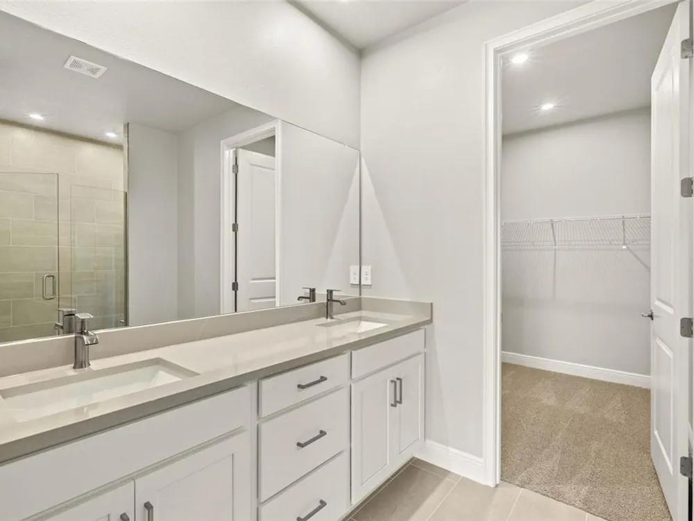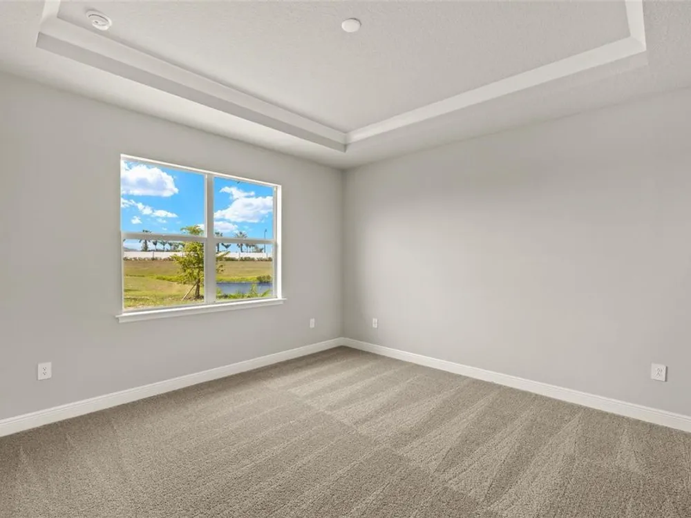 - Eat-in Kitchen, High Ceilings, In-Wall Pest Control, Open Floorplan, Main Level Primary, Solid Surface Counters, Thermostat, Tray Ceiling(s), Walk-In Closet(s)