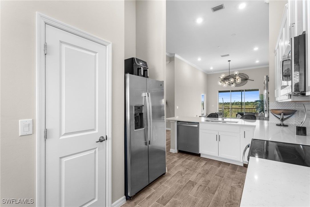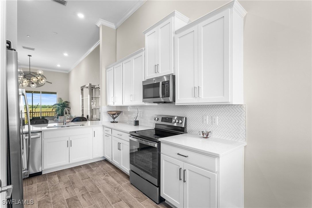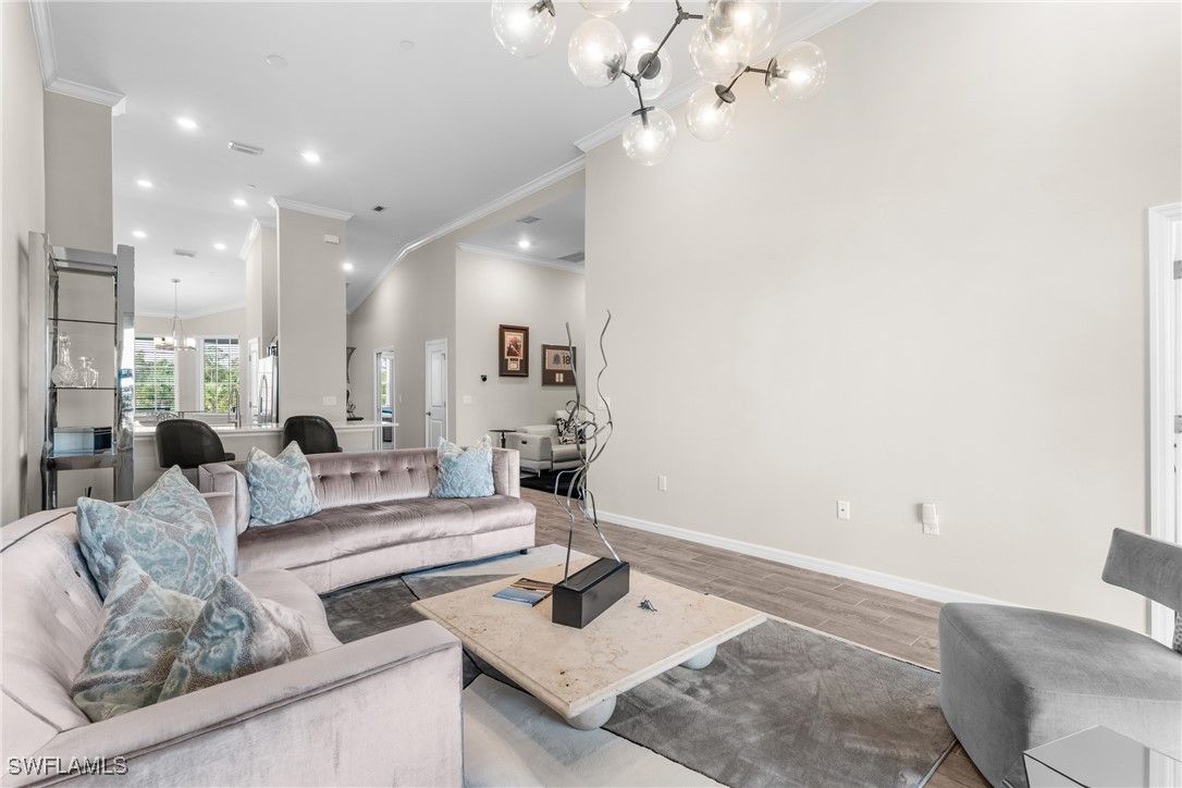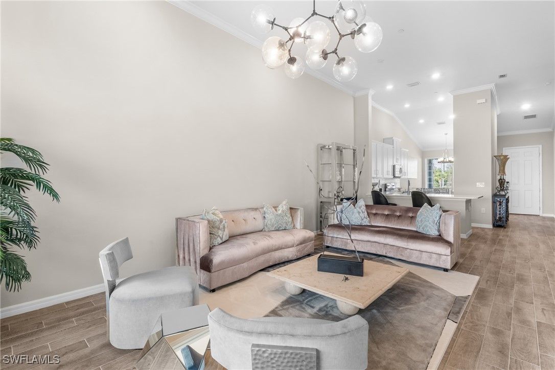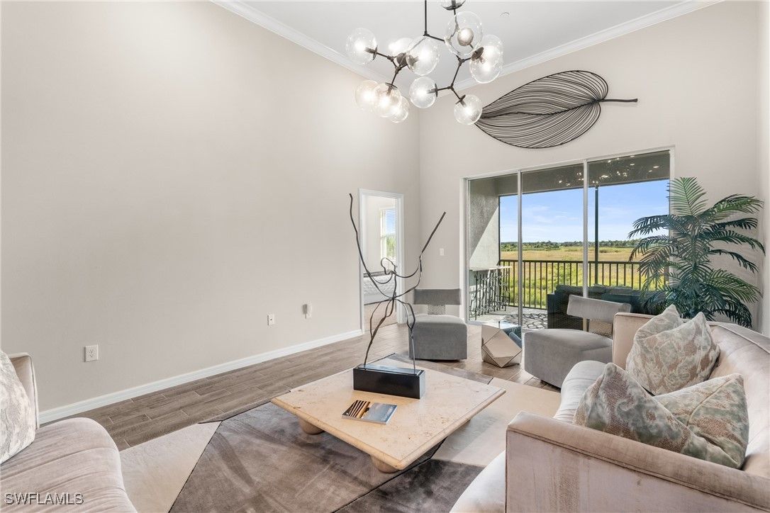 Enjoy exceptionally easy, resort style Florida-Living at this perfectly maintained Esplanade Lake Club condo! Barely lived in; this 2nd floor condo includes southern views overlooking a pristine and quiet preserve and a detached single-car garage just steps away from the front door! Esplanade Lake Club is conveniently located within a 10 minute drive to RSW and 5 minutes to I-75 and Gulf Coast Town Center (Costco, Super Target and more); Esplanade Lake Club offers something for everyone - resort style pool and community clubhouse with a pool side restaurant, the Bahama Bar for lunch/dinner and those famous SWFL sunsets on Lake Como (over 350 acres to explore), fitness center, tennis, pickle-ball, two dog parks, a tot-lot play area, miles of sidewalks, spa room, kayak/canoe/paddleboard launch area, a full time lifestyle and activities director, Toasted Cafe (breakfast and lunch options), boating and water sport activities, all within a 30-40 minute drive to beautiful downtown Naples or downtown Fort Myers. This condo offers: 2 bedrooms, 2 full bathrooms with a den/lounge area and totals over 1,500 square feet! Enjoy volume vaulted ceilings throughout and wood look tile floors in the main living areas which means easy maintenance. Upgraded finishes include: shaker-style cabinetry with quartz countertops throughout; stainless steel kitchen appliances; crown-molding throughout; custom closet systems in the primary bedroom; and more! A condo-only community pool is a short walk away too! Do not wait to see this well appointed and cared for property today!