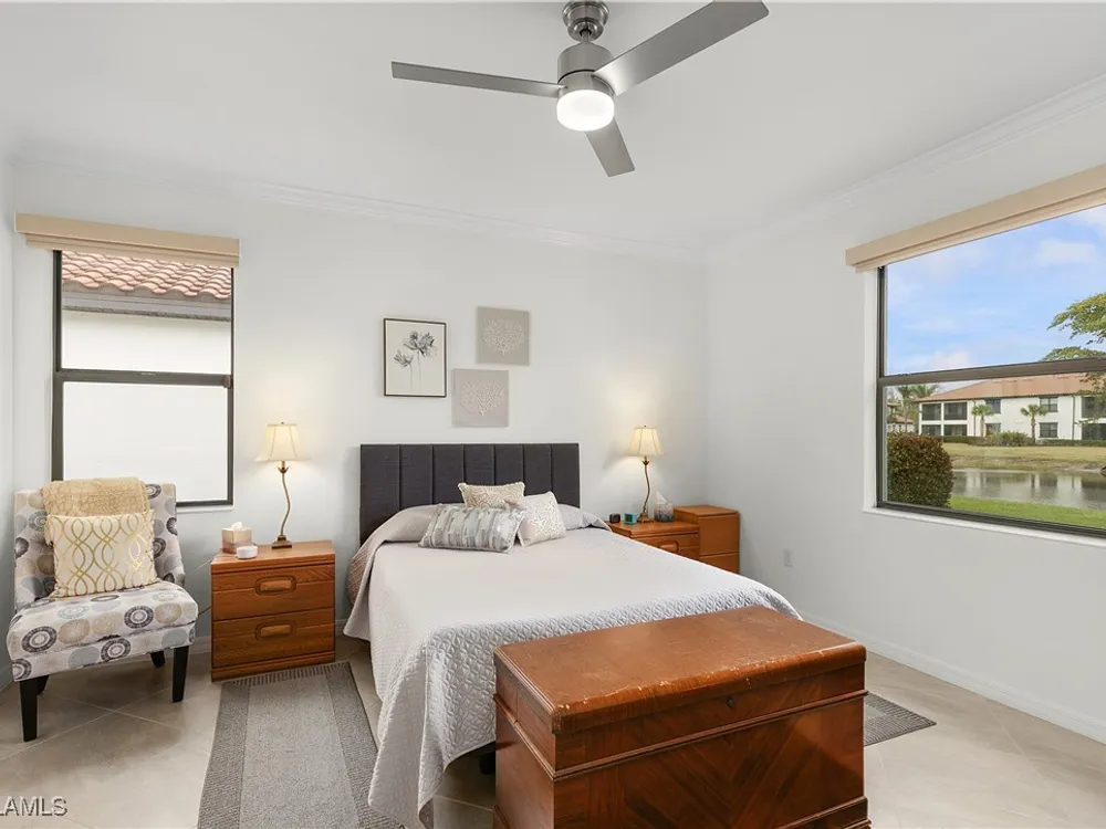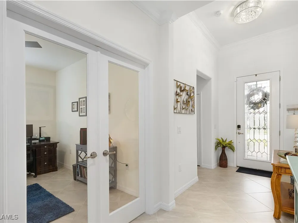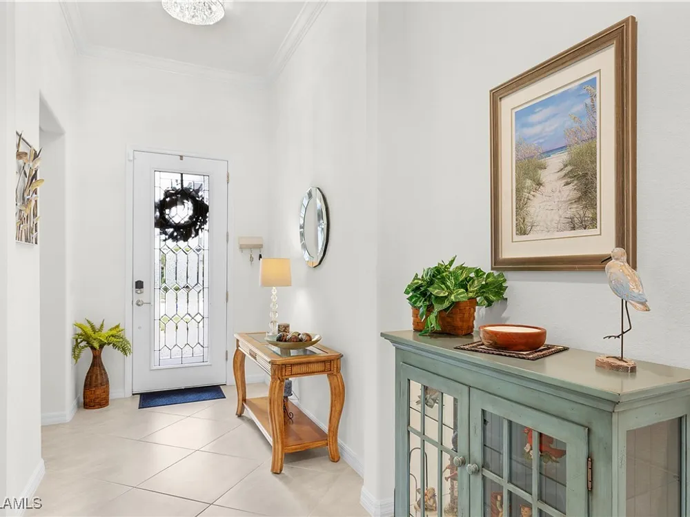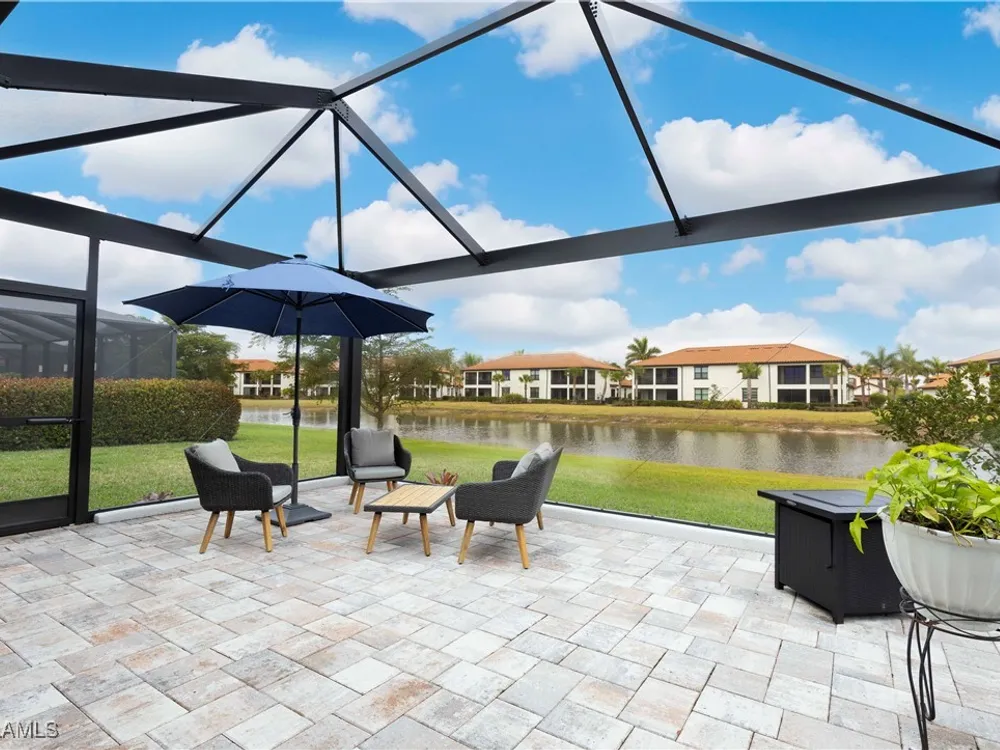 "Fall in love" with this beautifully maintained Trevi home, now enhanced for your viewing pleasure with festive "fall" (autumn) decor! Better than a model home, this house reflects the comfort and pride of homeowners who have lovingly cared for it. It offers 3 BRs plus a bonus room that can be used as office, den or 4th BR plus 3 full baths so there's plenty of room for everyone to enjoy "their own space." And when it's time to get together, you can't beat the extended lanai (custom-built in 2023) that was skillfully engineered to prevent water/mold from puddling on the pavers! Other attractive upgrades include: complete ADT, Ring, and MyQ garage security systems, custom remote-control window blinds, new DW (2024), added storage via garage hanging storage racks & laundry room cabinets. With its highly desirable lakefront location, this wonderful home is ready to bid you "welcome" as your new vacation or year-round home!