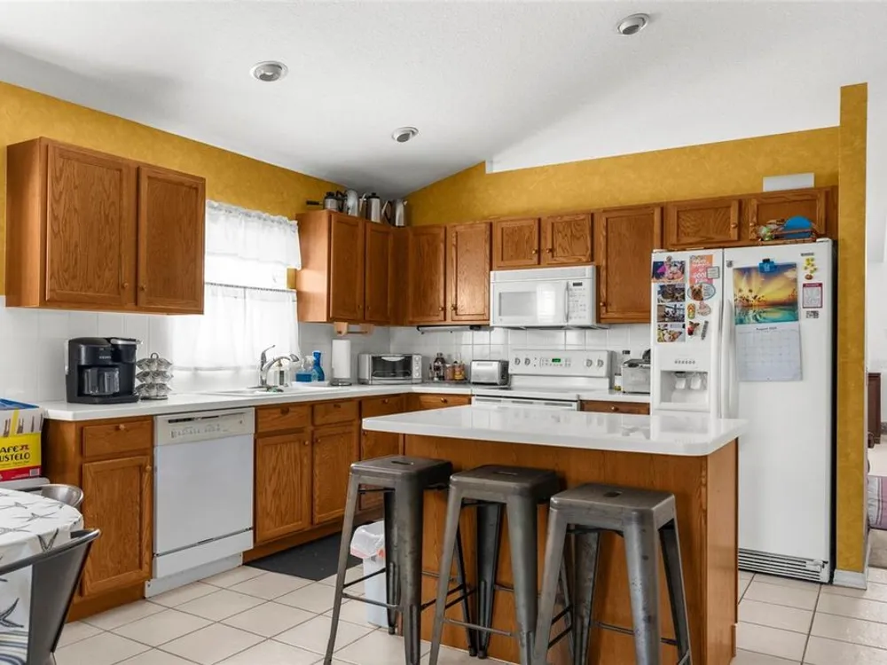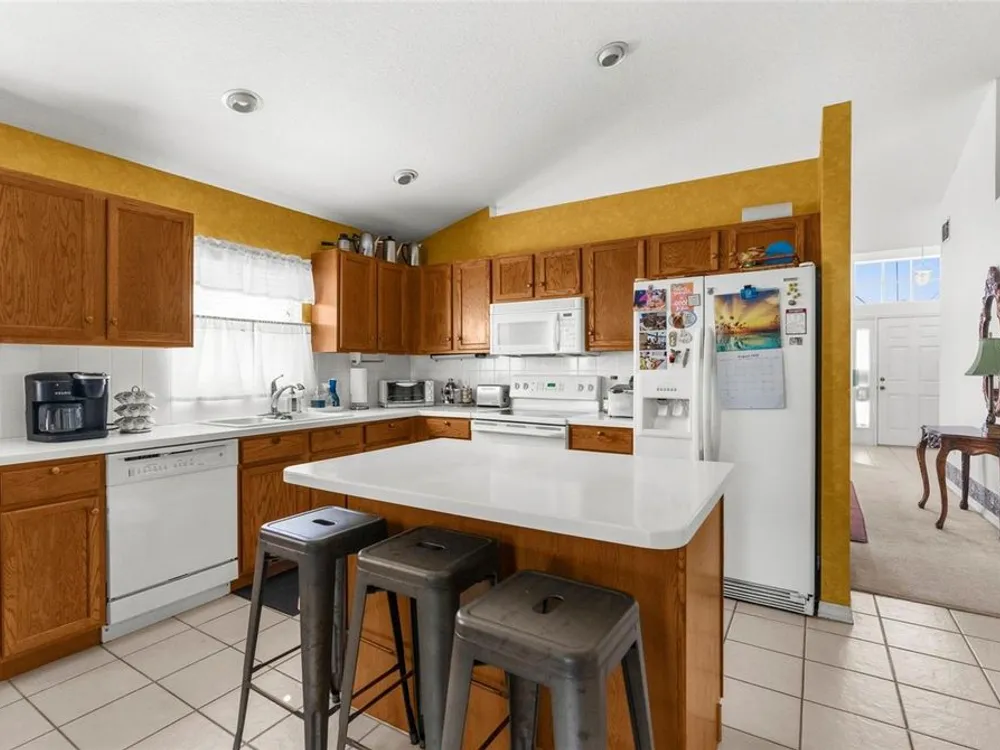 - Ceiling Fan(s), Eat-in Kitchen, High Ceilings, Open Floorplan, Solid Surface Counters, Solid-Wood Cabinets, Thermostat, Vaulted Ceiling(s)