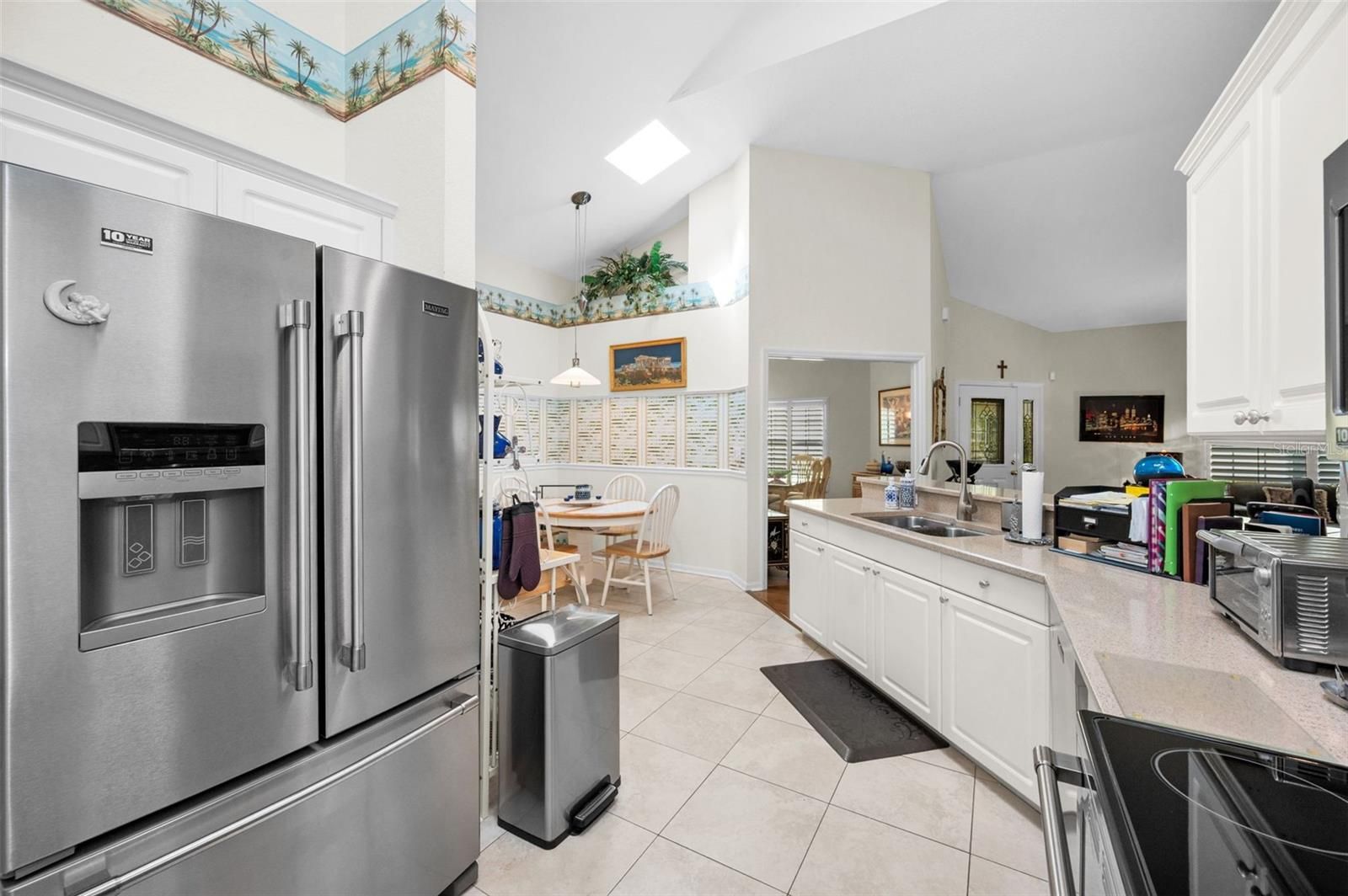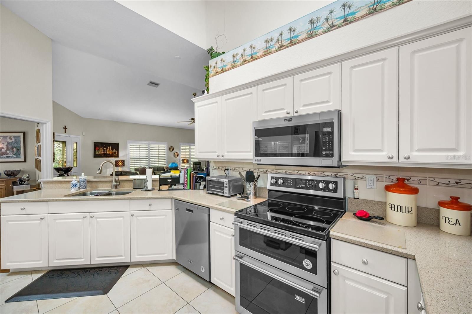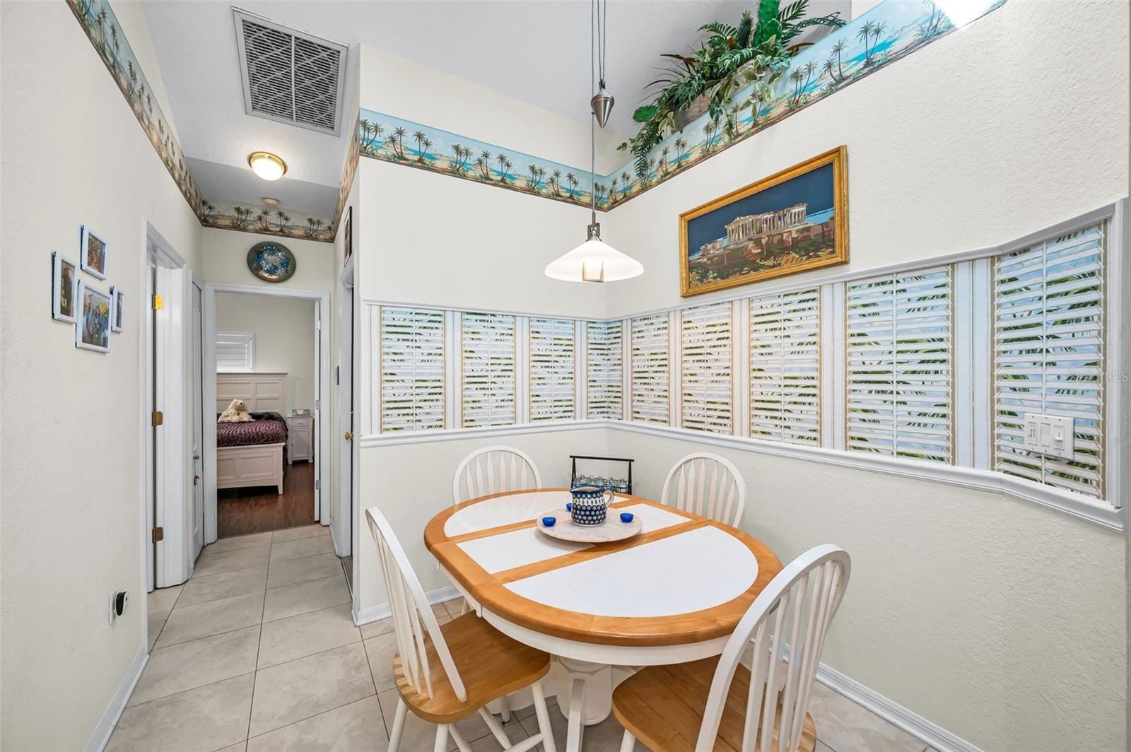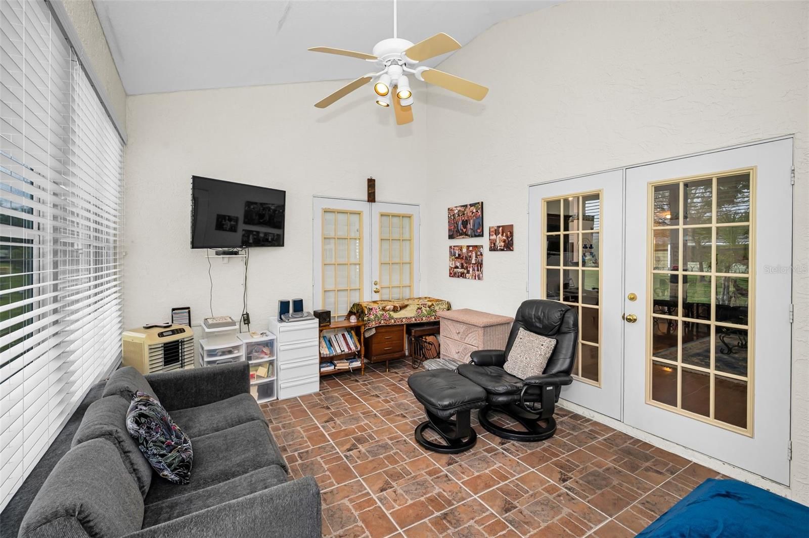 Step into this beautifully maintained 3-bedroom, 2-bath 2 car garage home featuring soaring vaulted ceilings and an abundance of natural light and privacy abounds! The inviting entry showcases a beveled glass front door, setting the tone for the stylish interior complete with custom shutters and blinds throughout. A spacious Great room with vaulted ceilings opens to the gleaming kitchen. The updated kitchen boasts pull out drawers, newer stainless steel appliances, including a double range with convection oven—perfect for cooking and entertaining and plenty of counter space. French doors add charm and functionality, leading to a bright glassed in Florida room that adds extra square footage, making it ideal for year-round enjoyment. An additional French door opens to a private brick-paved patio, creating a seamless indoor-outdoor living experience with a large serene backyard. This home combines comfort, elegance, and thoughtful upgrades in every detail. The functional, open layout includes a private primary bedroom with updated en suite bath complete with double bowl sinks, garden tub and separate shower! On the other side of the home are two bedrooms (one bedroom currently serves as a formal dining room with a built in closet and can be converted to a 3rd bedroom) and a renovated bathroom with newer full shower, inside utility room and easy access to the garage. The homes features a wired monitored security system, water softener, newer water heater, and new roof in 2020 . Close to shopping, beaches, movies, TIA, A+ schools, restaurants, Old Palm Harbor, Tarpon Springs, and Golf courses! This home is a must see! Schedule a showing today!