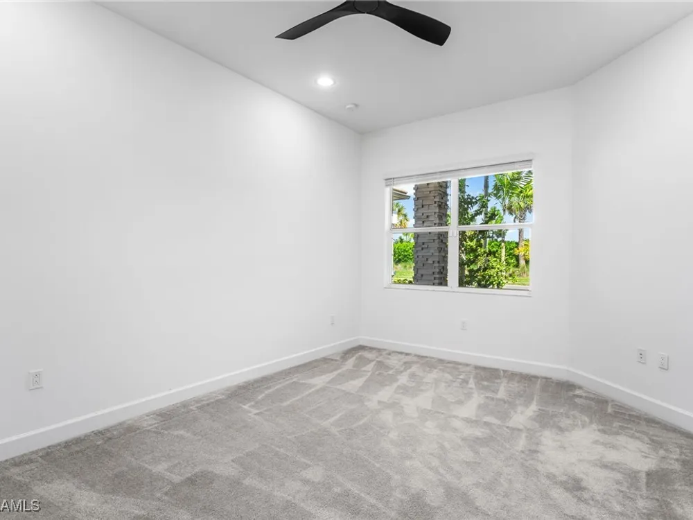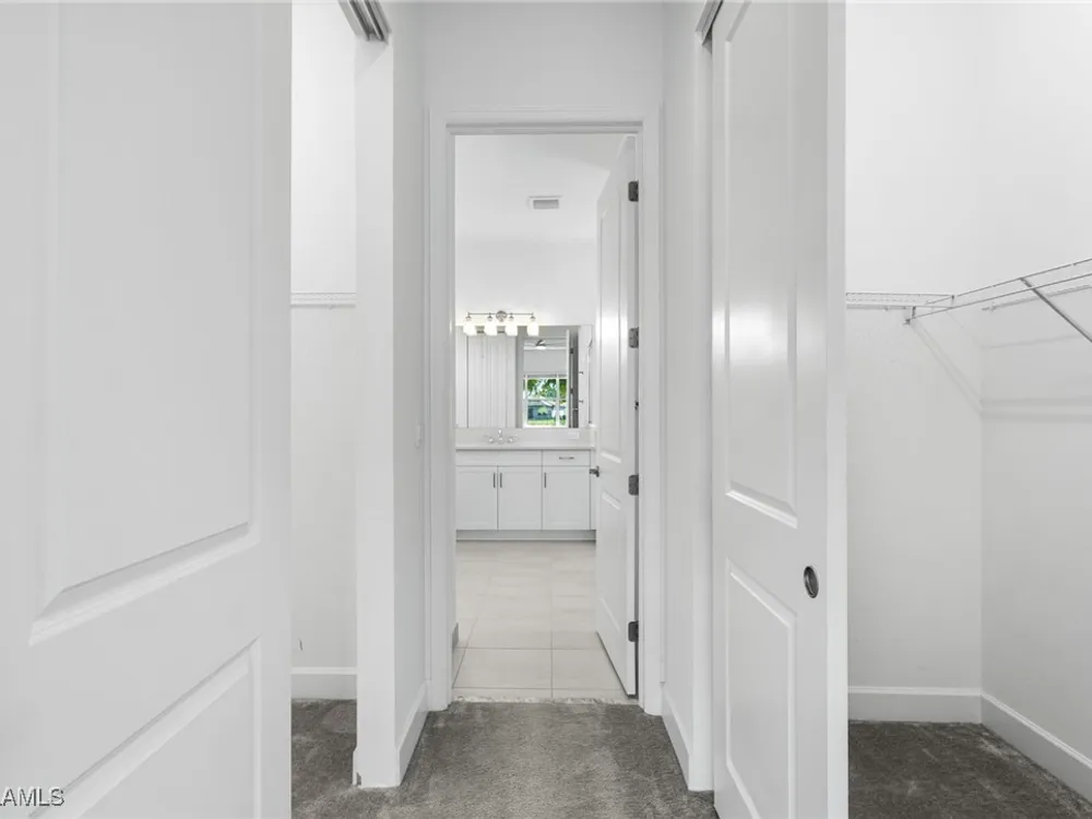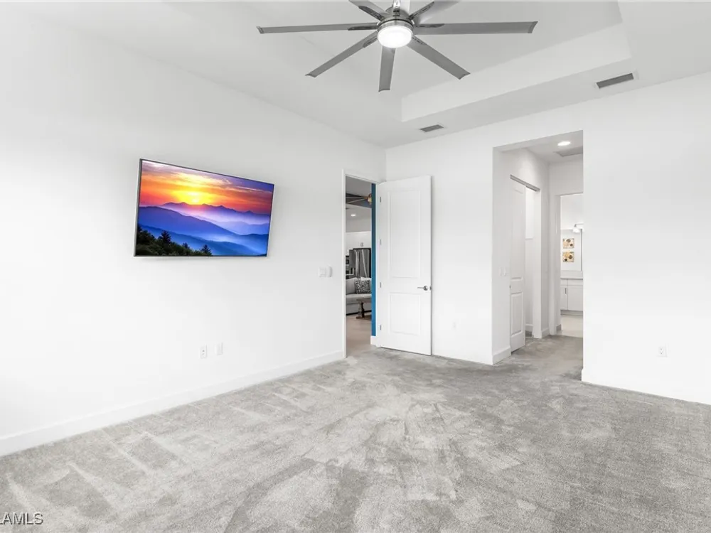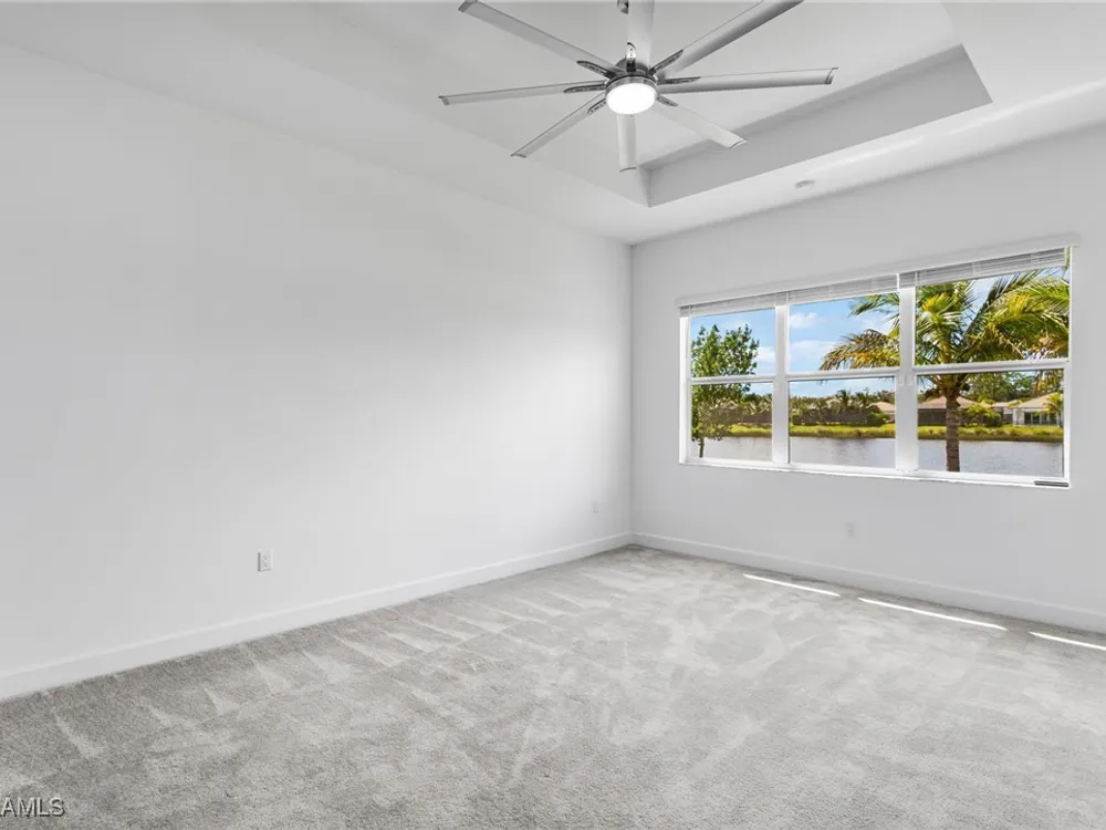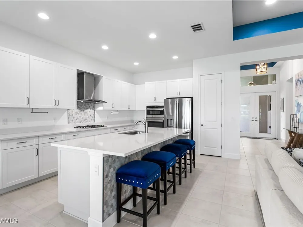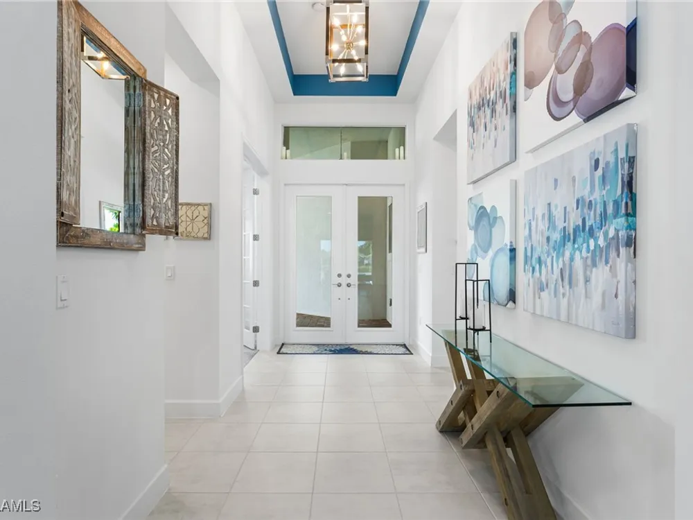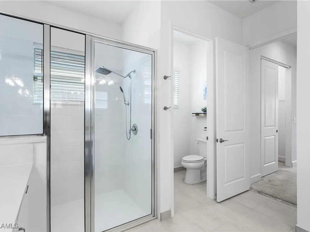 Nestled in the vibrant 55+ gated luxury enclave of Valencia Trails in Naples, this like-new GL Homes Nautilus (2022) presents resort-style living with every modern comforts. Step through dual glass entry doors into a bright, open floor plan, accompanied by custom window treatments, recessed (hi-hat) lighting, and designer fans that keep the ambiance just right. The heart of the home, the chef’s kitchen, is equipped with stainless appliances, a wall oven, a natural-gas cooktop with vented hood, upgraded cabinetry, quartz surfaces, and a striking custom backsplash that extends to the island. A rare 2½-car garage includes a dedicated bay with epoxy flooring and a climate-controlled mini-split for added comfort. Retreat to the expansive primary suite, boasting tray ceilings, two generous closets, dual vanities plus a built-in makeup station, a walk-in shower with bench and dual showerheads, a private water closet, and a spacious linen closet — luxury and practicality combined. The oversized lanai is yours for outdoor entertaining, pre-wired for TV and pre-plumbed for natural gas, ideal for grilling or a future summer kitchen, all while enjoying stunning west-facing lake sunsets; there’s even ample room to add a pool. Impact glass protects every door and window for peace of mind and lock-and-leave ease. This home also unlocks access to an active, engaged lifestyle. The community’s 43,000 sq ft clubhouse offers 8 pickleball courts, 6 tennis courts, 5 bocce courts, two card rooms, a sports lounge with billiards and poker tables, a full art studio with kiln, and a teaching kitchen that hosts professional chef-led classes. Clubs abound — Mahjong, Mexican Train, bocce, pickleball, tennis, car and coin clubs — creating endless opportunities to connect, socialize and enjoy life. With Naples’ beaches, dining and shopping just minutes away, plus Collier County’s reputation for low property tax and safety, this is the epitome of Florida lock-and-leave living done right.