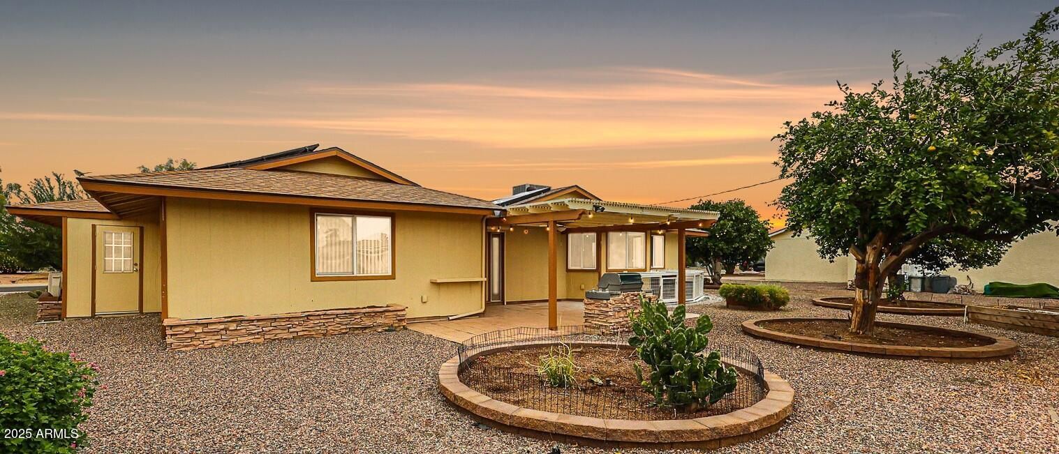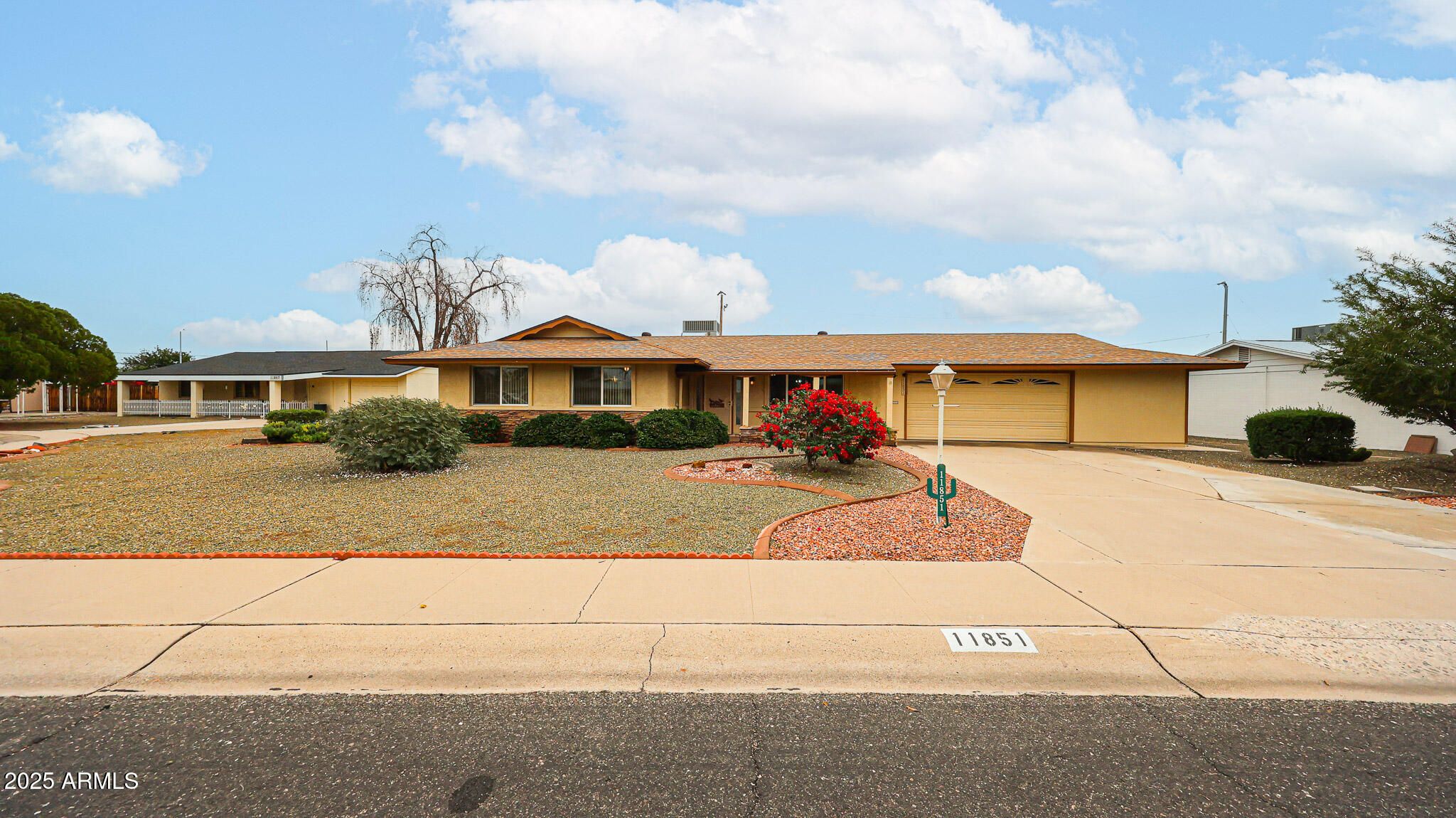 Very unique 1900 SF+ features an open floor plan with 2 bedrooms, 2 baths plus an office AND huge bonus room perfect for a craft or sewing room. The 3-car size garage allows for a workshop and includes a mini-split A/C for year around comfort. New roof in 2024 w/transferable warranty and new A/C in 2020 means big-ticket items are done & you the benefits of PAID Solar! Over years many updates include dual pane vinyl windows and all popcorn removed. Roll down security doors cover the rear exits for added peace of mind. Another unique feature for pet lovers is the doggie door exit to a secure dog run to keep those fur babies safe. So many unique features make this home a must see nearby all Sun City has to offer including golf, rec centers, entertainment & more. Don't miss this one!