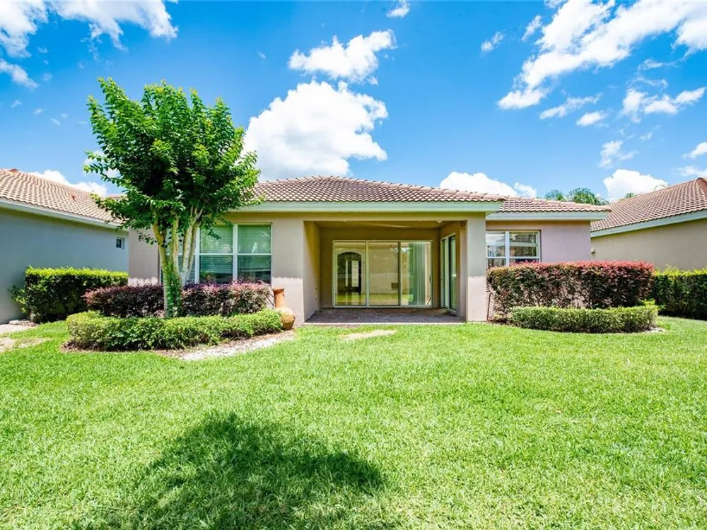 One or more photo(s) has been virtually staged.Welcome to your dream home in the highly sought-after VillageWalk at Lake Nona! This beautifully maintained 3-bedroom, 2-bathroom residence offers the perfect blend of comfort, style, and convenience in one of Orlando’s most desirable gated communities. Step inside to an open and airy floor plan featuring spacious living areas, upgraded finishes, and plenty of natural light. The kitchen boasts modern cabinetry, solid surface countertops, and a breakfast bar ideal for casual dining and entertaining. The primary suite includes a large walk-in closet and a private bath with dual vanities and a walk-in shower. Two additional bedrooms brings flexibility for guests, a home office, or a growing family. Outside, enjoy your backyard with peaceful views — perfect for relaxing or hosting friends. A 2-car garage provides ample storage and convenience. VillageWalk at Lake Nona is a resort-style, maintenance-free community featuring 24-hour guard-gated security, miles of walking trails, two swimming pools, a state-of-the-art fitness center, tennis courts, basketball courts, playgrounds, a clubhouse with a ballroom, and even an on-site gas station and deli. Located just minutes from Lake Nona Medical City, Orlando International Airport, top-rated schools, dining, shopping, and major highways — this home truly has it all. Don’t miss your chance to live in one of Lake Nona’s premier communities. Schedule your private showing today!
