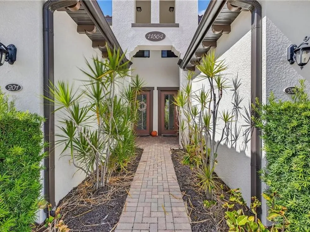 This stunning and meticulously cared for Coach home is an amazing opportunity for you to live the ultimate Florida lifestyle. Situated within the desirable community of Arbowood Preserve and loaded with amenities, you can engage socially or relax in peace and quiet. This unit was built by WCI homes and features many upgrades. The open floor plan is an entertainers dream. The kitchen has a stainless steel appliance suite featuring a French door refrigerator (2024), slide-in range and dishwasher (2022), level 5 granite countertops, upgraded cabinetry with over/under lighting and custom tile backsplash. Dining and living spaces are oversized as can easily be seen by the large pieces adorning them. The owners suite is perfect for serenity. Featuring a spacious ensuite with a large walk-in closet and oversized walk-in shower. The third bedroom is currently being utilized as an office, but the closet gives you full versatility on how you can use the space. The attached double garage has overhead storage. This home has impact windows and doors throughout offering peace of mind. The custom window blinds are both beautiful and practical. A new a/c unit was installed in 2022. Too many features to list. This home is a "must see". Just a short walk to the town center and amenities. Arborwood Preserve is located out of any hazardous flood zone and has never lost power during any major storm event to date. Conveniently located in a peaceful neighborhood off of the Treeline Ave corridor, you will be in close proximity to RSW Airport, spring training parks, dining, shopping and entertainment. The town center has a resort style pool, bar/restaurant, complimentary coffee room, fitness center, yoga studio, card rooms theater and art studio. Lighted bocce ball, pickle ball and clay tennis courts will keep you active. South Florida living at its best!