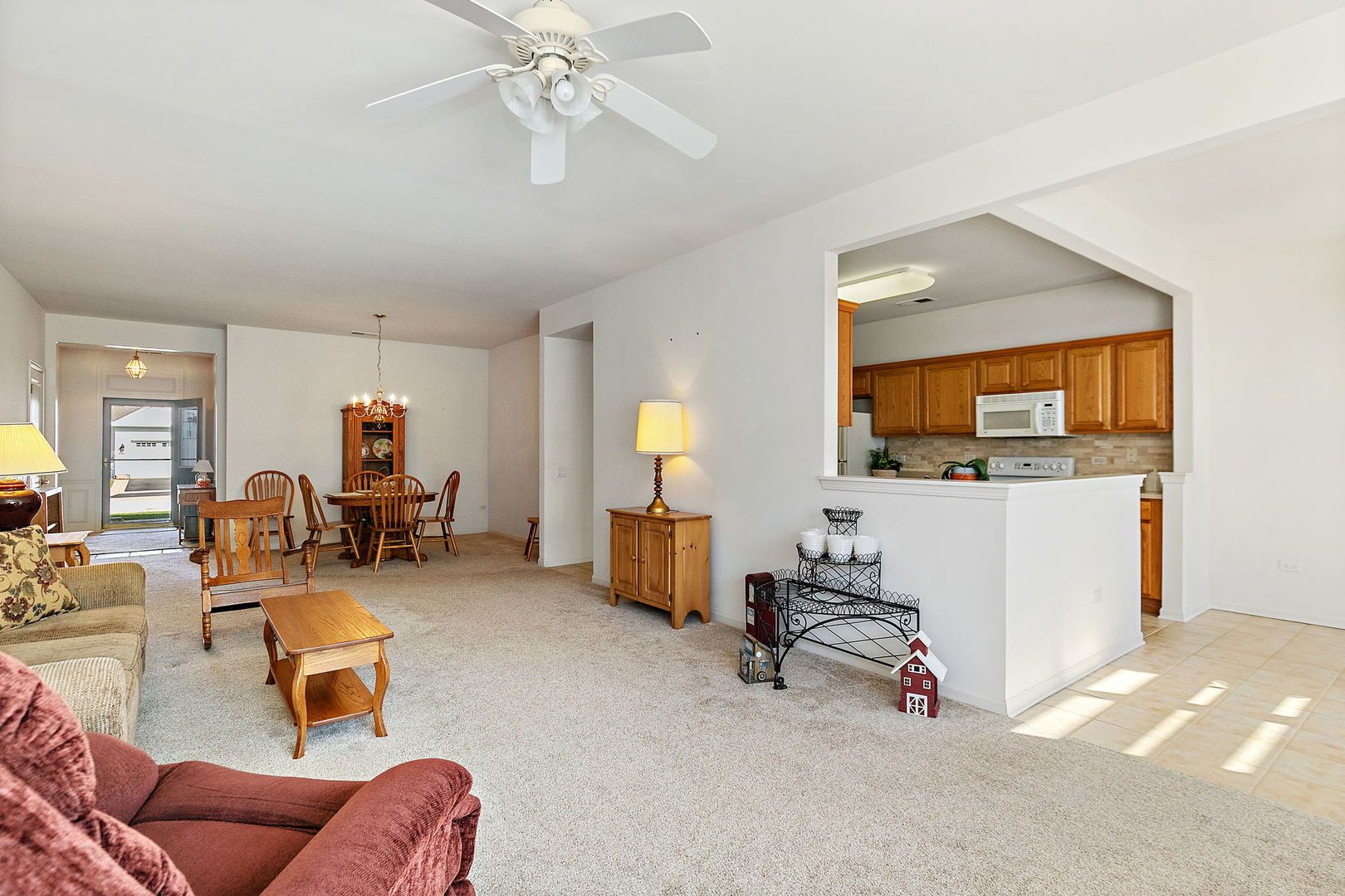 Beautiful Cantigny Model, with a partial Brick front and a 2 car garage, located in Del Webb Sun City. This home has been meticulously maintained by the original owner. It is move in ready. It includes 2 Bedrooms, 2 full bathrooms and a Den. The master bedroom includes a walk-in closet and the optional Bay window. The Master Bath has a double sink, a vanity chair space between the two sinks, a separate soaking tub, walk-in shower and a separate water closet. The kitchen has plenty of cabinet space, solid surface counters and a pantry for storage. There is a separate eating area, which looks out the patio window, so you can enjoy the lovely backyard. The livingroom and dining room, give this space an open concept feel. This home has a highly sought-after Den for your home office or hobbie space. The washer and dryer are less than a year old, the HVAC was replaced in 2021, the hot water heater was also replaced in 2021. The backyard has a large patio with a pergola. The garage includes the extended option and has an epoxy floor. Showings will start on Monday April 13th