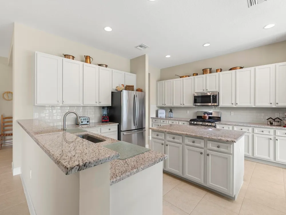 Welcome to this immaculate thoughtfully designed and beautifully upgraded home where a sought after layout offers flexible living and timeless style . This beautiful Caroline floor plan features 3 bedrooms, 2.5 baths and 3 car garage. Styled with neutral finishes, this home showcases a chefs kitchen with granite counters, upgraded GE Profile appliances, large pantry, center prep island ,upgraded cabinetry with soft closing doors & drawers and a breakfast nook. Plantation shutters on all windows and doors and tile throughout the entire home. Other features include custom closets, extra large laundry room with upgraded washer & dryer and a laundry sink with granite counter, upgraded and expanded pavers, tankless water heater,