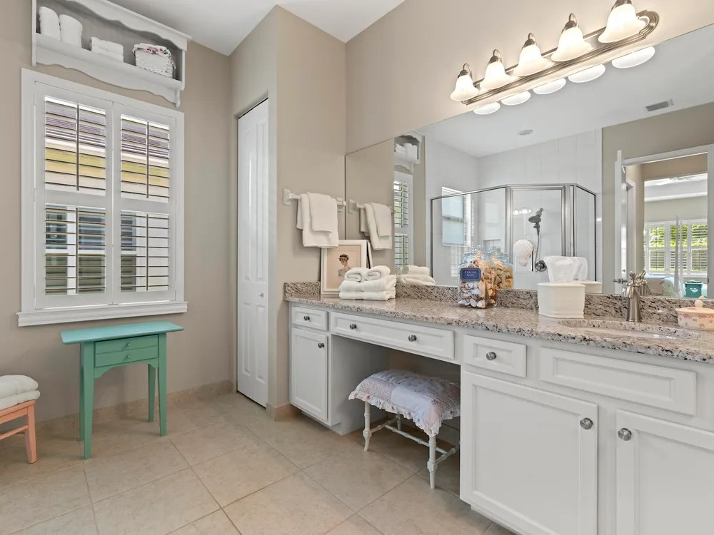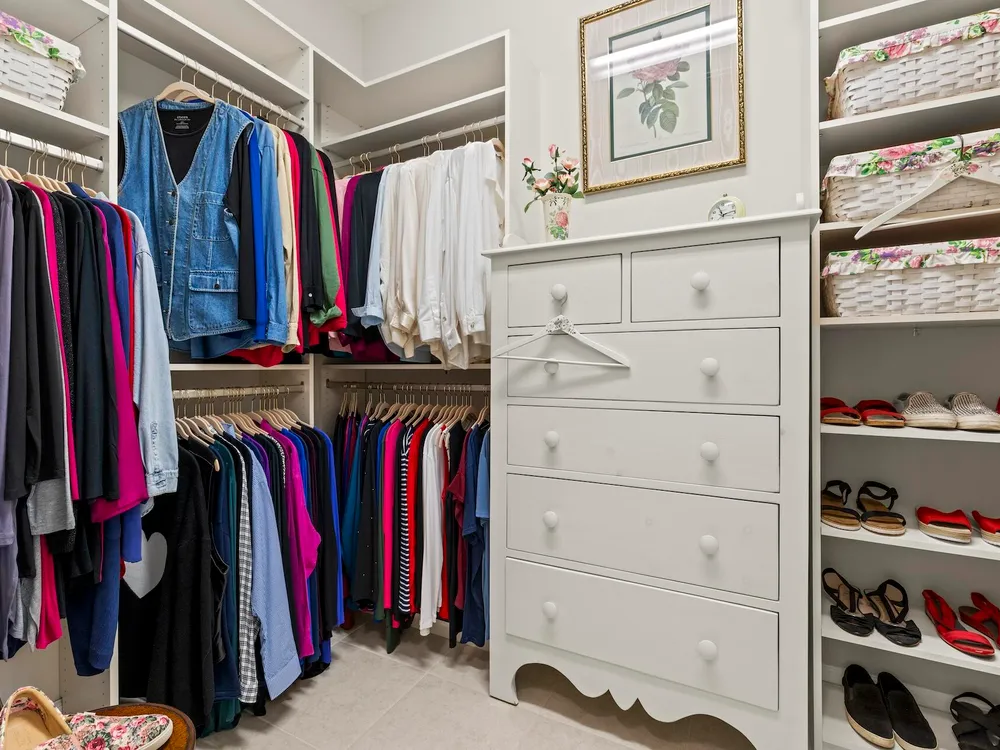- Built-in Shelving, Closet Cabinetry, Entry Level Living Area, Kitchen Island, Split Bedrooms, Walk-In Closet(s), Home Office, Family Room, Eat-in Kitchen, Separate/Formal Dining Room, Impact Glass, Plantation Shutters, Primary Downstairs, Separate Shower