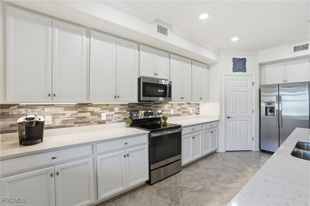 Enjoy Florida resort style living at its finest in this first-floor coach home with peaceful lake views, located in the Amenity Rich gated community of Arborwood Preserve in Fort Myers. This open 1781 SFT, light-filled floor plan is perfect for both everyday comfort and entertaining, with spacious living areas and a screened lanai overlooking the lake—an ideal spot for morning coffee or sunset relaxation. * Features include a gourmet kitchen featuring large island, designer white cabinets, quartz counter tops, stainless steel appliances, tile floors throughout all living spaces, and crown molding elevates the space. Rare 2 car attached garage for all your storage needs. HURRICANE WINDOWS AND SLIDERS OFFER STORM PROTECTION AND THIS PROPERTY IS NOT IN A FLOOD ZONE. Residents of Arborwood Preserve enjoy world class resort-style amenities, including a spectacular WATERFALL pool, fitness center, community room, tennis and pickleball courts, bocce, theater, coffee lounge, gym, fitness studio, art room, card room, walking trails, and a full social calendar. Designed as the hub for all social activities, the 23,252-square-foot Town Center will offer something for everyone. Perfectly situated near shopping, dining, entertainment, RSW Airport, and the beaches of Southwest Florida, this home offers the ideal blend of lifestyle and location. Whether you’re seeking a seasonal retreat or full-time residence, this lakefront coach home delivers comfort, convenience, and the best of Fort Myers living.