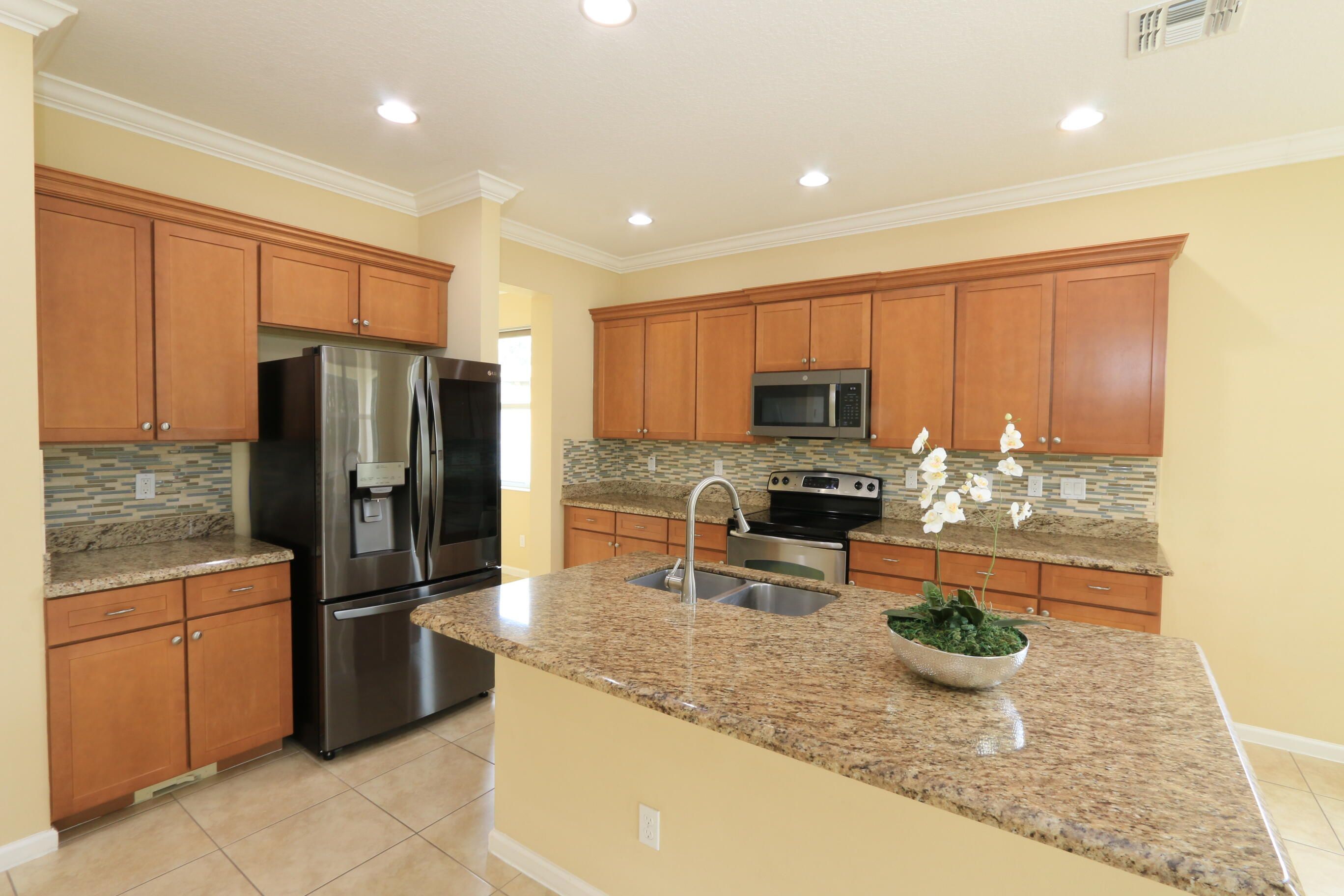 Brand new A/C installed 8.14.25. Two year old water heater, Exterior painted in 2025. Delightfully spacious open concept and well cared for 3 bedroom 2 bath home in the Bennington area of the Town Park gated community. Peaceful and quiet neighborhood community with easy access that all Tradition has to offer, including a view of Tradition's firework shows from backyard patio. Short walk to community pool and clubhouse. Crown molding in living areas. Central vacuum. Granite counter tops. Kitchen Island, 42'' cabinetry, and ceramic tiled backsplash. Stainless steel appliances with newer LG refrigerator. Move in Ready!