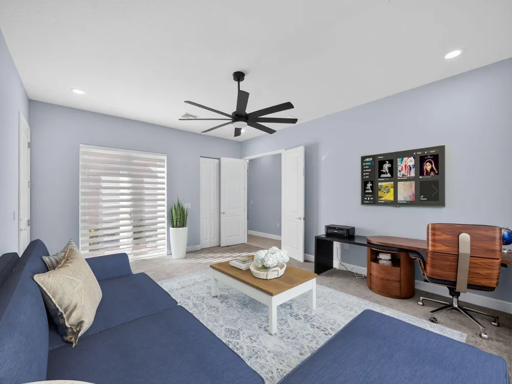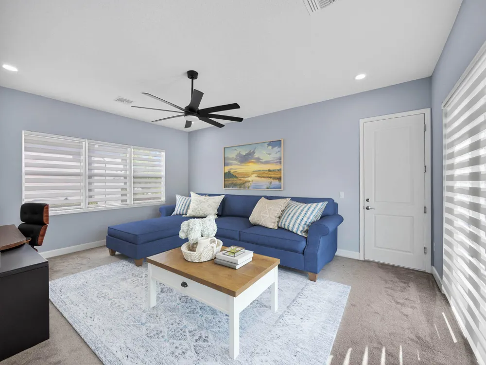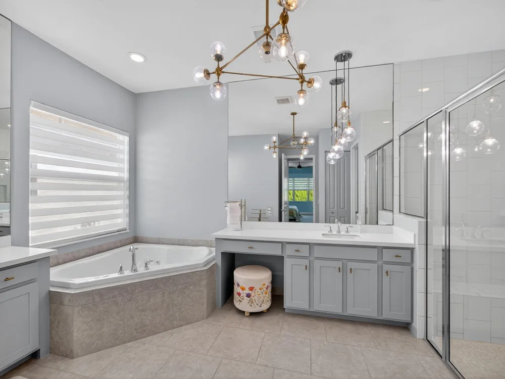 - Entrance Foyer, Kitchen Island, Pantry, Split Bedrooms, High Ceilings, Walk-In Closet(s), Great Room, Breakfast Area, Living/Dining Room, Snack Bar, Blinds, Impact Glass, Dual Sinks, Separate Shower, Whirlpool