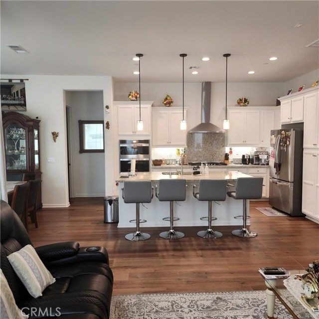 Welcome to a beautiful single storey 2 bedroom, 2 bath , 1746 sq ft home located in a very desirable and prestigious Terramor (55+ guard gated )community : Very spacious, airy ,open and bright high end upgraded living ,dining and kitchen layout which makes the home perfect for entertaining and get-togethers among family and friends and enjoy low electric costs with the FULLY PAID SOLAR: The spacious master bedroom at the rear of the home for privacy, features a generous walk-in closet ; Upgraded wood flooring throughout the house; Sliding glass doors from both the living room and dining room leads into a spacious low maintenance patio and backyard The landscaping is designed for low-maintenance & drought-tolerant; luxury resort style living with an array of amenities including indoor salt water pool, pools, hot tub, fitness center, wellness studio, tennis, pickle ball and dog park. Has a 5 mile walking trail in the community;