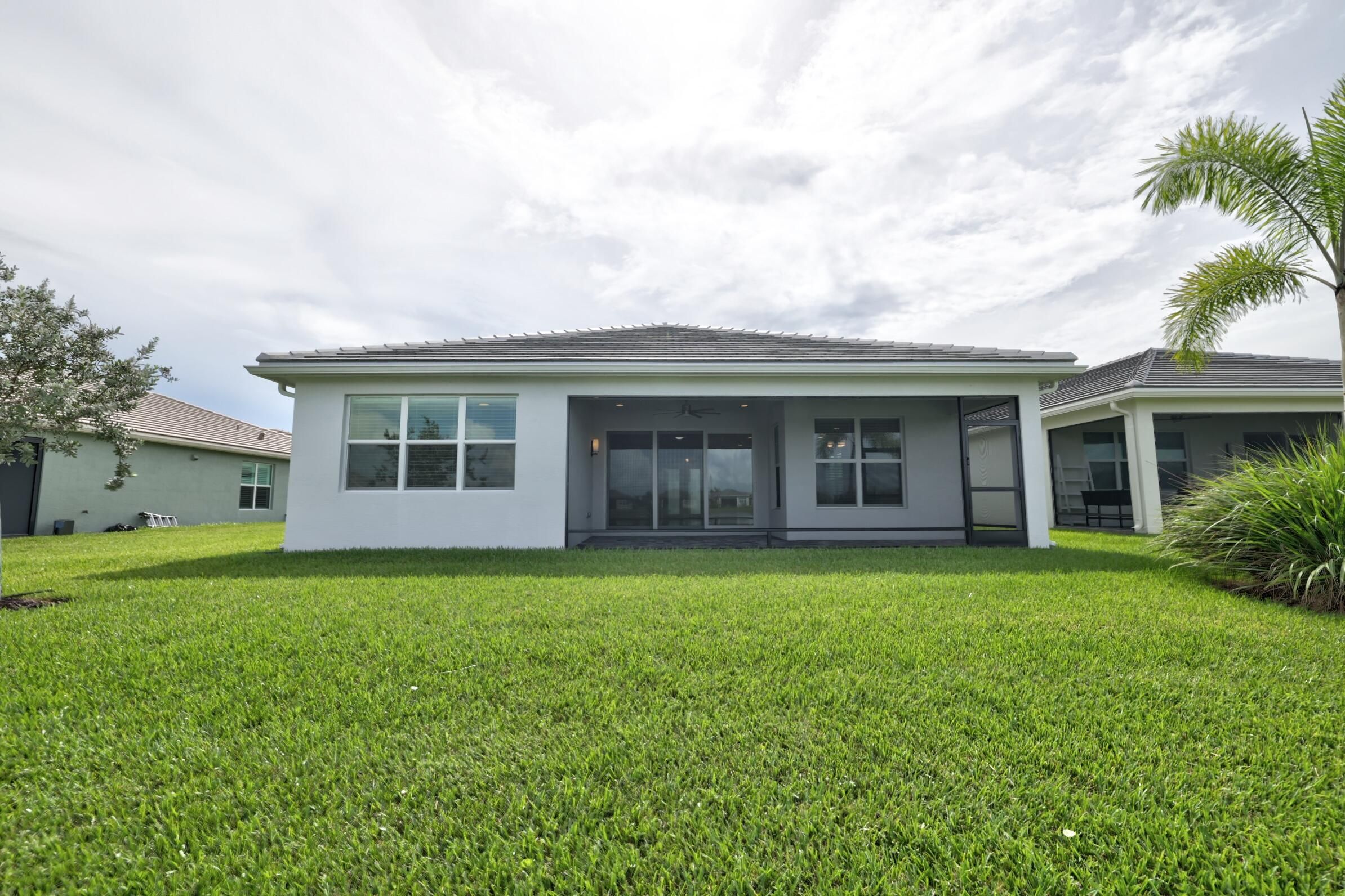 Experience resort-style living in the esteemed Valencia Grove at Riverland, where luxury and comfort are woven into every detail of this exceptional lakefront Palazzo model. Built in 2021 on a coveted oversized lakefront lot, this home invites you to embrace an active 55+ lifestyle in a vibrant, amenity-rich community. Step inside to discover a thoughtfully designed floor plan, offering three spacious bedrooms, two and a half baths, and a versatile den, perfect as a fourth bedroom or home office. Porcelain flooring extends throughout. The heart of the home is the kitchen/dining room and breakfast area, open concept floor plan. Kitchen, with stainless steel appliances, elegant QUARTZ countertops, wood cabinetry, and a generous pantry, making it an entertainer's dream. From the moment you step through the glass front door, you're greeted by expansive lake views that pour in through large impact windows and sliding doorscreating a bright, inviting atmosphere that feels like home. Step outside to your covered lanai, the perfect place to enjoy morning coffee or evening sunsets. With one of the largest backyard spaces in the community, there's ample room to customize a resort-style pool or entertainment area with complete privacy and tranquil views. Located in the 55+ Valencia Grove community, residents enjoy access to world-class amenities, including a state-of-the-art clubhouse, fitness center, resort-style pools, tennis and pickleball courts, bocce courts, walking trails, and so much more. Don't miss this rare opportunity to own one of the most desirable lots in Valencia Grove. Whether you're relaxing by the lake, entertaining guests, or taking advantage of the vibrant lifestyle offerings, this home has it all.
