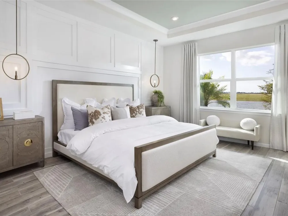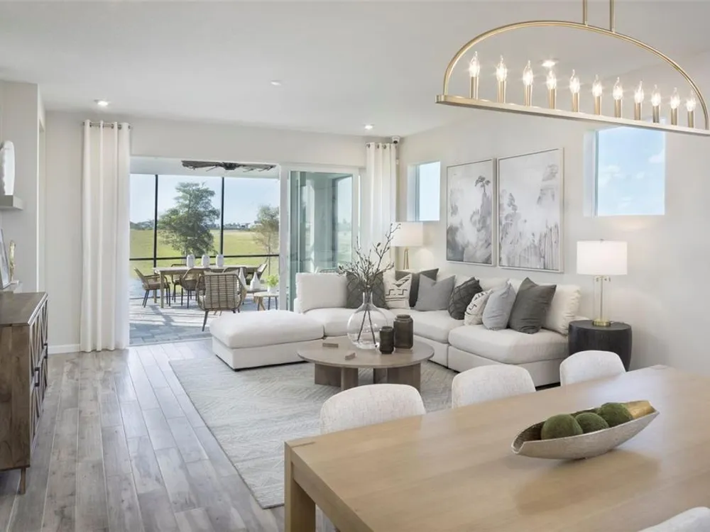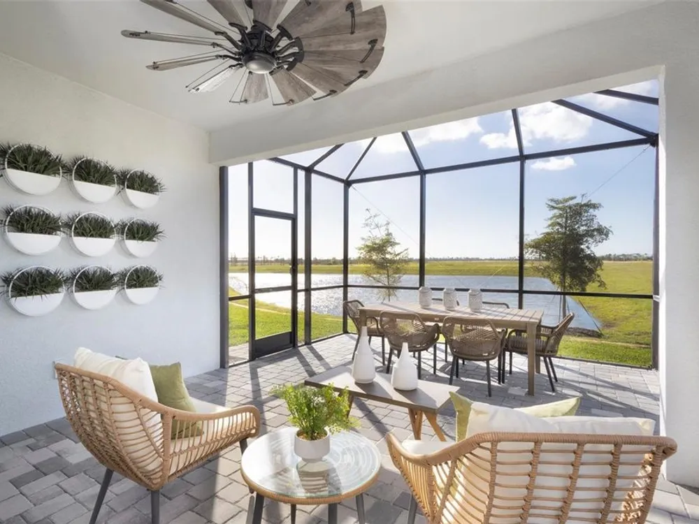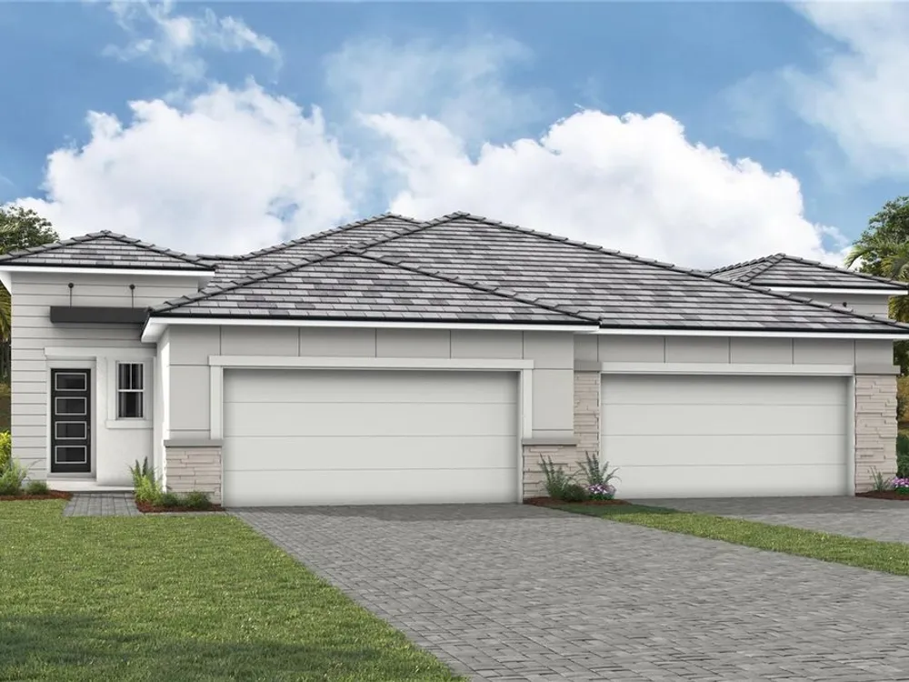 This 1,754 sq. ft. Champagne model villa with a transitional elevation is thoughtfully designed with 2 bedrooms, 2 bathrooms, and a 2 car garage with a convenient utility tub. A private study replaces the traditional flex room, offering the perfect space for work or quiet reading. The open floorplan showcases tile flooring, expansive sliding glass doors, and 8' interior doors that enhance the home’s airy feel. A large walk-in pantry complements the executive-style kitchen, while the owner’s suite features a tray ceiling, spacious walk-in closet, and elegant finishes. Additional touches such as a floor outlet, multiple walk-in closets, and a covered, screened lanai with peaceful water views create a villa that blends comfort, style, and functionality. Photos, renderings and plans are for illustrative purposes only and should never be relied upon and may vary from the actual home. Pricing, dimensions and features can change at any time without notice or obligation. The photos are from a furnished model home and not the home offered for sale.