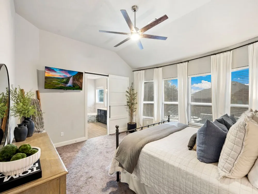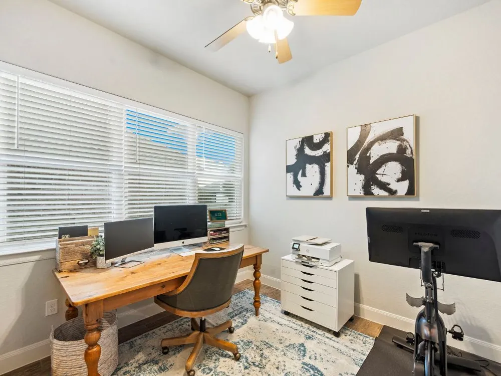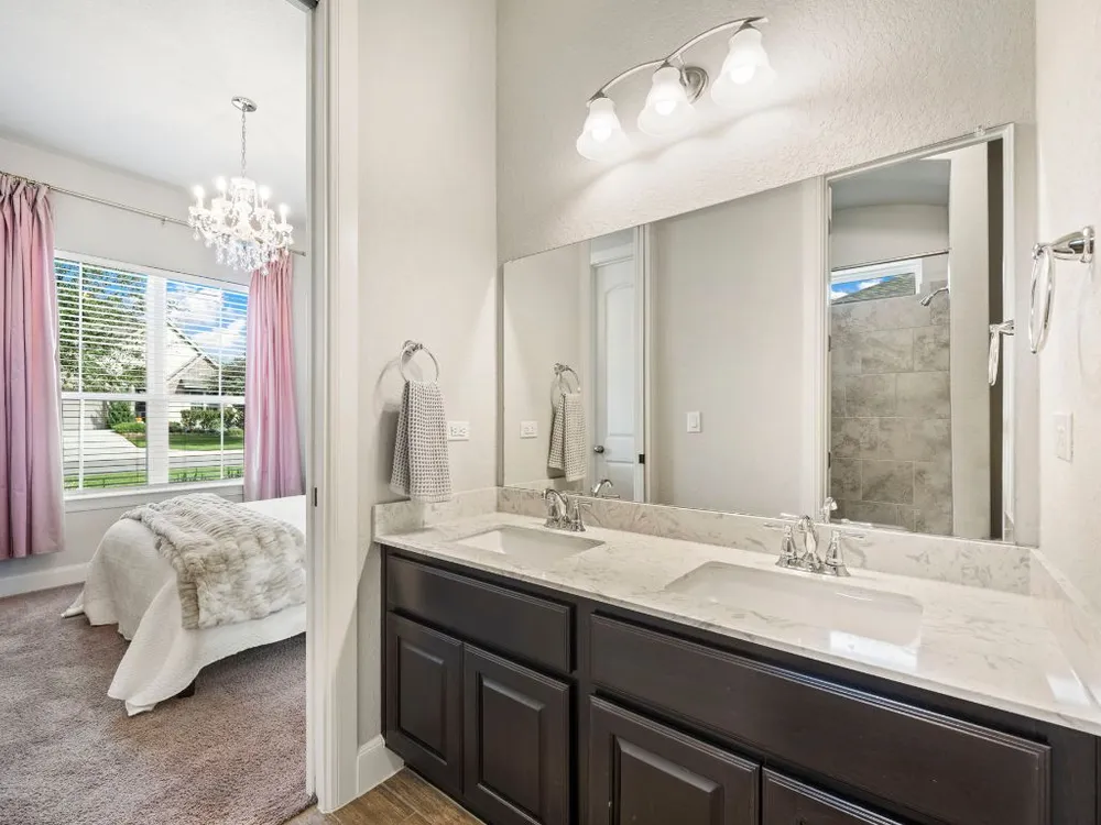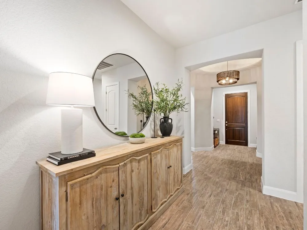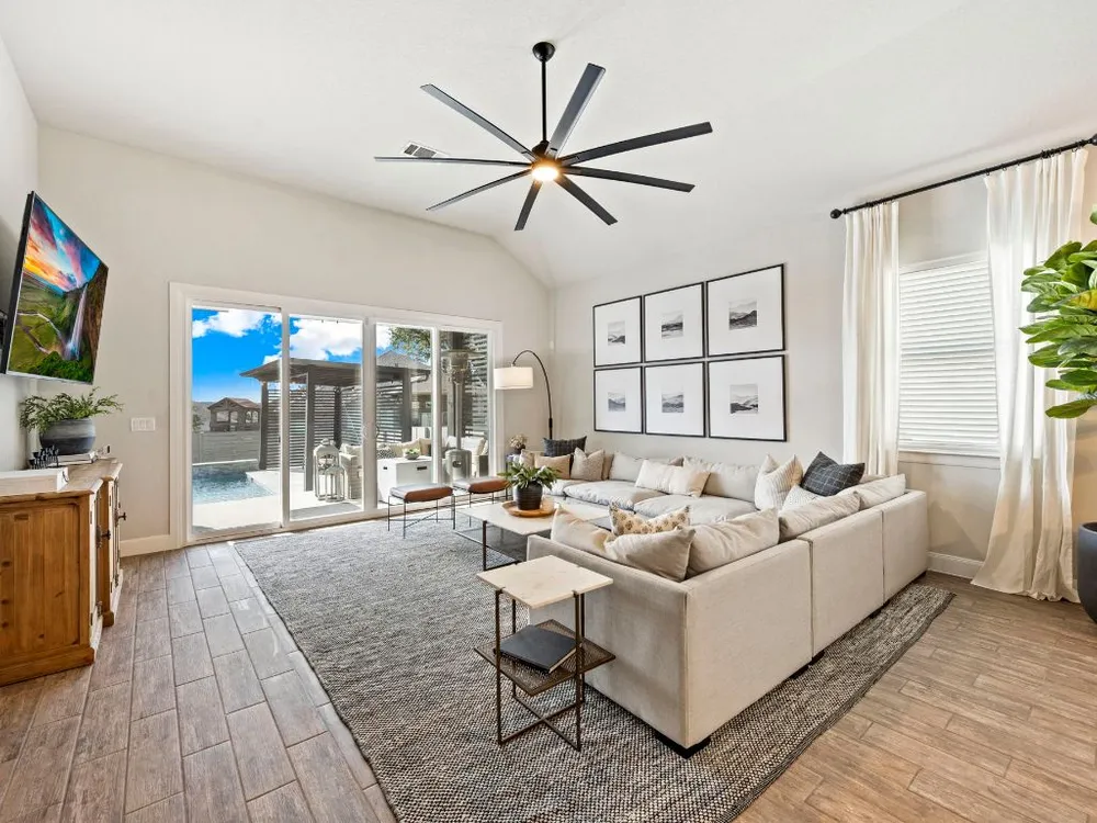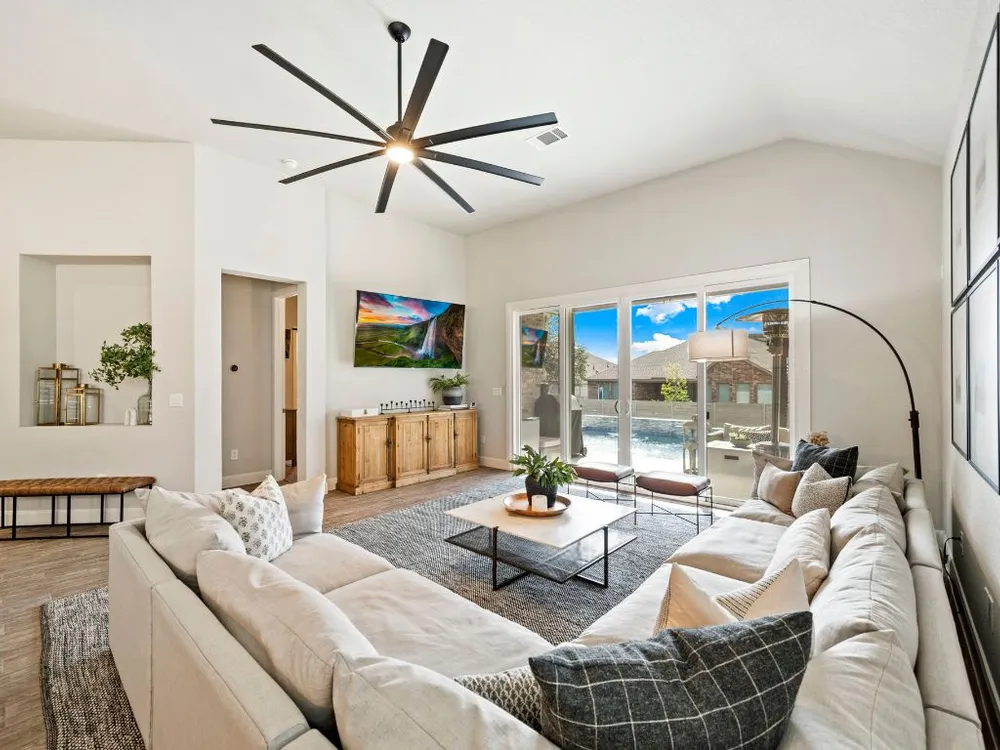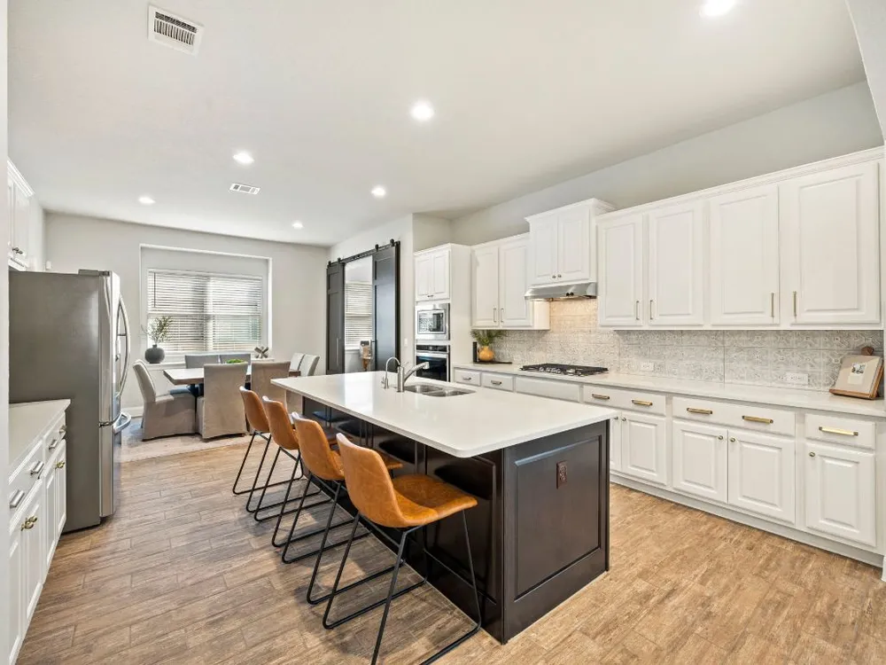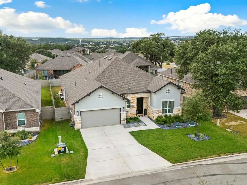 Experience effortless Hill Country living in this stunning single-story home nestled in The Grove at Vintage Oaks—one of New Braunfels’ most sought-after communities. Spanning 2,935 square feet, this 4-bedroom, 3.5-bath residence features an open, light-filled floor plan designed for both comfort and connection. The expansive family room with soaring ceilings flows seamlessly into a chef-inspired kitchen and breakfast nook, while a separate dining area provides the perfect space for gatherings and celebrations. A dedicated office offers flexibility for work or creative pursuits, and every room reflects thoughtful craftsmanship and an inviting sense of space. Step outside to your private backyard oasis, where a heated pool, relaxing spa, and shaded pergola create the ultimate retreat for year-round enjoyment. Whether hosting friends or savoring quiet evenings under the stars, this home offers the ideal balance of luxury and leisure. Located in a world-class neighborhood renowned for its resort-style amenities—including multiple pools, a lazy river, fitness center, sports courts, trails, and community events—this residence blends everyday comfort with the best of Hill Country living. Welcome home to The Grove at Vintage Oaks, where style, serenity, and community come together beautifully.
