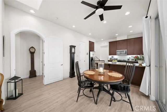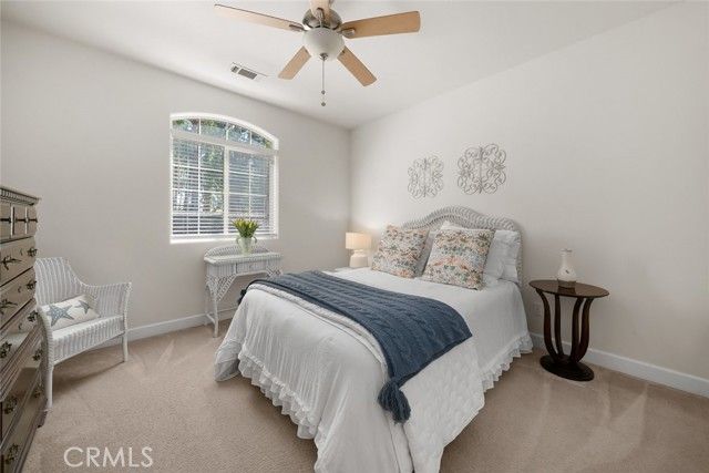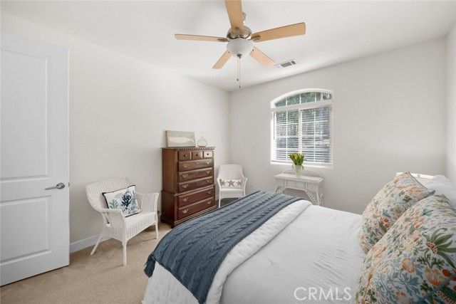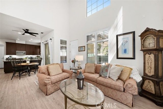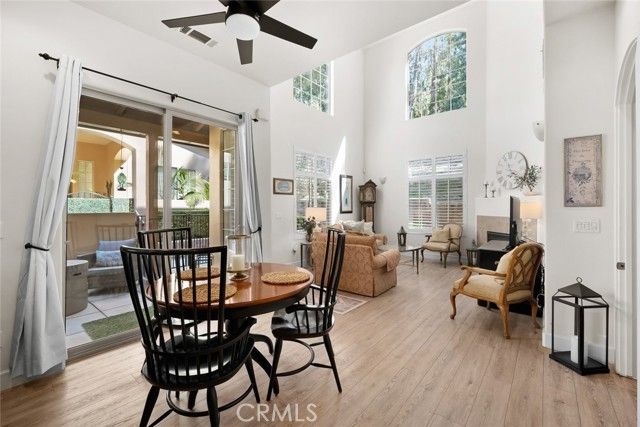 An exceptionally positioned townhome, defined by dramatic cathedral ceilings and soaring windows that capture uninterrupted views of the magnificent, tree-lined edge of the Monarch Butterfly Preserve. Few homes enjoy a setting this immersive—where the preserve’s natural beauty becomes a living backdrop felt throughout the interior and enhances the sense of privacy at every turn. The main level features an open layout with a living room anchored by a cozy fireplace, newer laminate wood flooring, and plantation shutters. The space flows seamlessly into the dining area and the well-appointed kitchen, enhanced by a new dishwasher and microwave and offering convenient access to the patio—an inviting place to relax, dine, and enjoy the serene surroundings. A main-floor bedroom enjoys the same tranquil views and is paired with a spa-like remodeled bathroom showcasing an elegant walk-in shower and dual vanity. Upstairs, three additional bedrooms and two full baths provide comfortable accommodations for family, guests, or an office or hobby space. Crisp interior paint, ceiling fans, and thoughtful finishes throughout contribute to the home’s move-in-ready appeal. Additional conveniences include a 2 car-garage with a built-in storage closet and a car vacuum system. Located within the Trilogy Monarch Dunes Resort Community, the home sits close to the clubhouse and its exceptional amenities, blending a peaceful, nature-oriented setting with the ease of resort-style living.