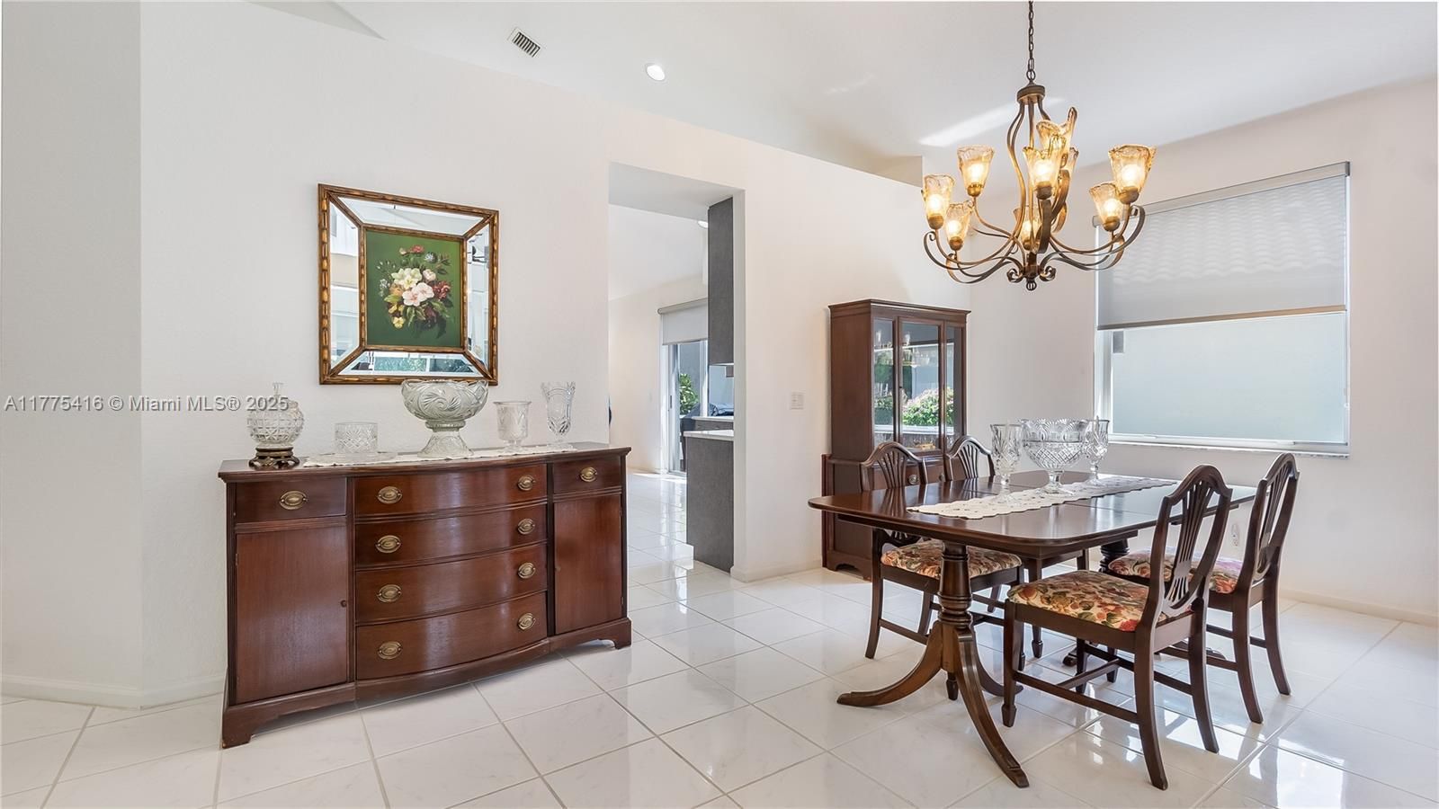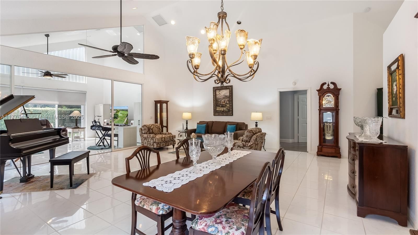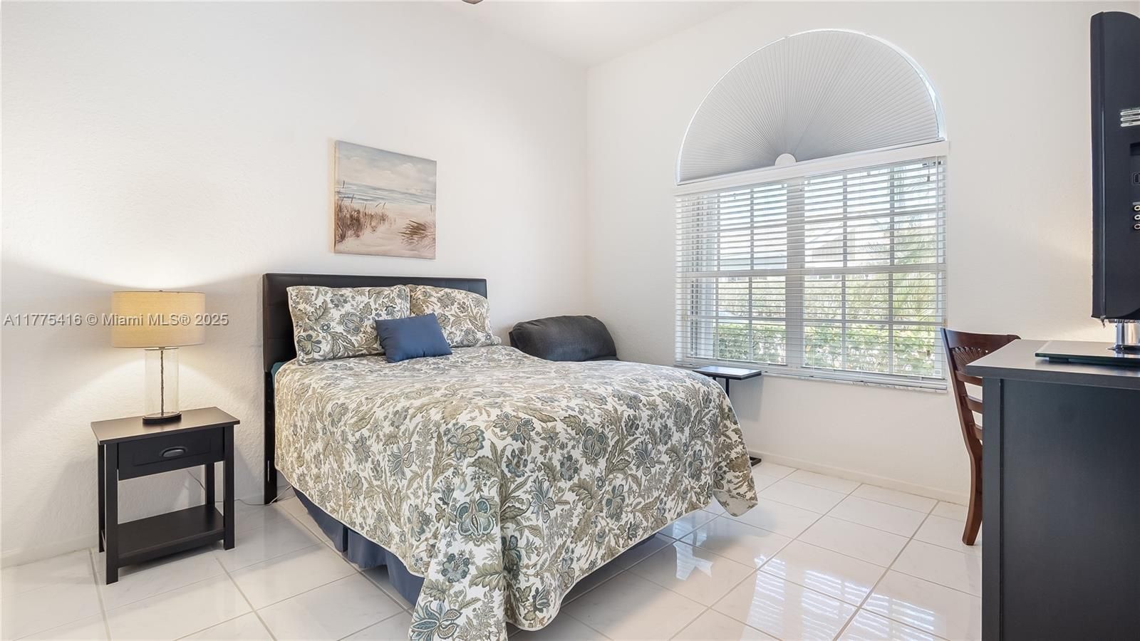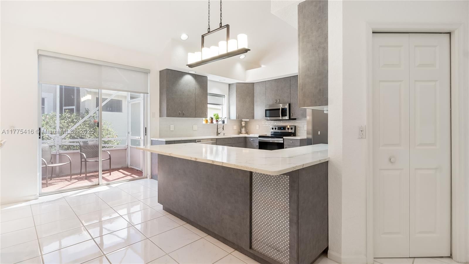This beautifully updated 3 bedroom, 2.5 bath home is situated on the golf course, overlooking the scenic 16th tee. Featuring an expansive open floor plan with soaring vaulted ceilings, this home offers a bright and airy living space.The modern kitchen with 48" gray cabinetry, glass subway tile backsplash, quartz countertops, and stainless steel appliances. The home is equipped with hurricane accordion shutters and generator ready. White tile flooring throughout with laminate flooring in the master bedroom. The oversized master suite features a spacious walk-in closet with custom built-ins, and bathrooms have been fully renovated with sleek, modern finishes. Residents enjoy resort-style amenities, including a clubhouse, swimming pool, hot tub and clubroom. This is a guard gated community.