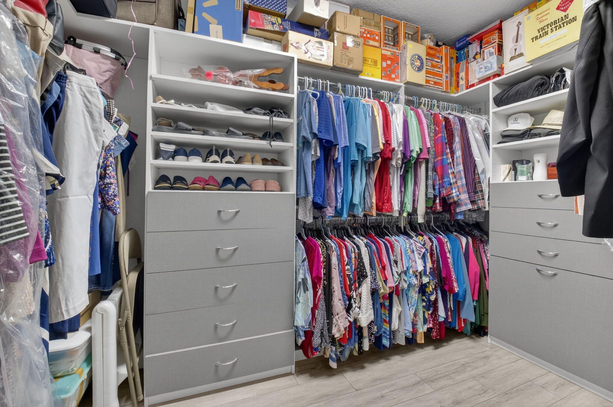 - High Ceilings, Kitchen Island, Pantry, Walk-In Closet(s), Split Bedrooms, Eat-in Kitchen, Multiple Primary Bathrooms, Multiple Primary Suites, Main Level Primary, Separate Shower, Soaking Tub