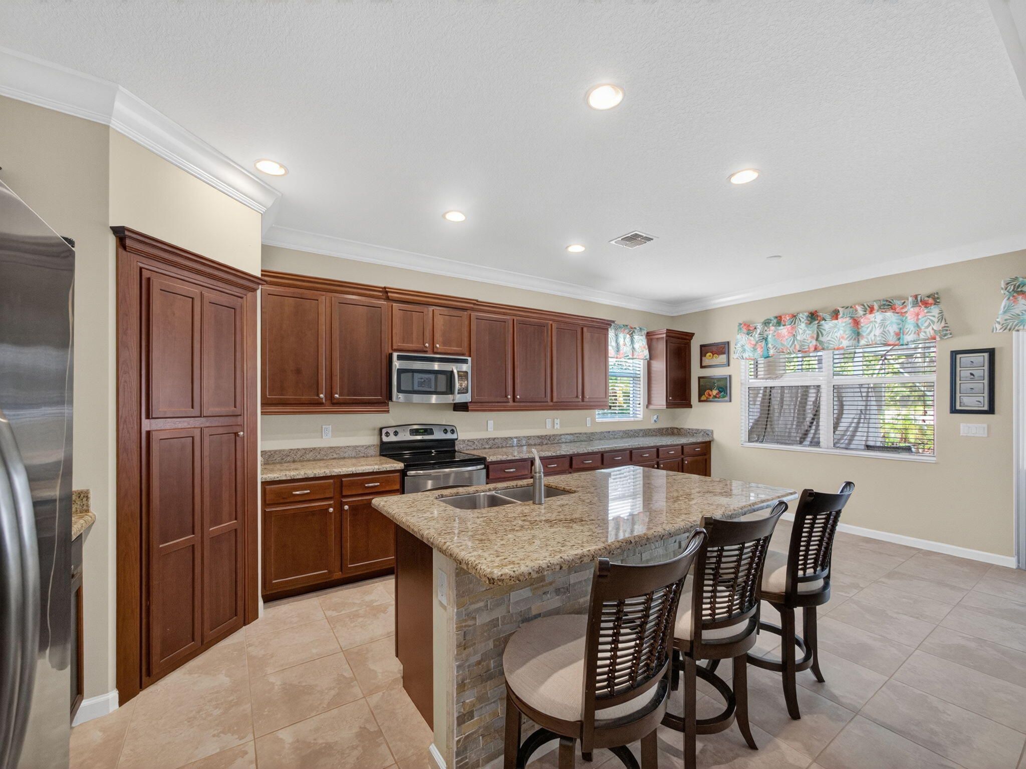 - Entrance Foyer, Pantry, Walk-In Closet(s), Home Office, Great Room, Breakfast Area, Family/Dining Room, Snack Bar, Blinds, Single Hung Metal Window(s), Dual Sinks, Separate Shower, Storm Shutters