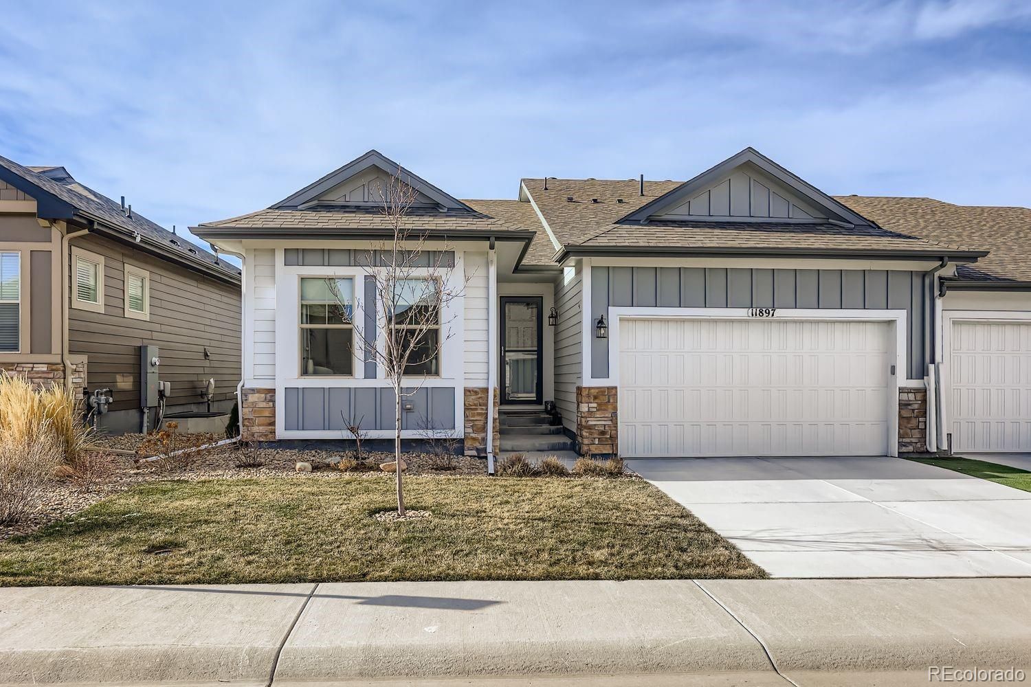 NEWER CONSTRUCTION IN LINCOLN CREEK! Low Maintenance ranch style home with finished basement. This Ponderosa model includes a Bright and open great room with Vaulted ceilings and a beautiful stone fire place, Gourmet Kitchen with Stainless Steel Appliances, cabinet microwave, an Upgraded Gas Range, Quartz Countertops, and White Maple Cabinets. WPC Hardwood on the Main Level, Gas Fireplace in Great Room and a Full yard Landscape that includes a custom patio with iron fence/gate and custom retractable awning. Basement includes a guest suite, full bathroom, plenty of storage, another unfinished bedroom, an open concept family room and lockable steel window well covers. A short distance to Historic Main Street Shops & Eateries and about 15 Minutes To DTC!