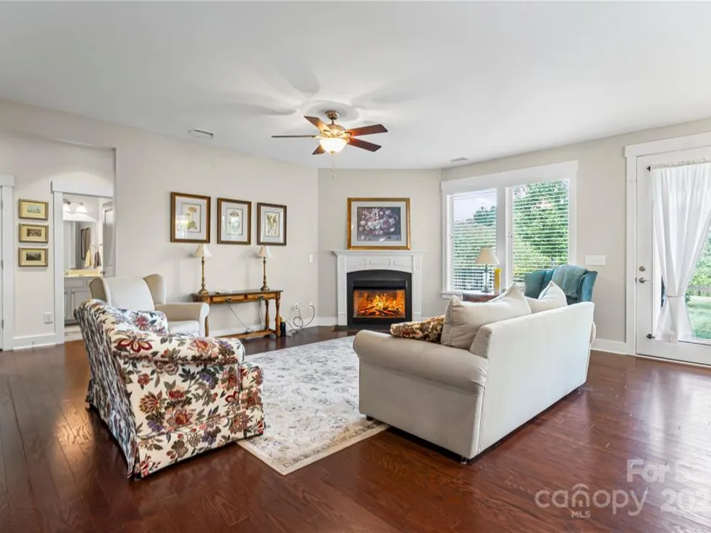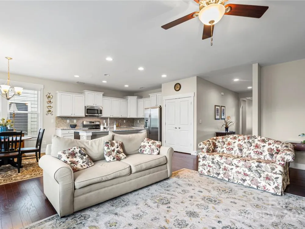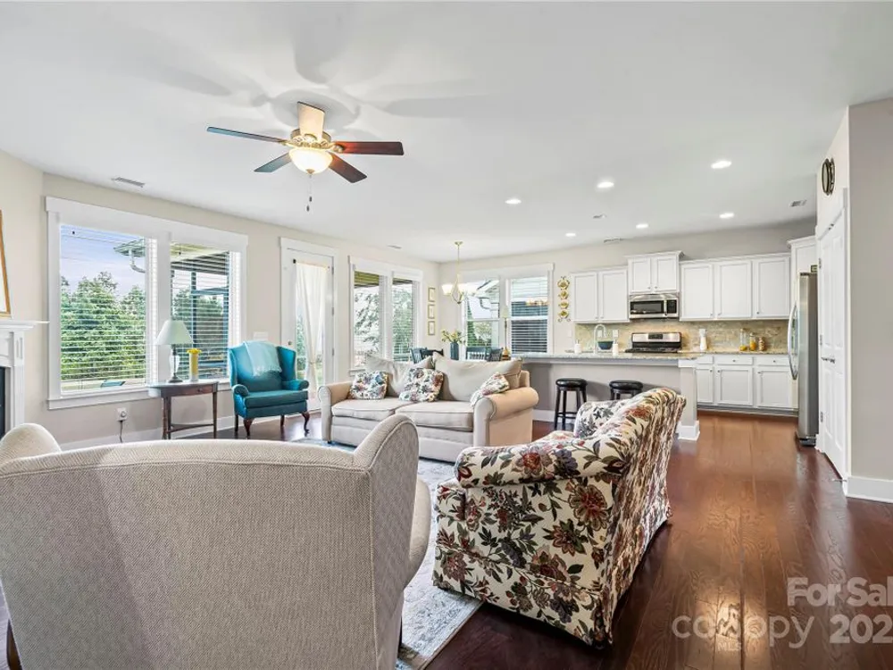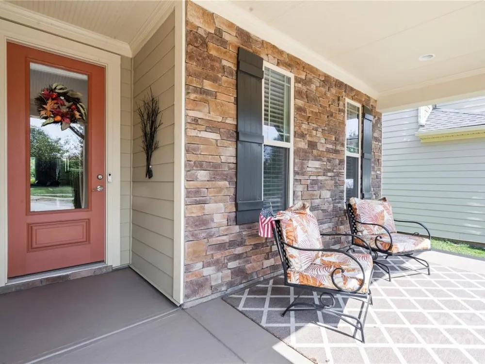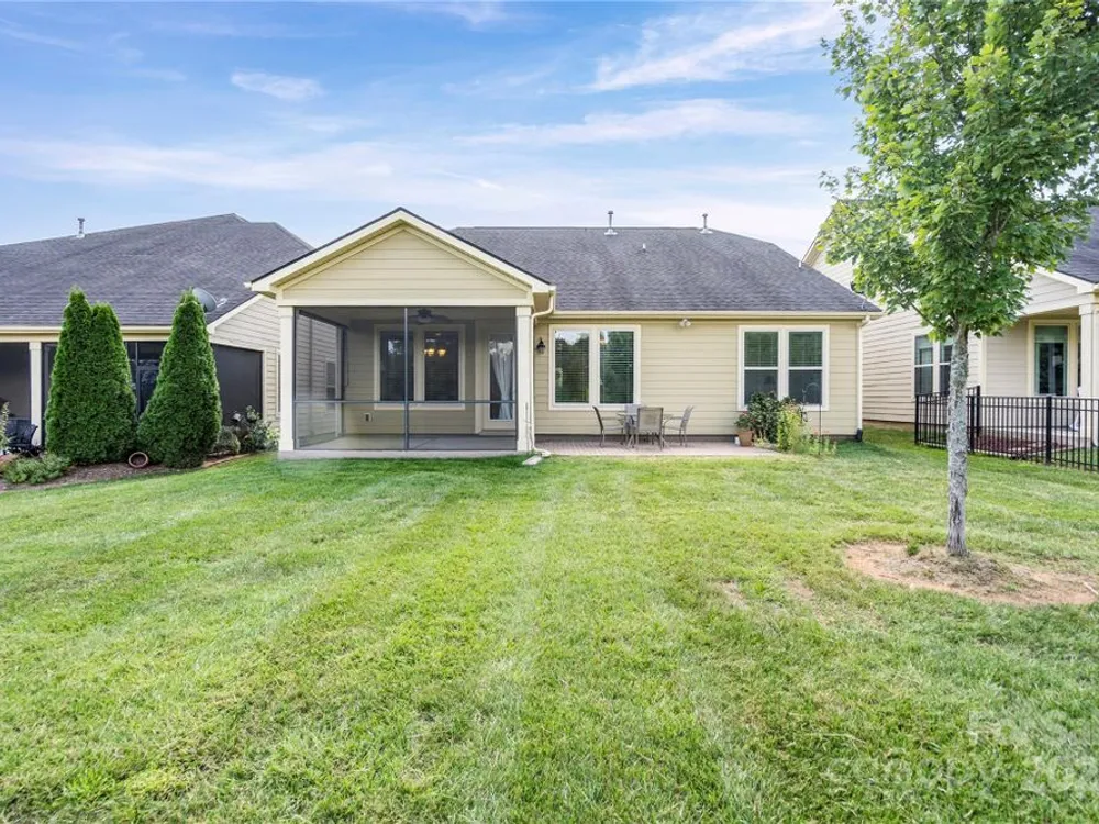Charming Ranch Home in Johnson Manor Subdivision. Welcome to this beautifully maintained single-family ranch offering 3 spacious bedrooms, 2 full bathrooms, and 1,785 square feet of comfortable living space. Nestled in the sought-after Johnson Manor community, this home combines elegance, convenience, and low-maintenance living. Step into the heart of the home—a gourmet kitchen featuring granite countertops, custom cabinetry, stylish backsplash, gas stove, and a large island that seamlessly overlooks the expansive Great Room, perfect for entertaining or cozy nights in front of the gas fireplace. Enjoy outdoor living with a peaceful backyard, screened-in porch, and a patio ideal for grilling. The inviting rocking chair front porch adds Southern charm, while wooden blinds throughout provide a warm, finished touch. The primary suite boasts a custom closet system for optimal organization. The garage is a standout with built-in cabinets and a finished pebble floor, offering both functionality and style. Washer, dryer, and refrigerator are all included for your convenience. Worry-Free Living - the HOA covers lawn care, landscaping, and irrigation, allowing you to enjoy the community’s amenities stress-free. Community Perks - Johnson Manor features scenic walking trails, a dog park, a stunning clubhouse with a full kitchen, a fitness center, and a vibrant community garden. You're just a short walk to the shopping center and a quick drive to charming downtown Davidson.