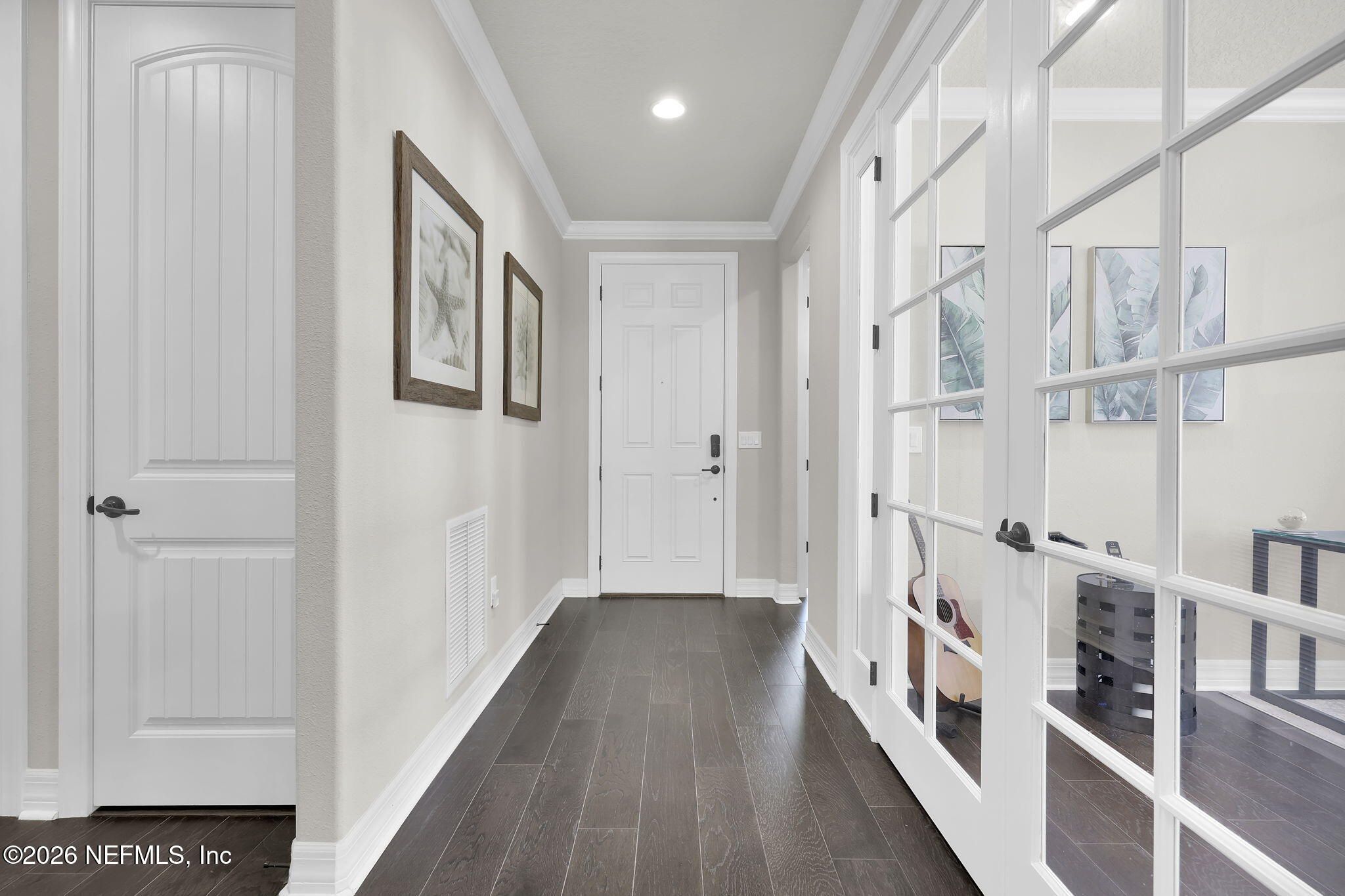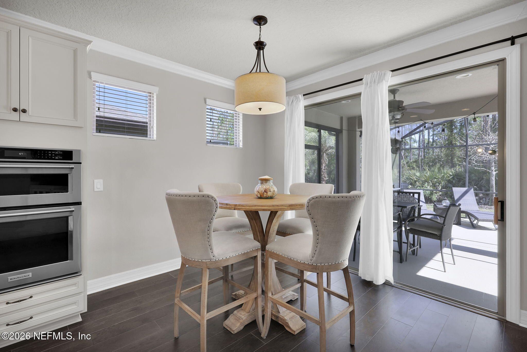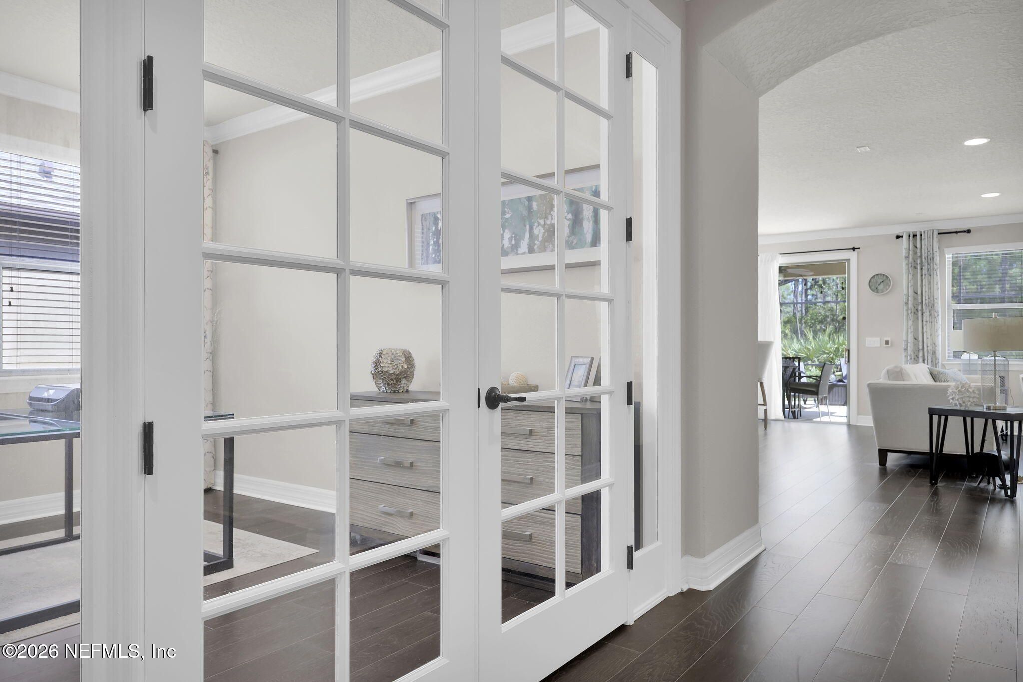 This solar heated pool home in Del Webb Ponte Vedra truly offers the perfect blend of luxury, comfort, and active adult living! This beautifully maintained Abbeyville floor plan offers numerous upgrades and features including hardwood floors, custom closets, whole house water softener system, and extended garage with durable epoxy flooring. From the moment you step inside, you'll appreciate the warmth and character of this move-in ready pool home, where every space has been carefully designed for both comfort and functionality. The home features 2 spacious bedrooms plus a versatile flex room with new French doors, ideal for a home office, hobby room, or potential third bedroom. The gourmet kitchen serves as the heart of the home and is perfect for entertaining, showcasing granite countertops, a beautiful backsplash, upgraded cabinetry, a large food prep and entertaining island, pantry, and all appliances included. The open-concept design flows seamlessly into the family room and everyday dining nook, creating an inviting space for gatherings with friends and family. Step outside to your screened stadium lanai complete with privacy shades and solar heated swimming pool and gorgeous lush preserve views- the perfect setting for relaxing afternoons or entertaining guests while enjoying Florida's year-round sunshine! The spacious owner's suite is light, bright, and designed for comfort, featuring a luxurious en-suite bath with dual vanities, a large walk-in shower, and a custom walk-in closet. This thoughtfully designed home offers no wasted space and includes numerous upgrades and features that today's buyers appreciate, including: ~ Beautiful hardwood floors throughout ~Decorative curtain rods and custom draperies ~ Custom closet systems ~ Convenient drop zone off the garage ~ Extended garage with durable epoxy flooring ~ Whole-house water softener system ~ Under-sink kitchen water filtration system Major system updates provide peace of mind, including a new HVAC system (2025), a new water heater (November 2023), a new Jandy Pool Pump (November 30th, 2023), along with a newer kitchen disposal and dryer. Additional conveniences include a separate laundry room with utility sink, cabinetry, and extra storage closet. Located in the resort-style Del Webb Ponte Vedra 55+ community, residents enjoy world-class amenities, social clubs, fitness facilities, pools, pickleball, and an active lifestyle just minutes from shopping, dining, and the beaches of Northeast Florida. Schedule your private showing today and experience this exceptional home for yourself. Welcome to effortless Florida living in the highly desirable 55+ active adult community of Del Webb Ponte Vedra. Riverwood by Del Webb, a vibrant 55+ active adult community, offers an unparalleled lifestyle nestled in the heart of the renowned master-planned community of Nocatee. Situated in the prestigious Ponte Vedra area, this community is perfectly positioned between Jacksonville and St. Augustine, Florida, providing easy access to pristine beaches, fine dining, shopping, and recreational activities. Community Highlights: Natural Beauty: Surrounded by 2,400 acres of the serene Nocatee Preserve, Riverwood provides a tranquil setting minutes from the Atlantic Ocean. Resort-Style Amenities: The Anastasia Club features a grand ballroom, indoor and outdoor pools, a sauna, a spa, a state-of-the-art fitness center, tennis courts, pickleball, bocce ball, and more. A dedicated Lifestyle and Fitness Director ensures engaging events and activities year-round. Nearby Attractions: Residents enjoy proximity to Nocatee Splash Park, a family-friendly destination offering a lazy river, water slides, zip lines, and a lagoon pool. Nocatee Amenities: Living in Nocatee extends the Riverwood lifestyle with an impressive array of features: Splash Water Park: Experience the thrills of the Rip Tide Slide, the Lazy Tides River, and the lagoon pool, or enjoy the 330-foot zip line. Fitness and Wellness: The Swim Club Pool and Fitness Club are equipped with modern cardio and weight equipment, free weights, and group classes. Outdoor Adventures: Explore Greenway Trails, which wind through 2,400 acres of scenic beauty along a 3.5-mile stretch of the Intracoastal Waterway. Spray Park: Perfect for additional water-based fun, located conveniently near the Swim Club. The Lifestyle: Riverwood by Del Webb is more than just a community; it's a gateway to "Florida Living at Its Finest." Whether relaxing poolside, engaging in recreational sports, or enjoying the bustling activities organized by the Lifestyle Director, this community offers everything you need to live a fulfilling, active, and social life.