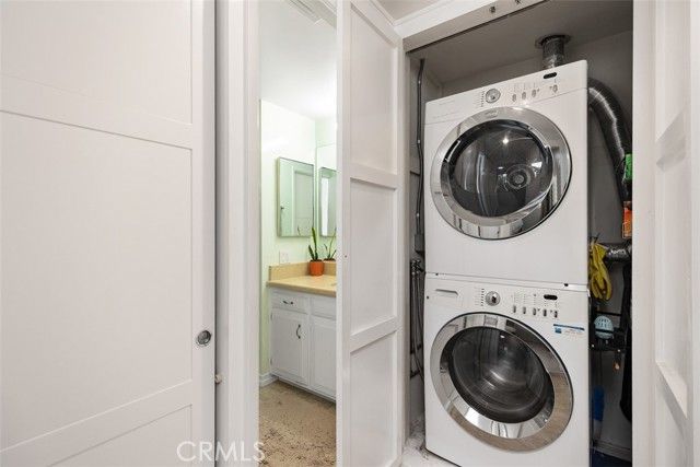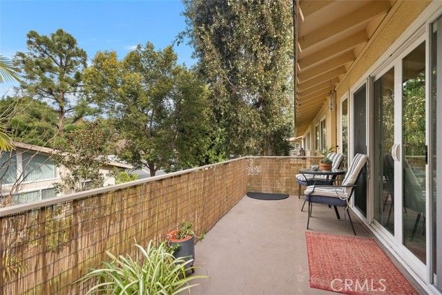 Beautiful elevated upper 2BR 2BA with greenbelt views is adjoining the popular scenic walking trail called the Serpentine. Step inside and you will immediately feel your home. Spacious vaulted ceiling in living/dining room offers amazing airspace. Tiled kitchen, wood laminate flooring in living spaces, new low pile carpet in bedrooms. Solar tubes in almost every room provide so much natural light. Central air and heating. Energy efficient dual paned windows and slider doors. New window treatments in every room. The Kitchen has all new GE stainless steel appliances, (refrigerator, range, dishwasher). The upgraded open concept living/ dining area with polished countertops, ceramic farmer sink, accent painted cabinets, raised ceiling lights and solar tubes create a spacious and seamless living environment. Bespoke colorful dining space track lighting adds a modern chic look. Other key features are the energy efficient dual paned windows and slider doors, Stacked washer and dryer, Accent walls in entry way and master bedroom and a Cast iron bathtub in master bath. Privacy fence on tranquil and serene balcony patio completes this turnkey ready to move in property. Your Carport #105, space #2 has extra built in storage and is close easy walk to home. Laguna Woods Village residents enjoy a 27-hole championship golf course, a 9-hole executive par 3 course, pickleball and tennis courts, lawn bowling, gyms, clubhouses, swimming pools, horse stables, gardening centers, artist studios, computer workrooms and classes + over 200 clubs and organizations. Located 15 minutes from Laguna Beach and close to Dana Point and Newport Harbor and Fashion Island Newport.