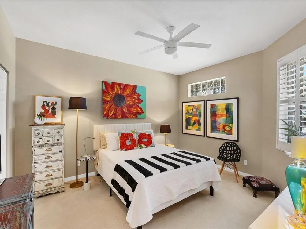 - Ceiling Fan(s), Eat-in Kitchen, High Ceilings, Stone Counters, Walk-In Closet(s), Window Treatments