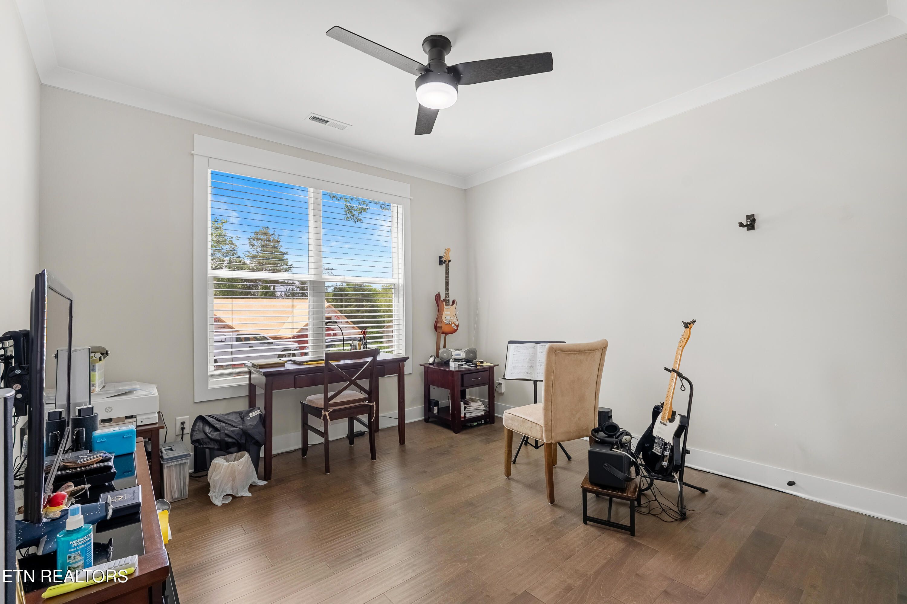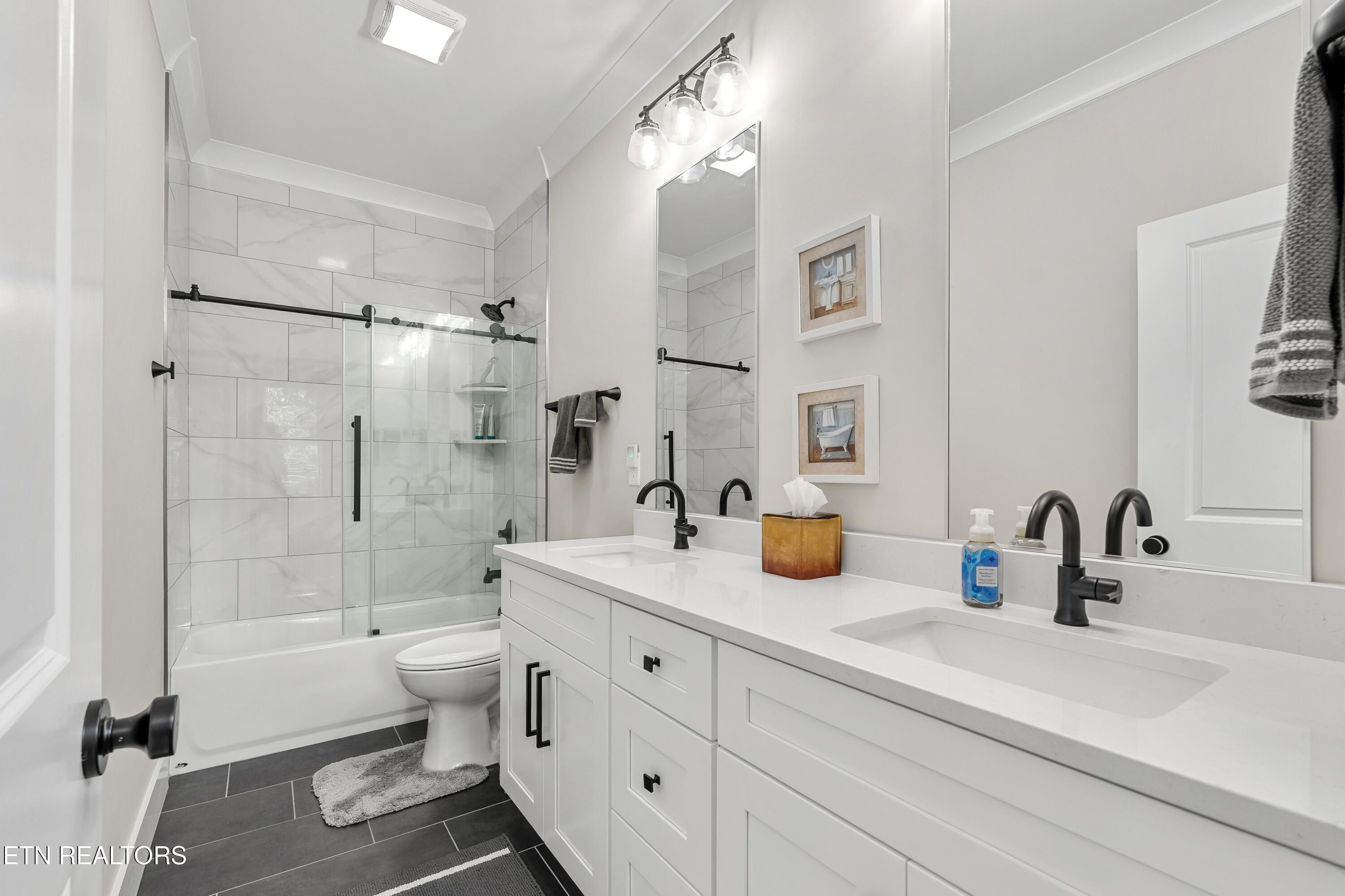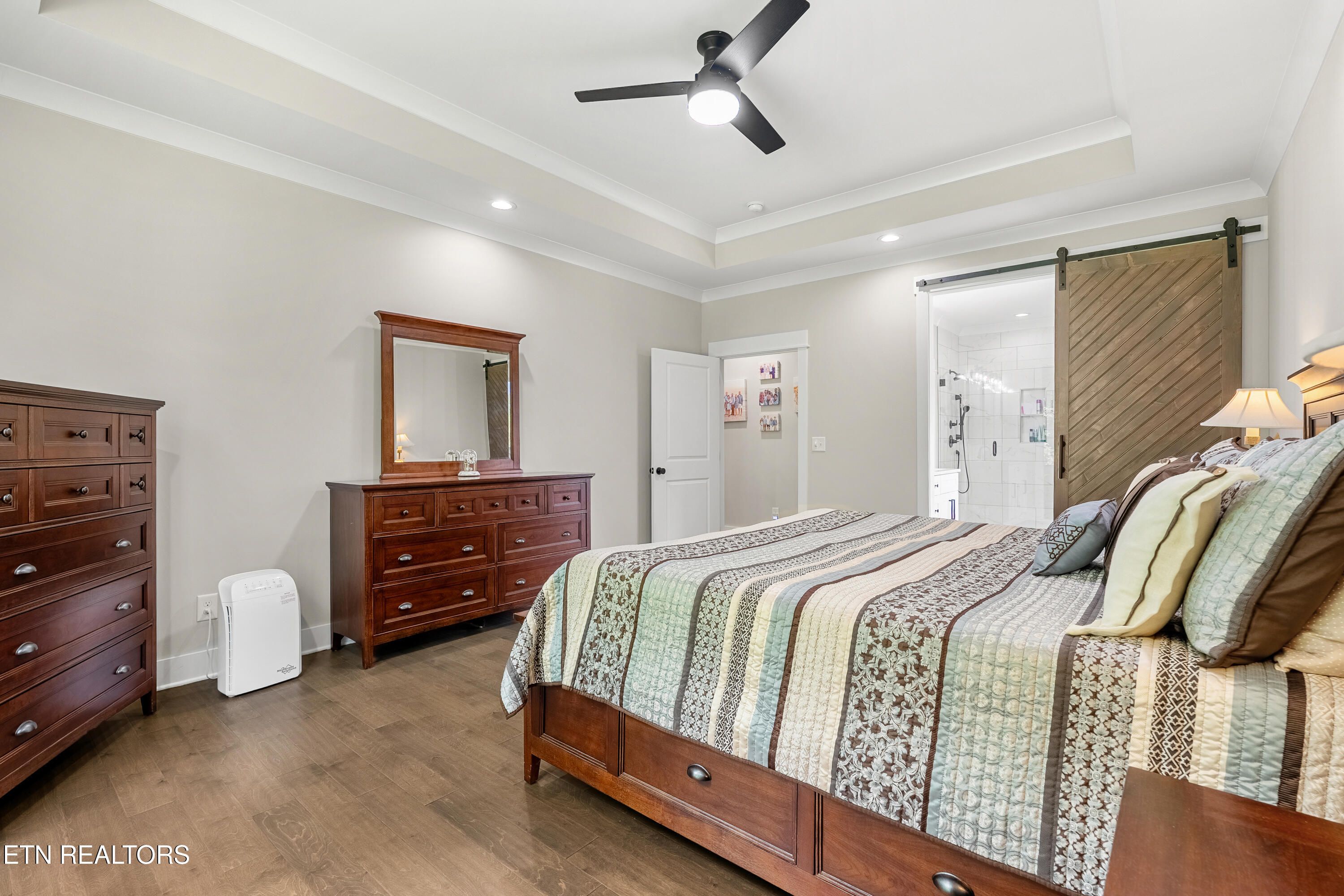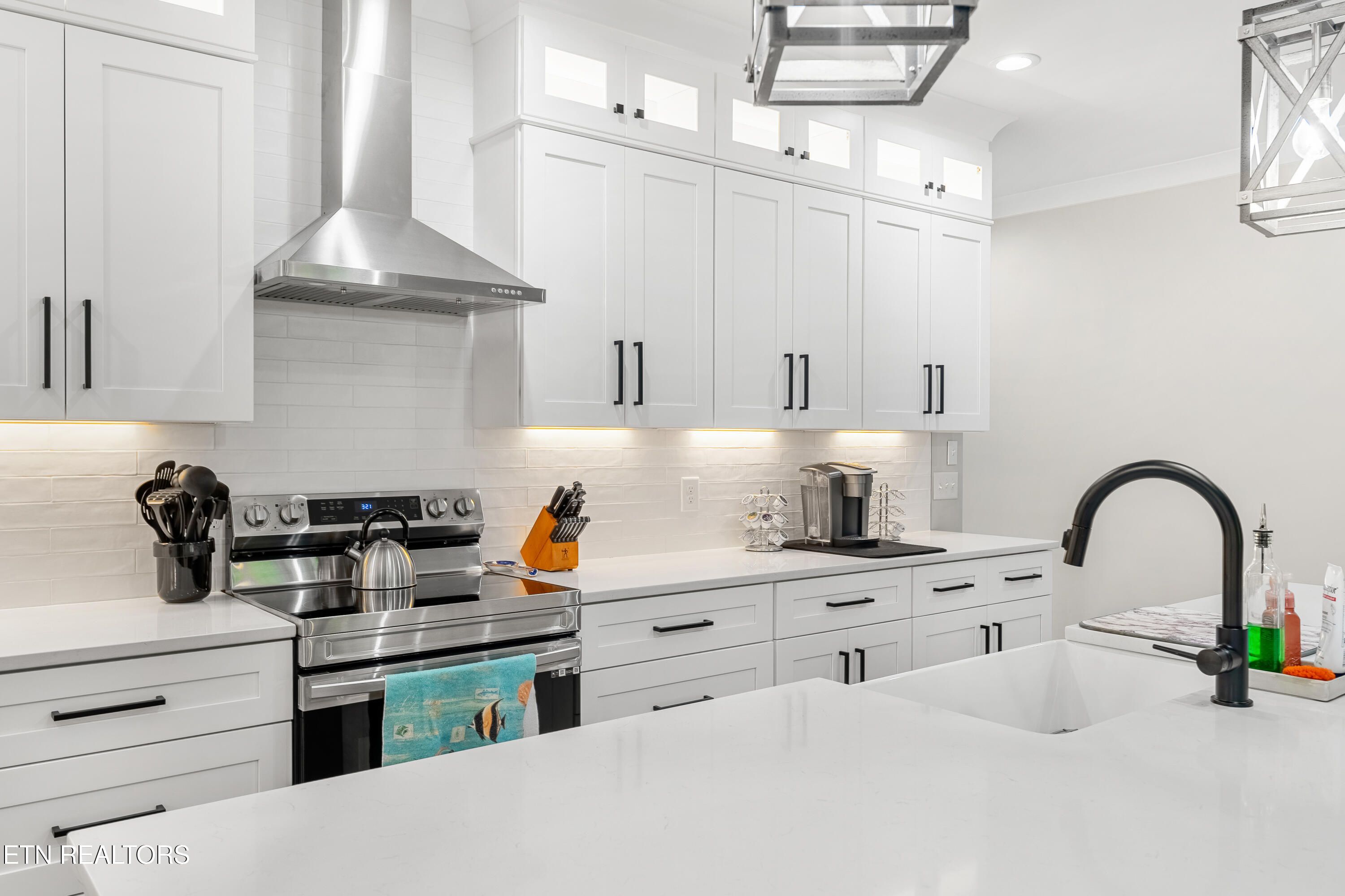 Come and Enjoy all the Recreational Amenities Tellico Village Has to Offer! This beautiful Rancher has a thoughtfully designed open concept floor plan with 3BR, 2BA. High end finishes throughout. Hardwood flooring, crown molding, large open living room with vaulted ceiling complete with wood beams. A brick fireplace is the focal point of this room. A very spacious Chef's Kitchen with custom cabinets with dramatic down lighting, very large quartz Island, and quartz countertop, stainless steel appliances, and a large walk-in pantry. A lovely dining area is adjacent to the kitchen which gives you ample room for a lovely dining table and chairs. The large primary suite with trey ceilings, walk-in closet, primary bathroom complete with dual sinks, quartz countertops, glass walk-in shower with luxury tile, shower niche, a spa-like soaking tub and elegant fixtures throughout. Two spacious guest rooms share a well appointed bathroom with shower/tub combo with a glass enclosure, double sinks and quartz counter tops. The laundry room comes with LG washer and dryer, custom cabinets for plenty of storage, and a convenient utility sink with quartz countertop. The spacious two car garage has a newly installed garage heater, allowing you to use this space comfortably all year long. The screened in patio overlooks the professionally landscaped level lot that backs up to POA property This provides added privacy instead of looking at another home. The home is protected with gutter guards, which makes gutter maintenance a breeze. A reverse osmosis RO system is installed, which removes water contaminates, giving you improved quality drinking water through the home. This quality home has too many features to list. It is a must see.