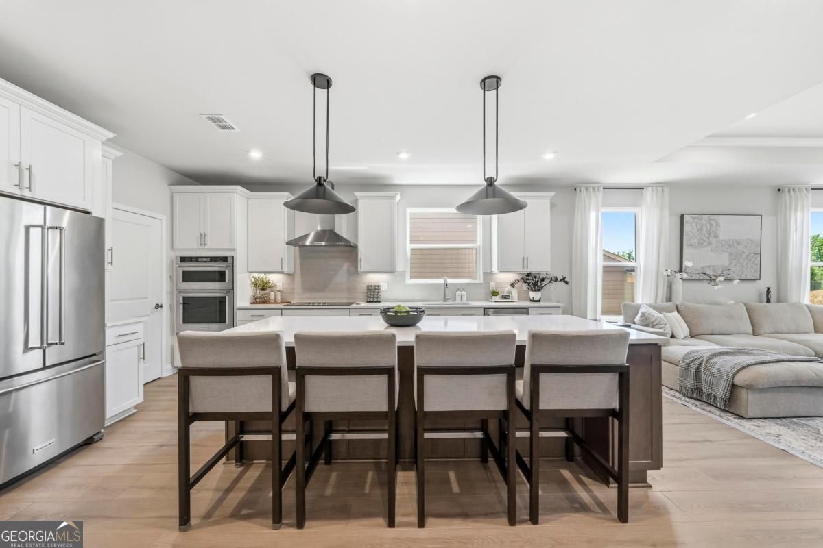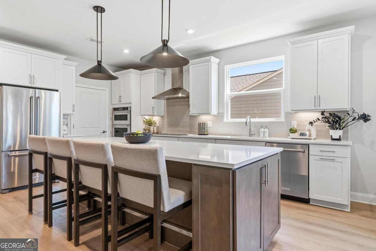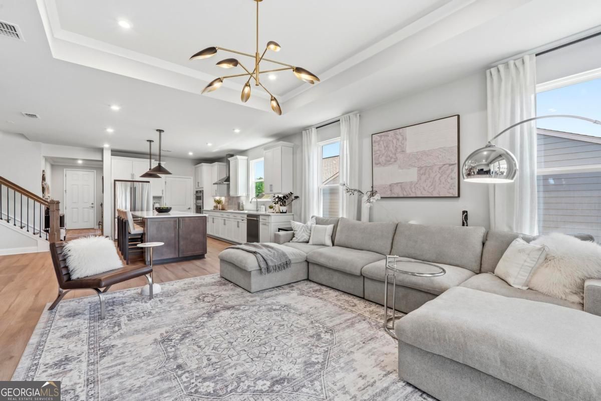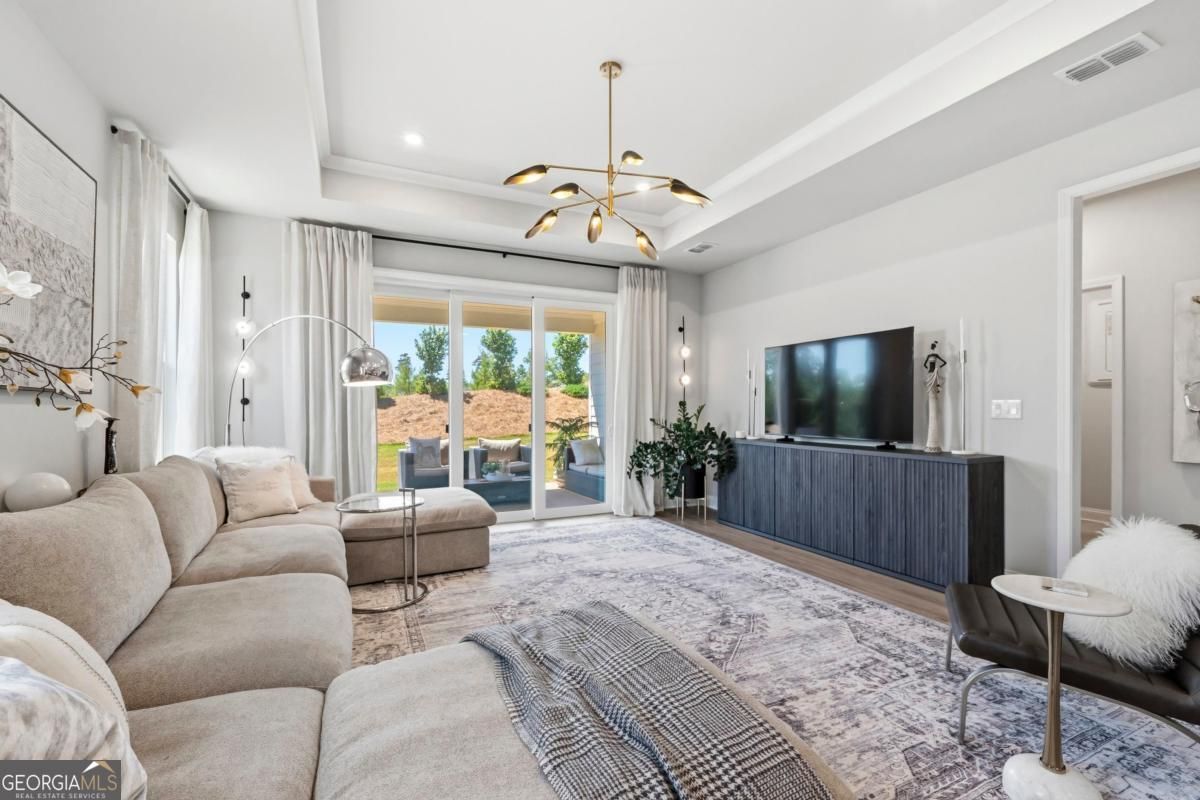 Like new-less than one year old-this Del Webb Mainstay floor plan offers over 2,600 sq ft of refined, open-concept living with 3 bedrooms and 3 full baths. Complete with a 2-car garage with 4 ft extension, the home blends comfort, style, and functionality with a high-end touch. The main level features 2 bedrooms and 2 full baths, including a spacious primary suite with a custom closet system and a spa-like bath with a tile shower. A secondary bedroom and full bath provide ideal guest space, along with a dedicated office or flex room perfect for working from home or a quiet retreat. The gourmet kitchen is designed to impress with quartz countertops, stainless steel appliances, and a large island with breakfast bar, all flowing seamlessly into the main living and dining areas. LVP flooring and modern light fixtures throughout enhance the home's polished, upscale feel. Upstairs, a private third bedroom and full bath are complemented by a versatile loft-ideal for guests, entertaining or additional living space. Enjoy outdoor living year-round on the covered patio.The home is thoughtfully designed with abundant storage throughout. Don't miss your chance to experience the ease of resort style living where a gated community, resort-amenities including a pool, exercise facility, lake access, pickleball, tennis courts and more are at your fingertips. Landscaping is included to create a truly seamless lifestyle-Call to schedule your showing today!