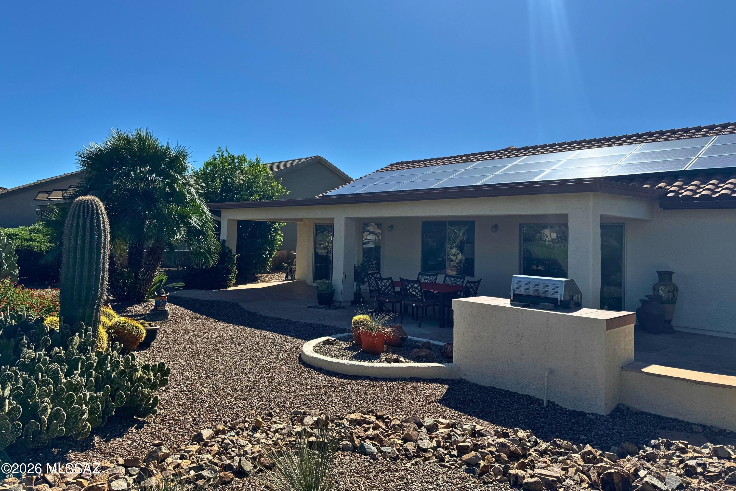Situated on a premium golf course lot, this home captures sweeping Santa Rita Mountain views and an elevated outdoor lifestyle. A beautifully landscaped backyard with lush plantings and an expansive covered patio sets the stage for entertaining, dining or simply enjoying the serenity of the setting. Natural light fills the great room and kitchen, complemented by newer appliances. The primary suite features a patio door, walk-in closet, and bath with double vanity. The den offers versatility for an office, library or creative space, while a well-appointed guest room provides comfort and privacy. Quail Creek residents enjoy world-class amenities including golf, recreation centers, pools, pickleball, fitness, dining, and social clubs--an unmatched blend of leisure and luxury for active adults