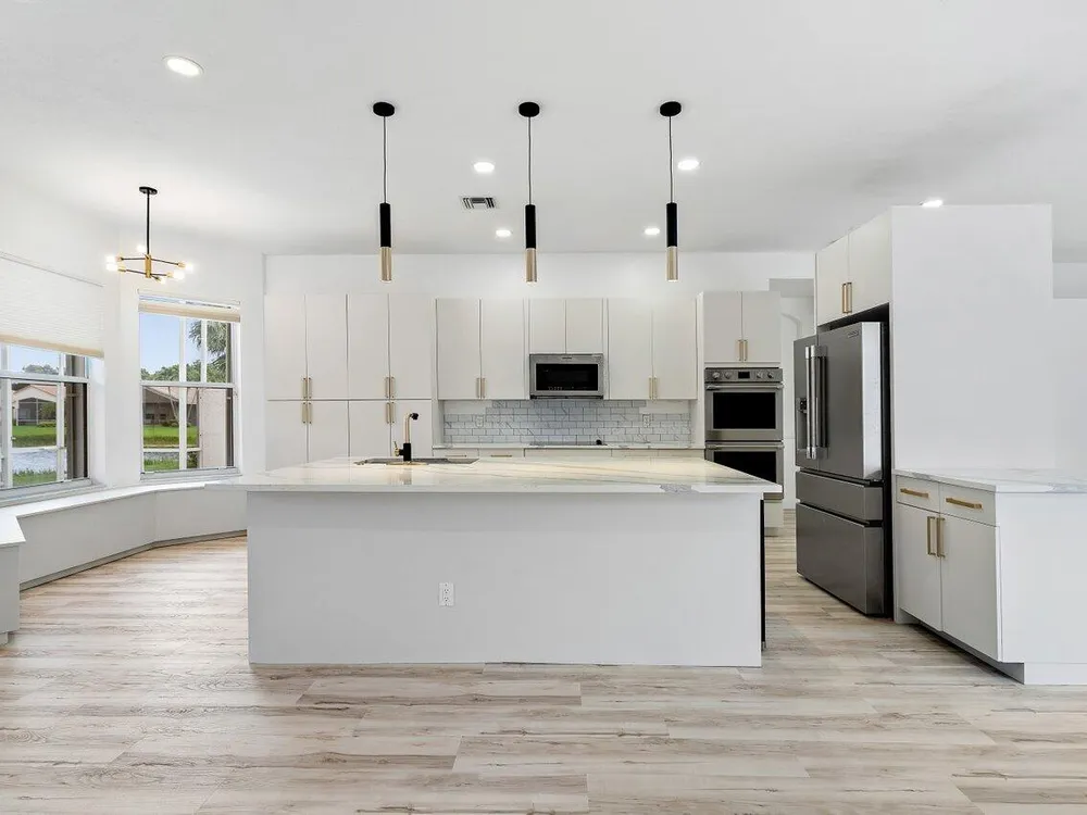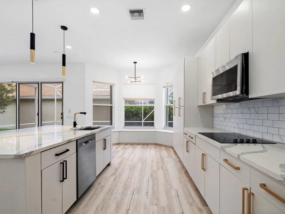Stunning Fully Redone Home in Valencia Lakes. This Masterpiece is Like no Other in the Community. This Home has Been Redesigned with Walls Removed to Open the Entire House. There are Modern Floors Everywhere. The Stunning Kitchen Boasts Wood Cabinets, Quartz Counters and High End Stainless Steel Appliances. The Large Primary Bedroom Includes a Luxurious New Bathroom with Huge Walk In Shower and Freestanding Tub as Well as all New Cabinets and Flooring. No Expense was Spared in Creating this Remarkable Home. Step Out to Your Screened and Covered Patio For Your Private Garden and Lake Views. New Brand New Washer & Dryer. Valencia Lakes is an Incredible Active Adult Community with a Brand New Gorgeous Clubhouse that Includes a Cafe, Theater, Card Rooms & More. Do Not Miss this Opportunity!