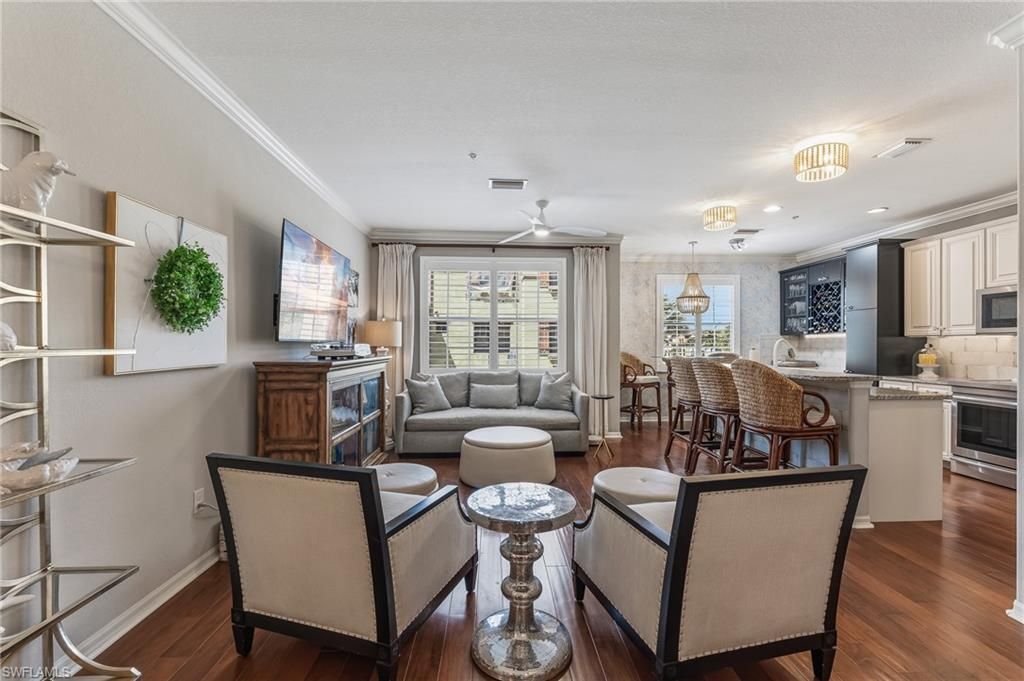 WOW…WOW…WOW…..STUNNING FORMER SANTA BARBARA MODEL NOW AVAILABLE…..Step inside to explore this gorgeous, magazine-worthy 3B/2.5BA townhome nestled within the unique resort-style community of PASEO. Professionally designed and decorated with endless options and upgrades….wood floors; premium wallpaper on accent walls; crown molding; custom window treatments/solar remote shades + plantation shutters; custom decorative trim work on living/dining room wall; remodeled half bath; smart ceiling fans; screened front entry + primary bedroom balcony; luxurious fixtures, dimmers + LED lighting; tankless water heater (2024) and a huge oversized 2-car garage. The open kitchen floor plan features high-end solid wood cabinetry w/ new hardware + under cabinet lighting and hidden outlets; beautiful granite countertops w/ new tile backsplash (+ installed on island back wall); stainless Jenn-Air appliances and Thomasville custom bar w/ extra deep drawers, pantry cabinet w/ pull-out drawers, glass cabinets and french door beer/wine cooler. The upper level has luxury vinyl plank flooring (2020); entire level painted (2022); pricey hallway pocket door installed (2021) for guest privacy and partially remodeled guest bath. Just a short walk to the beautiful lush resort-style pool + tiki bar makes home feel like a tropical paradise. The community town center features a newly revamped pub/bistro restaurant, state of the art fitness center, ice cream parlor, library, full-service spa/salon, and 70 seat movie theater. Tennis, pickleball, bocce ball, sand volleyball and basketball courts all on site as well. Great location close to both Twins/Red Sox spring training baseball stadiums, RSW airport, shopping and dining.