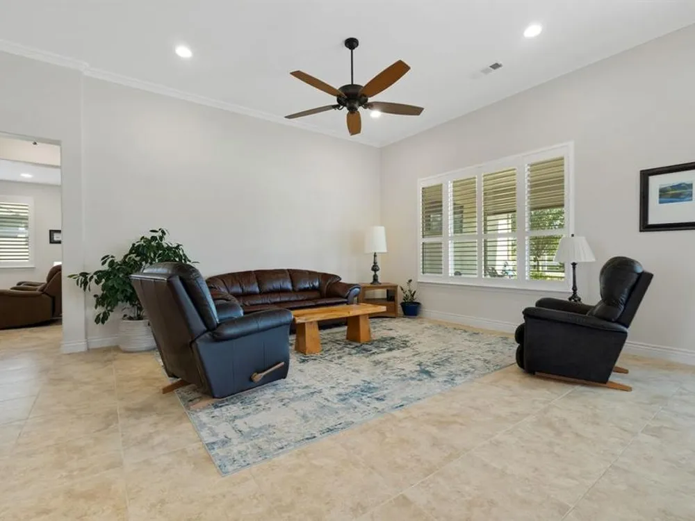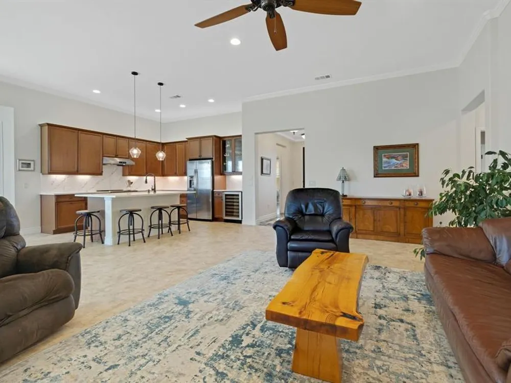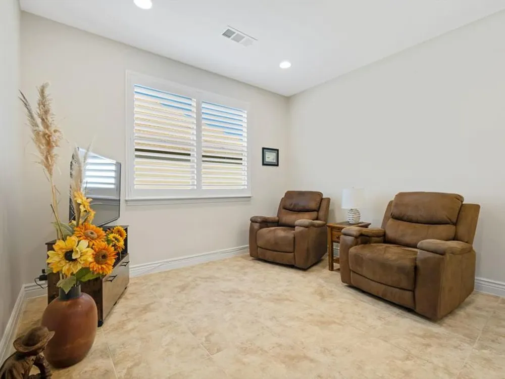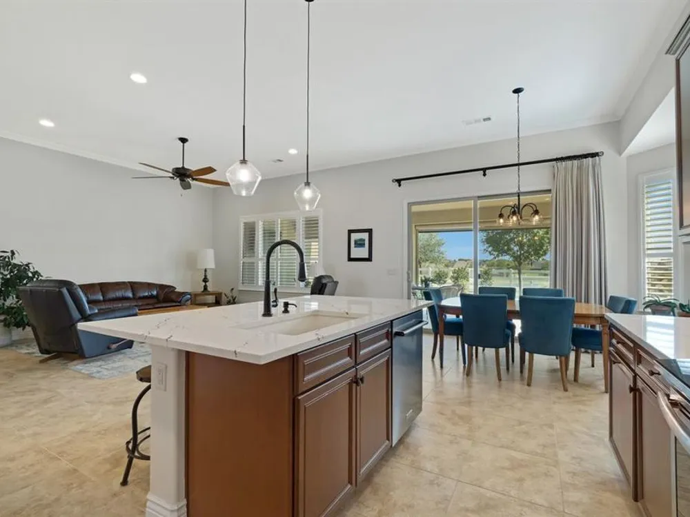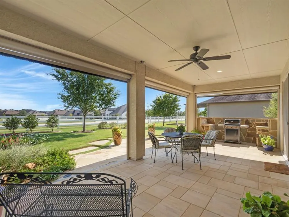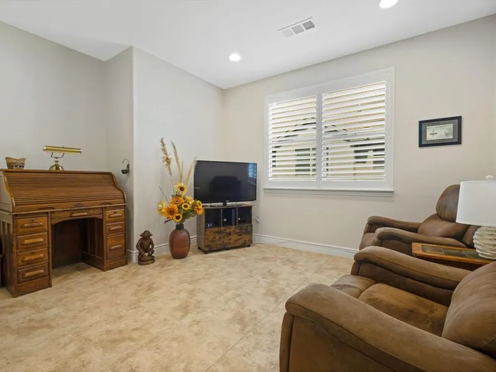 Discover the perfect blend of elegance, comfort, and low-maintenance living in this beautifully upgraded single-story home, nestled in the sought-after 55+ community of Robson Ranch. From the moment you arrive, the meticulous landscaping and inviting curb appeal set the tone for the thoughtful design that continues throughout.Inside, the open-concept layout creates seamless flow between living, dining, and entertaining spaces. The kitchen is a chef’s dream, featuring sleek Cambria countertops, stainless steel appliances, an oversized island, induction cooktop, and custom roll-out cabinets for effortless organization. A built-in dry bar with glass-front cabinets, accent lighting, and a wine refrigerator adds a stylish touch. Plantation shutters, oversized tile floors, and expansive windows fill the home with natural light and timeless character.The private primary suite offers a spa-like retreat with a custom closet system and a luxurious bath showcasing an oversized walk-in shower. A spacious secondary bedroom and a versatile study or flex room provide plenty of options for guests, hobbies, or a quiet office.Step outside to your very own backyard sanctuary—complete with mature trees, remote-controlled patio screens, outdoor kitchen with grill, and a stone wall with flagstone patio—designed for relaxing mornings, lively gatherings, and everything in between.The extended garage offers a 4-foot bump-out for a golf cart, along with a Versa Lift and floored attic storage for ultimate convenience.Even better, this home is move-in ready with premium extras included: Weber grill, kitchen and garage refrigerators, washer & dryer (new in 2024), Kobalt garage storage cabinets (new in 2024), kitchen bar stools, and kayak holders in the garage.