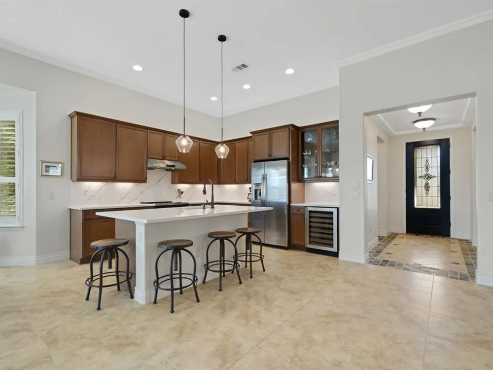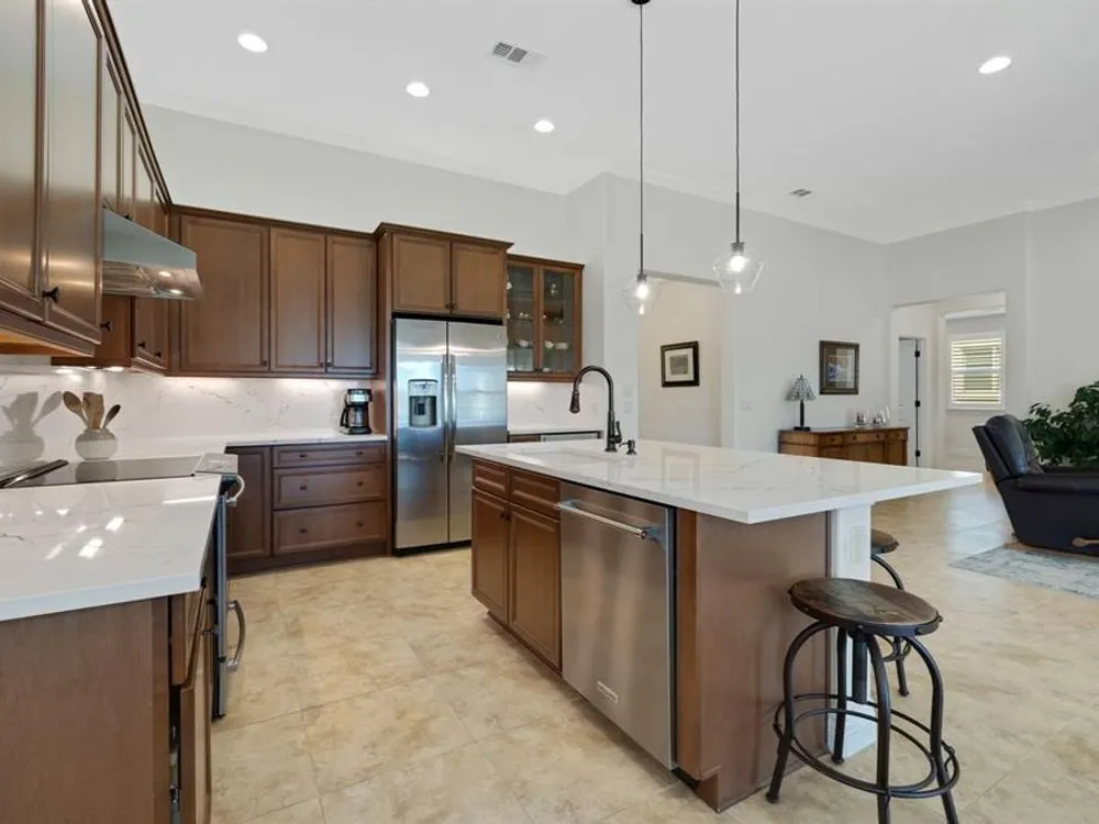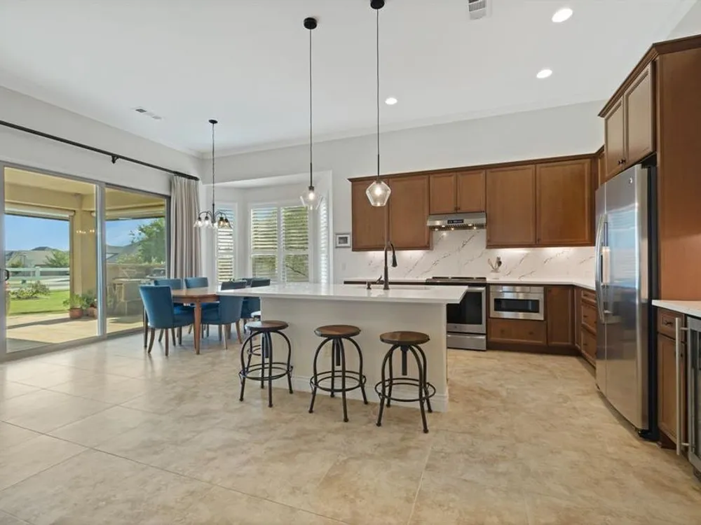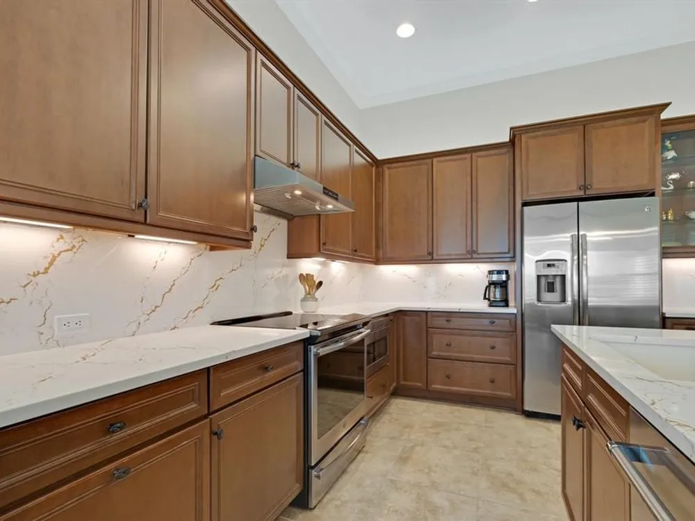 - Built-In Refrigerator, Dishwasher, Disposal, Electric Cooktop, Microwave