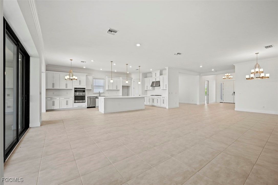 Welcome to your dream home in the prestigious Esplanade Lake Club! This brand-new, never-lived-in residence boasts exceptional curb appeal with a stylish paver driveway leading to a two-car garage. The exterior is enhanced by a classic tile roof, adding to its timeless charm. Step inside to discover a beautifully designed interior, highlighted by tile flooring throughout and elegant French doors that open into a world of modern luxury. The heart of this home is the gourmet kitchen, featuring white shaker cabinetry, stainless steel appliances, and a GAS cooktop. The large kitchen island serves as a central gathering spot for family and friends, perfect for casual meals or entertaining. The primary suite is a true retreat, offering a generously sized bedroom with large windows that flood the space with natural light. The ensuite bath is equally impressive, featuring an expansive glass-enclosed walk-in shower, dual vanities with sleek countertops, and ample closet space to keep everything organized and accessible. This home also includes two additional spacious bedrooms and two additional full bathrooms, ensuring comfort and privacy for family and guests. The versatile den can be tailored to fit your needs, whether as a home office, library, or media room. Triple pane pocket slider doors open to a beautifully designed backyard lanai, where you can enjoy serene lake views and the perfect outdoor setting for relaxation or entertaining. Beyond the home, Esplanade Lake Club provides an exceptional array of amenities. Enjoy a resort-style pool, state-of-the-art fitness center, and courts for tennis and pickleball. The community features scenic walking trails, a playground, an on-site restaurant and bar. For some fun and socializing, there's also a billiards room to enjoy and the clubhouse offers numerous social activities, ensuring there's always something exciting to do. This home and community offer an unparalleled lifestyle of luxury and convenience, making it the perfect place to create lasting memories.