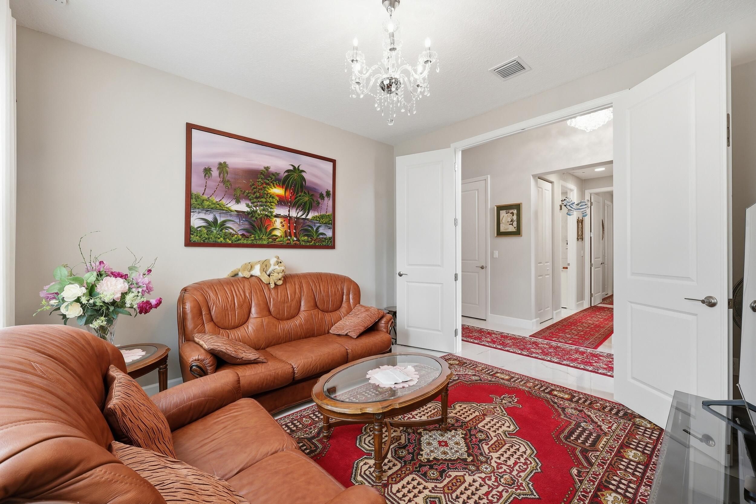 Highly sought-after 2023 Bimini model featuring 3 beds, 3 baths plus den (optional 4th bedroom) with tranquil water views and a private, fenced, screened backyard. Built by award-winning GL Homes, this residence offers open-concept living with designer finishes, a gourmet white kitchen with upgraded appliances, oversized quartz island, walk-in pantry, formal dining, and breakfast nook. Impact windows and a 2-car garage included. Located in the luxury gated 55+ community of Valencia Grove at Riverland, offering resort-style amenities, clubhouse, pools, fitness center, pickleball, tennis, dining, and an active social lifestyle. Minutes to Tradition Village, shopping, dining, Cleveland Clinic, and Mets Spring Training.