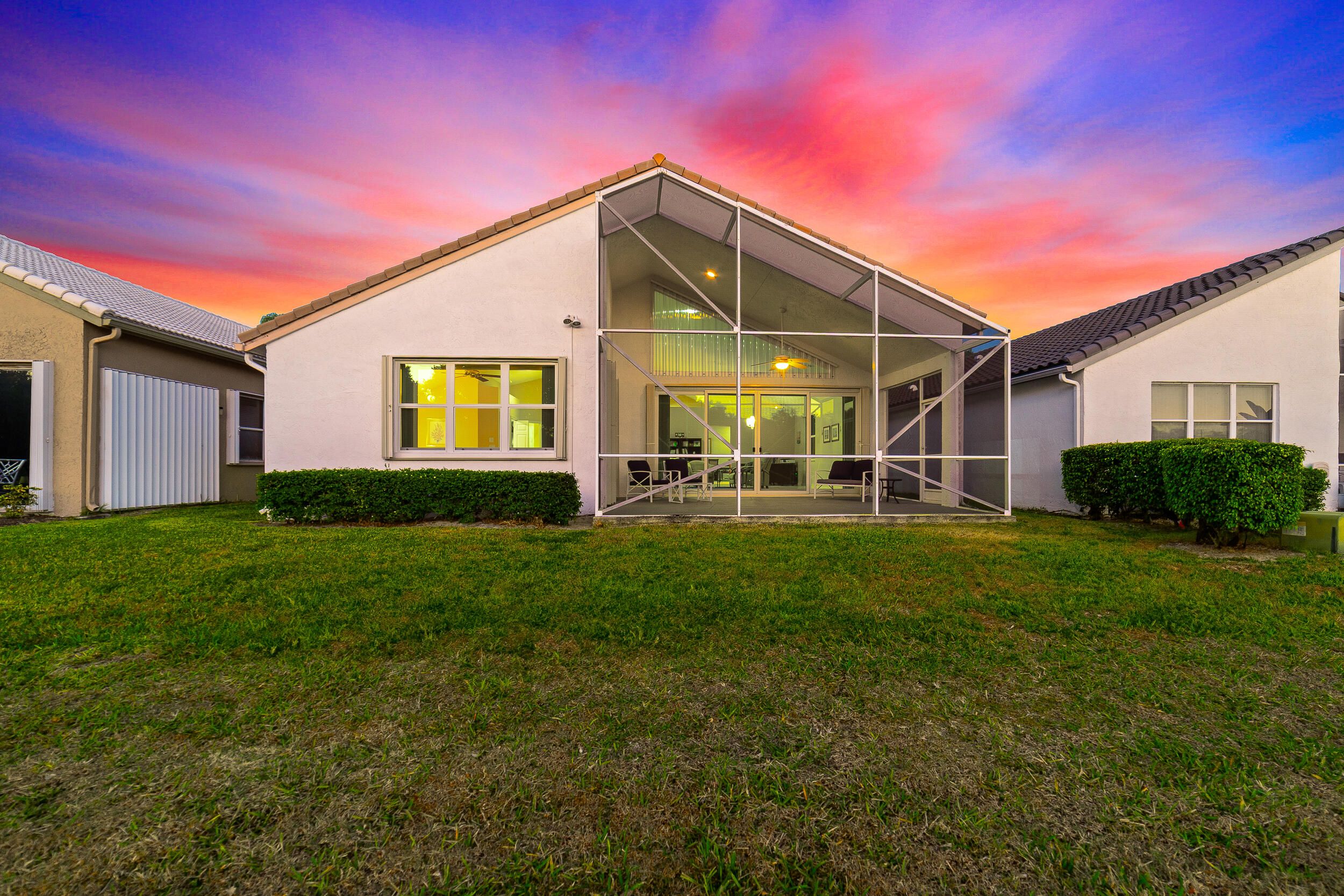 This is the one you've been waiting for. Enjoy peace of mind and breathtaking sunset, lake, and golf views from your newly screened patio. Hampton Fairways at Indian Spring is a 55+ community. Fresh, custom landscaping welcomes you home, while 2024 impact glass throughout, a newer roof, and updated 2021 HVAC systems add comfort and confidence. Inside, restored ceramic floors, updated bathrooms, soaring ceilings, and abundant natural light create an airy, inviting atmosphere, anchored by a beautifully renovated kitchen. Immaculate and meticulously maintained, this home reflects exceptional pride of ownership and is ideally located just 7 miles from Boynton Beach Oceanfront Park and Downtown Delray Beach—offering the best of the Florida lifestyle with low maintenance and high expectations. Golf membership options available.