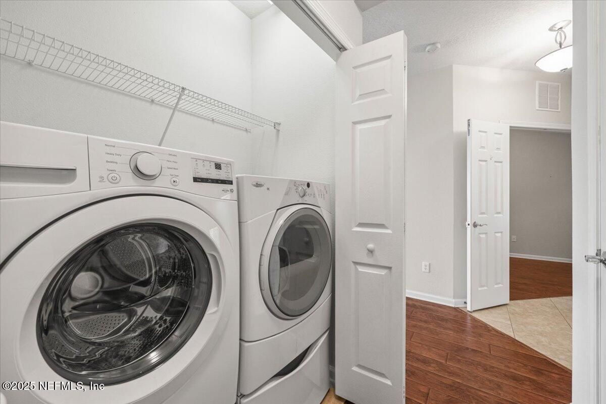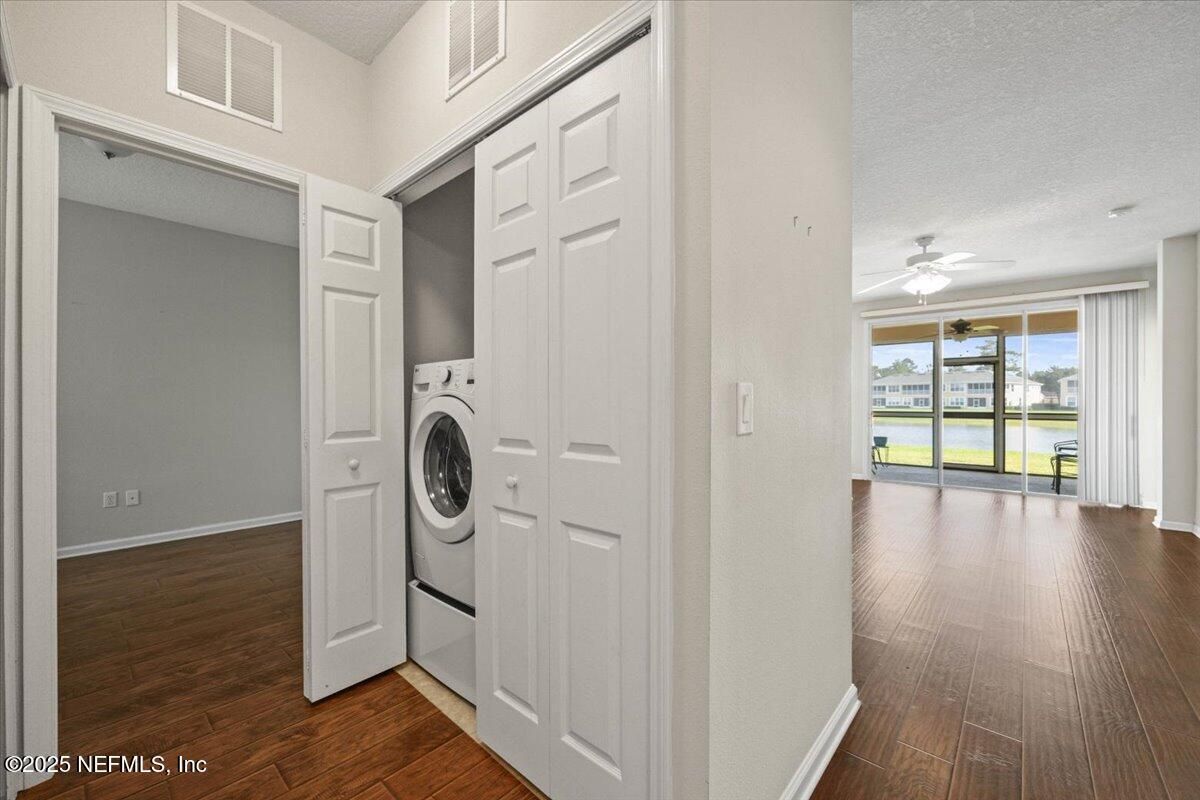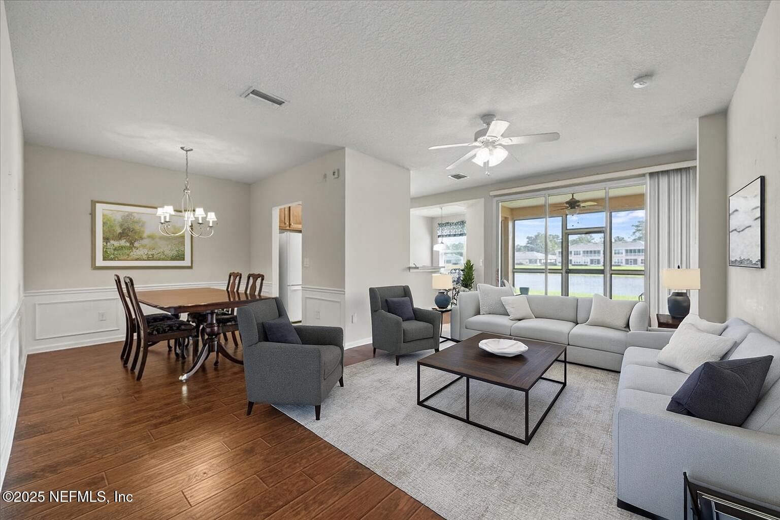 Nestled in the coveted Sweetwater by Del Webb community, this stunning residence in The Tides offers a perfect balance of comfort, style and convenience. The home's charming and peaceful setting grab you the moment you pull up to the paver driveway. The search ends the moment you step through the front door and discover a thoughtfully designed one story home (NO STAIRS) with an open floor plan. This 2 bedroom , 2 bathroom treasure also has an office/flex space, formal dining area and a breakfast area that is filled with natural lighting and AMAZING WATER VIEWS!! A spacious great room features beautiful hardwood floors and a seamless flow to the screened lanai overlooking the water, an ideal space for morning coffee, evening wine, or quiet reflection surrounded by nature's serenity. The chef-inspired kitchen is a true highlight, with warm wood cabinetry, plenty of counter space, and a cheerful breakfast nook framed by large picture windows that showcase the tranquil water view. The adjoining dining area makes entertaining effortless while the open layout ensures no one ever feels left out of the conversation. Retreat to the inviting primary suite, complete with a large walk-in closet, dual vanities, and an oversized glass-enclosed shower. The guest bedroom offers flexible space for visiting family, a hobby room, or a comfortable home office. An attached garage, full-size laundry area with a new washing machine, and abundant storage make this home as practical as it is beautiful. The A/C was replaced last year and the home also enjoys a water softener/filtration system. Outside your door lies the best of resort-style living. As part of Sweetwater by Del Webb, residents of The Tides enjoy access to an incredible amenity center featuring a grand clubhouse, indoor and outdoor pools, fitness center, tennis and pickleball courts, and a full calendar of social activities and clubs. The community's lush landscaping, walking paths, and lakes create an atmosphere of relaxation and connection, all just minutes from St. Johns Town Center, Mayo Clinic, and Jacksonville's beautiful beaches. Whether you're looking to simplify your lifestyle, downsize without compromise, or simply enjoy more of what matters most, 11905 Surfbird Circle #11F delivers the perfect blend of tranquility, elegance, and everyday convenience. Experience maintenance-free living at its finest and schedule your private showing today.