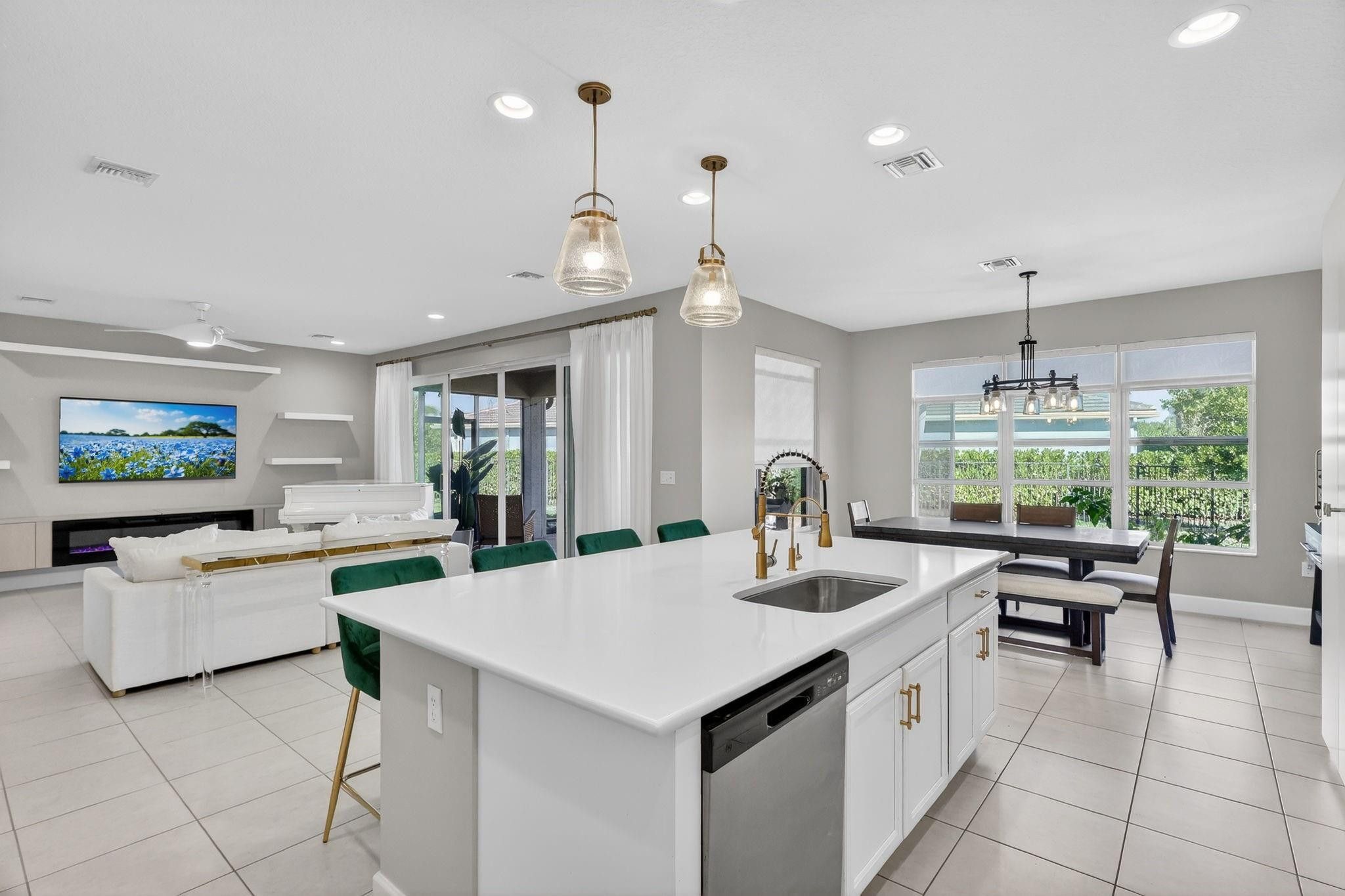 Beautiful Sierra model in Valencia Grove on a spacious corner lot w/ a fenced yard, n ext. lanai w/ oversize- screen-house, 3 bed n 2 bath w/ 2,064 sq ft under air! Tile thru/out, a spacious primary suite w/ dual custom closets n a lavish bathroom. Showpiece kitchen includes white soft-close cabinetry, granite counter, upgraded backsplash, custom pantry, GE stainless appliances w/ a double wall oven.! Add'l highlights include custom fireplace, high-hat lighting, laundry cabinets, custom closets, water filtration system, built-in garage cabinets, pull down stairs to storage loft. Riverland is a premier 55+ comm. w/ resort-style living! Onsite café, resort pool, grand social hall, an amazing sports center w/ with tennis, pickleball, n arts & culture center.