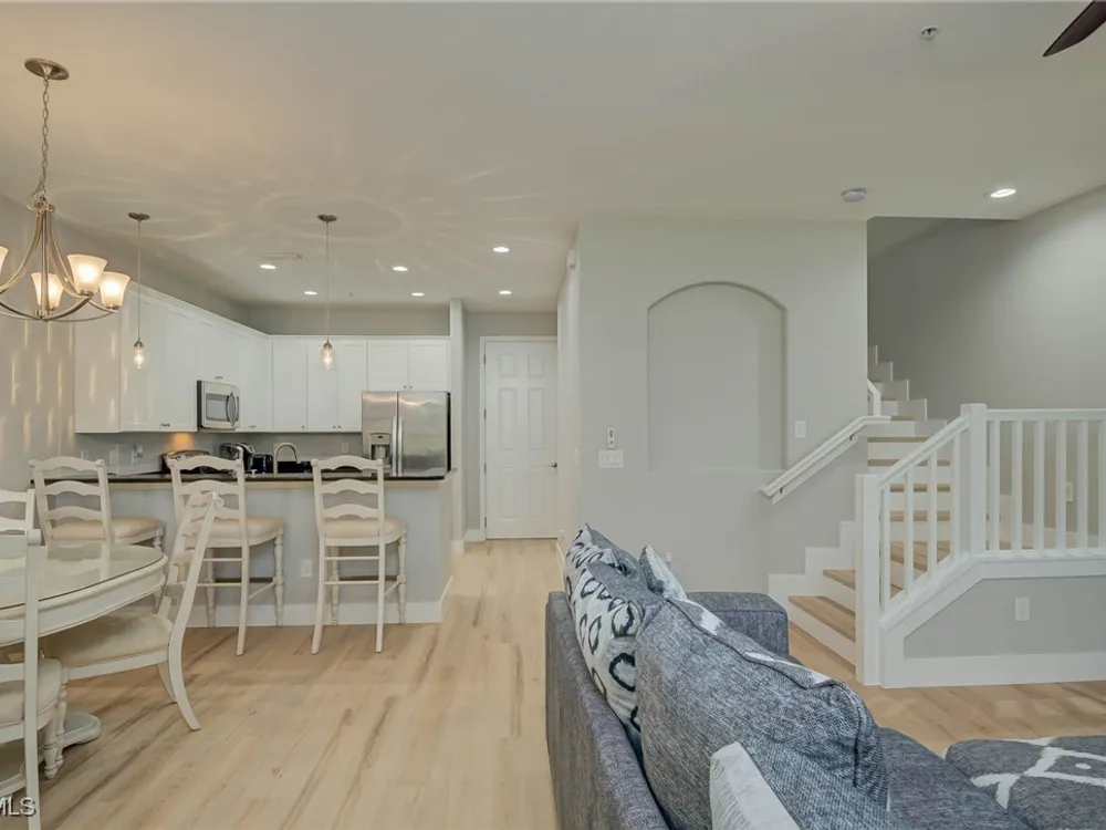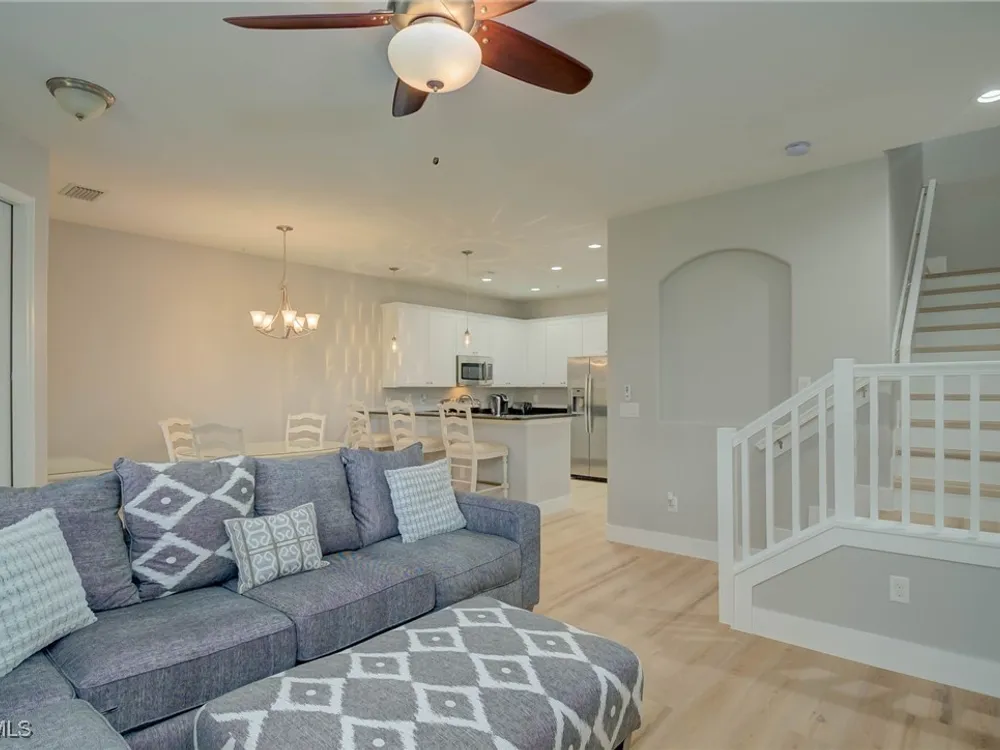 Extremely hard to find DIRECT WATERFRONT 3 Bedroom Townhome. Owner recently updated unit, including new LPV Flooring throughout. Home shows beautifully boasts white cabinets, upgraded appliances and is sold with existing furnishings. Located in a gorgeous tropical location, close to all Paseo's fabulous amenities. Take the 3D Tour. Home is easy to show and available for quick close, be in for season. Relax by the RESORT STYLE POOL or enjoy a beverage at the TIKI BAR. Watch a game at the PUB or enjoy brunch at the BISTRO. Grab a friend and watch a movie in the cinema or work out in the FULLY EQUIPPED GYM. New lighted bike path will connect you to Lee County bike trail system. Enjoy a game of doubles on the 6 har-tru TENNIS COURTS or join in the fun at the PICKLE BALL COURTS!! Come enjoy the PASEO LIFESTYLE
