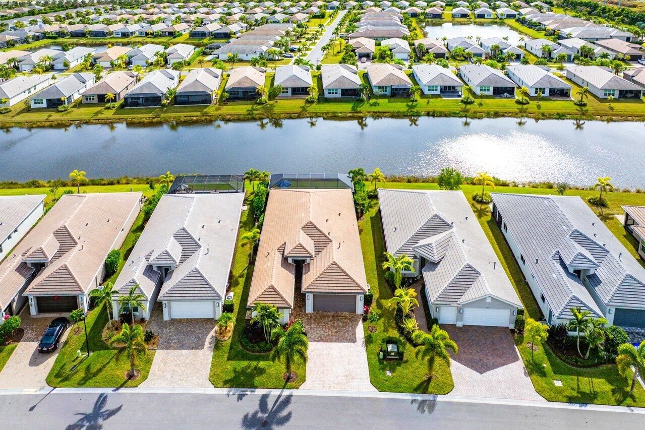 GORGEOUS lakefront living with a true WOW factor in this highly sought-after 2023 Bimini design, offering tranquil water views and sparkling pool and spa outdoor living. Situated on a quiet, low-traffic cul-de-sac, this exceptional residence includes approximately $280,000 in upgrades and delivers a private, fenced, and screened backyard oasis complete with a custom saltwater pool and spa, oversized pool patio, gas stub-out for a future outdoor kitchen, and outdoor shower. Built by award-winning GL Homes, this Bimini design features 2,358 square feet under air and approximately 3,520 square feet of total indoor and outdoor entertaining space, showcasing open-concept living with designer finishes throughout. The gourmet white kitchen is a standout, featuring a gas Profile cooktop,