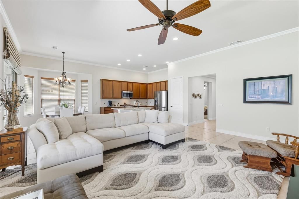 First time on the market! This wonderful Briscoe Model could be the perfect home for you. Two bedrooms, 2.5 bathrooms, den and extended 2-car garage. The open floorplan is set up for entertaining: Kitchen is appointed with granite countertops. soft-close drawers, island seating, GE gas range, microwave, dishwasher, and breakfast area with bay window. Kitchen Refrigerator and Washer and Dryer are included! The expanded walk-in pantry provides generous storage. Personal touches include crown molding in the kitchen, living room and primary bedroom; ceiling fans throughout, bay windows in the breakfast area, primary and second bedrooms. Primary bedroom suite features a spacious 7.5 x 6 walk-in closet with custom organizing system, private door to the covered patio, and ensuite bathroom with double vanity and custom shower. Relax on your 27 x 10 screened patio, under the ceiling fan while watching your favorite sports team. **The home will have a new roof before closing** Robson Ranch is a 55+ Active Adult Community with Golf, Tennis, two Swimming Pools, a Fitness Center & much more. There is something for everyone ! It's time to start your next adventure! * All information is deemed reliable but is not guaranteed and should be independently verified *