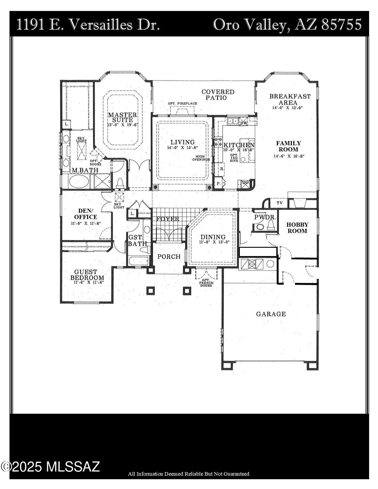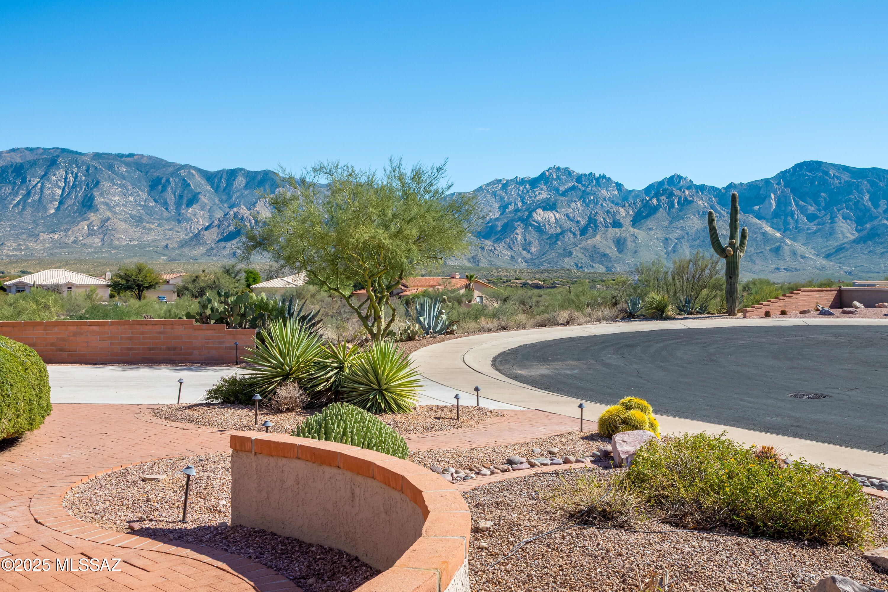 Sun City Oro Valley elegance and tranquility in this beautifully updated 2,344sf Regent Model, perfectly situated at the end of a peaceful cul-de-sac with stunning unobstructed Catalina Mountain Views. This spacious 2BR/2 1/2BA home also features a dedicated office/den & hobby room. Inviting brick front courtyard and enter a home filled with natural light, travertine flooring throughout, and a modern, open layout. The gourmet kitchen is a chef's dream with upgraded stainless steel appliances, granite countertops & large center island perfect for entertaining. The adjacent family room creates a cozy gathering space, while the formal living and dining rooms add a touch of elegance & sophistication. Additional upgrades include motorized blinds with remotes, stylish light fixtures, and