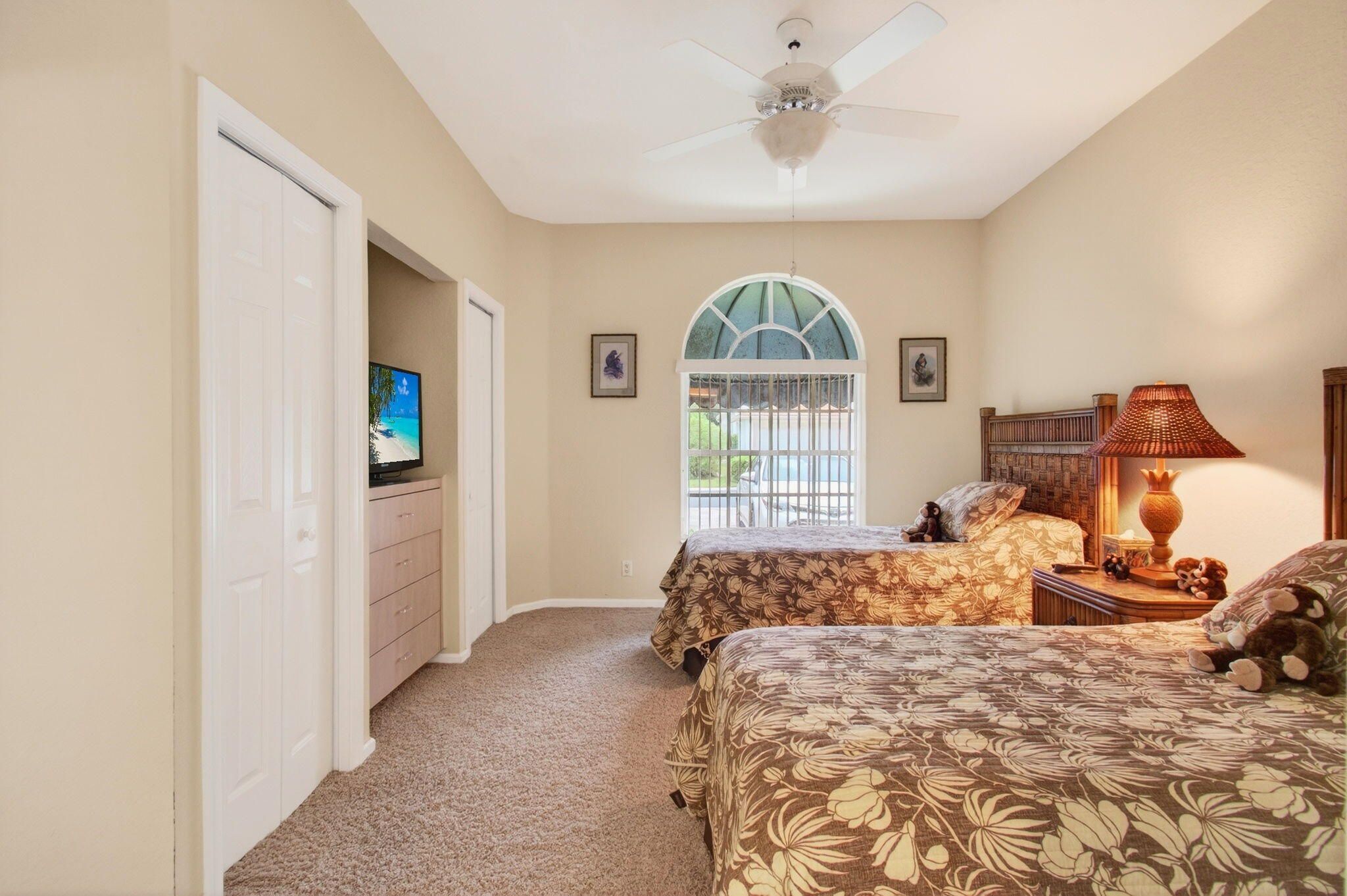 Beautiful 3 bedroom 3 bath home with gorgeous water view. Step into this beautiful home that features soaring ceilings. Updated kitchen that overlooks the serene lake. Separate living room and family room. Huge master bedroom suite is great and includes an office nook. Bedrooms 2 and three are spacious and perfect for guests. Large screen enclosed patio. New roof in 2023, AC 2020, Garage door 2016. HURRICANE SHUTTERS. Association requires buyers to have a minimum 690 credit score. Community offers: 24/7 guard gated security, pool, jacuzzi, clubroom, exterior house painting, lawncare and landscaping. OPTIONAL memberships are available at the Indian Spring Country Club for social and golf which include a state of the art gym, restaurants, golf pro shop, bar, and many social activities