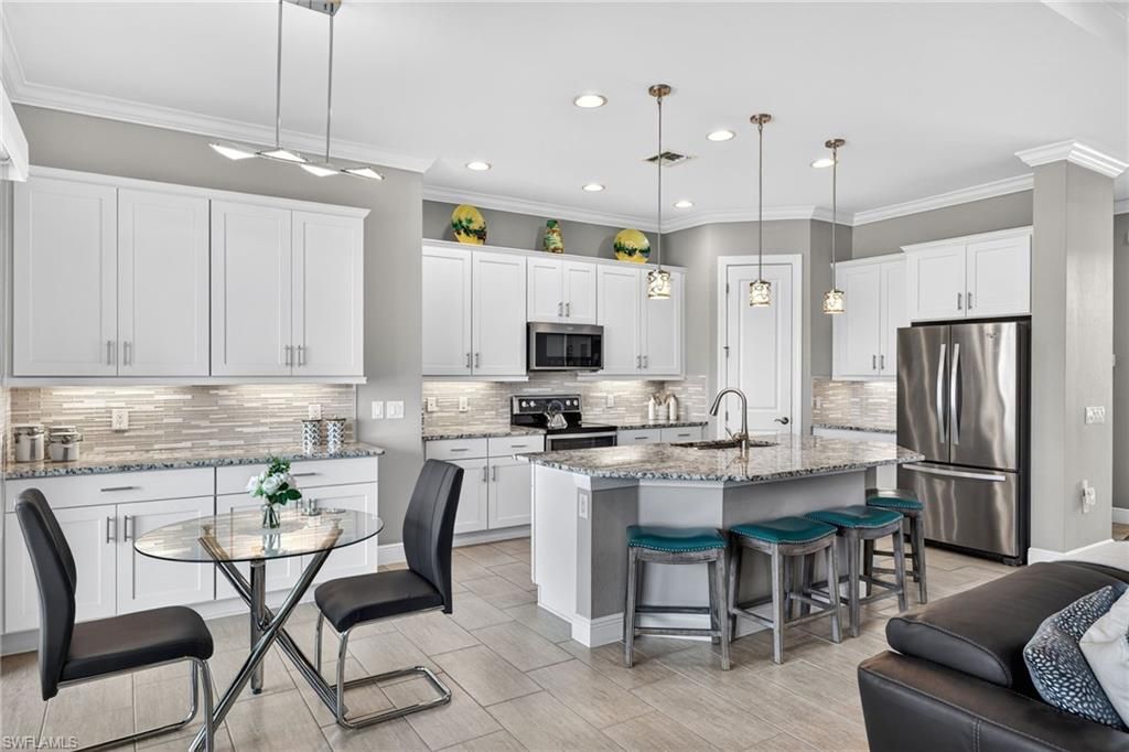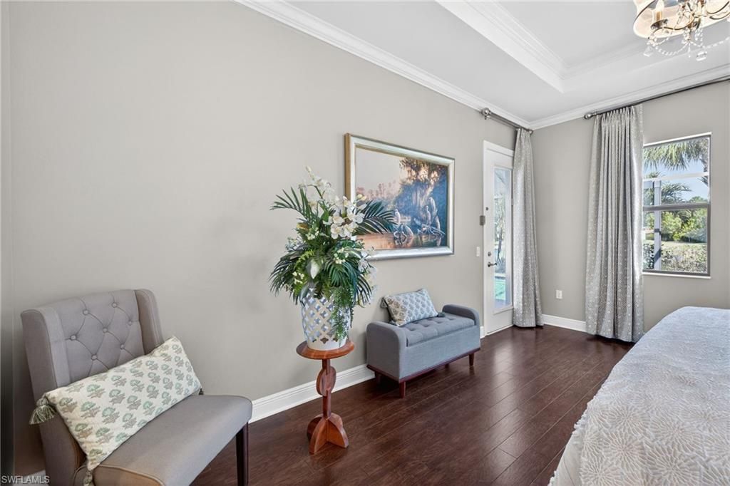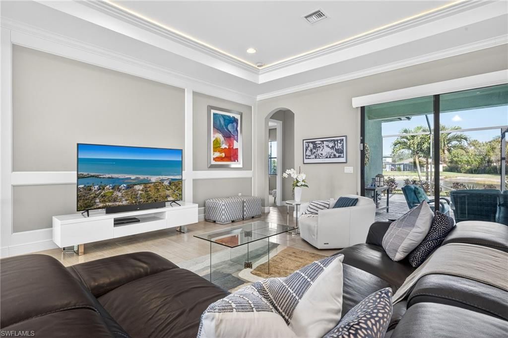 You’ll fall in love with this bright, airy and exquisitely cared for home the moment you step inside and experience the expansive ceilings and thoughtful layout of the open living space! One of only two Boretto's built by WCI (pre-Lennar) and located within the resort-lifestyle community of Arborwood Preserve, you’ll live everyday like you’re on vacation. This floor plan features soaring ceiling heights over 13’ in the foyer and dining room, tray ceilings in the great room and master bedrooms making its 2,648 square feet of living space feel even larger. What sets this home apart are its many decorator features Crown molding, wood accent walls; elegant window coverings, mirrored dining wall, tasteful lighting fixtures and recessed tray-ceiling lighting makes this home unlike any other. The kitchen features solid wood cabinets with soft-close hardware, under cabinet lighting, stunning granite counter tops, a stainless-steel appliance suite and a walk-in pantry with custom cabinets and shelving. The den is an extremely versatile space with its double French doors. Use it as your home office, study, hobby room or, because it features a closet, it could be a 4th bedroom if desired. The master bedroom suite provides maximum privacy. It is spacious and tranquil; making for the perfect owner’s retreat. A large walk-thru closet is upgraded with custom cabinetry throughout by Simply Closets ®. A private door leads to the lanai and pool area. The luxurious ensuite features natural lighting, an oversized walk-in shower and dual-sink vanity with multiple drawers. A primary guest bedroom features its own ensuite for maximum privacy. The laundry room is smartly laid out and features a utility tub and broom closet. Ample cabinets and a drying bar set the space off nicely. A new washer was installed in January 2026. The home’s flooring features ceramic tile in the main living areas, gorgeous engineered hardwood in the master bedroom and its closet and carpet in the guest bedrooms. Walking through the oversized sliding glass door you will be welcomed by a spacious lanai featuring a salt water heated pool with waterfall feature built by Custom Pools by Design®. The perfect space for relaxing or entertaining. Other features include an oversized 2.5 car garage w/overhead storage racks, a mini-split a/c system in the garage, a whole-home water treatment system, a widened brick paver driveway You will definitely want to see this home in person to fully appreciate all it has to offer. Homes of this caliber seldom come to market in this neighborhood. Arborwood Preserve is an amenity rich neighborhood complete with resort style pool, waterfall and grotto. The town center also offers a pool bar/restaurant, complimentary coffee room, fitness center, yoga studio, two card rooms, theater and art studio. Lighted bocce ball, pickle ball and clay tennis courts will keep you active. Close proximity to RSW Airport, spring training parks, dining, shopping and entertainment.
