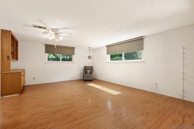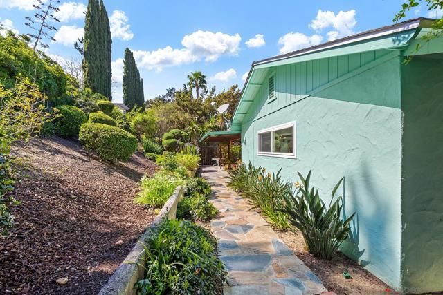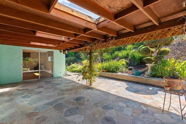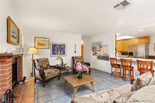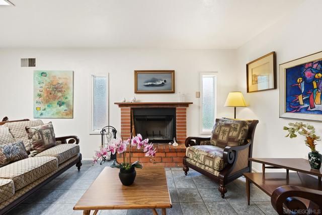 Charming with timeless appeal, this beautifully maintained 3-bedroom, 3-bath home offers 2,002 sq.ft. of thoughtfully designed living space in the sought-after Seven Oaks community of Rancho Bernardo. A long private driveway sets the tone, leading to a home that blends classic layout with inviting comfort. The floor plan is well-balanced, featuring a spacious primary suite tucked toward the rear and two additional bedrooms at the front, including one with its own ensuite. The carpet-free interior showcases a refined mix of tile and plank flooring, complemented by a warm, vintage-inspired aesthetic. The light-filled kitchen with bar seating opens to an expanded great room anchored by a cozy refurbished fireplace, ideal for everyday living and entertaining. A skylight and abundant windows enhance the bright, welcoming ambiance throughout. Outdoors, enjoy a private, garden-like backyard with seasonal fruit trees, lush, low-maintenance landscaping, a covered patio, and a charming flagstone entertaining area. The front yard features drought-conscious rock landscaping for added ease and curb appeal. As well, this property features a newly installed roof. Residents of Seven Oaks enjoy access to a community center with pool, spa, tennis courts, fitness center, and a variety of social clubs and activities. Scenic mountain views welcome you as you enter the neighborhood. Conveniently located near shopping, dining, the post office, and with easy freeway access.