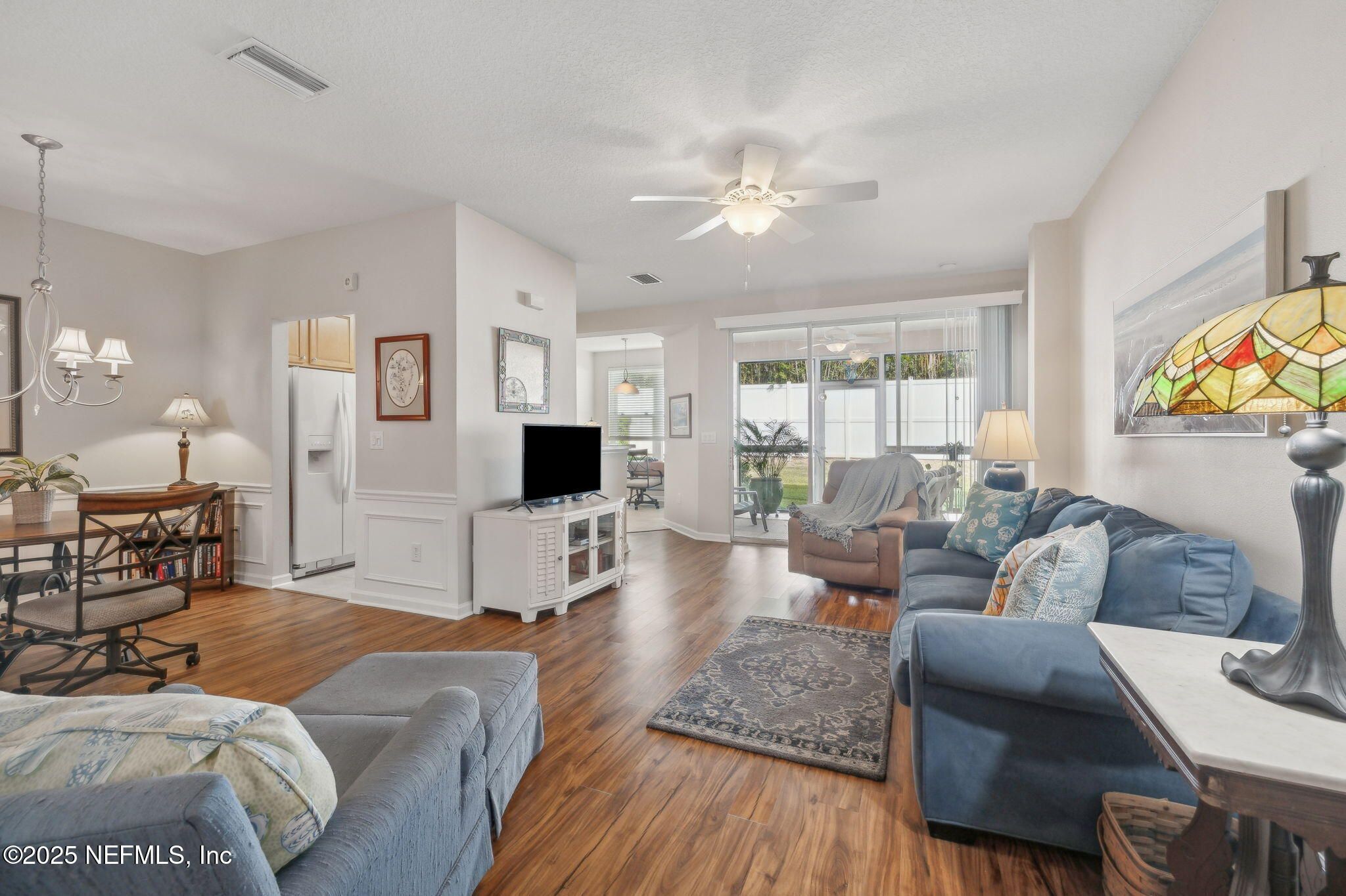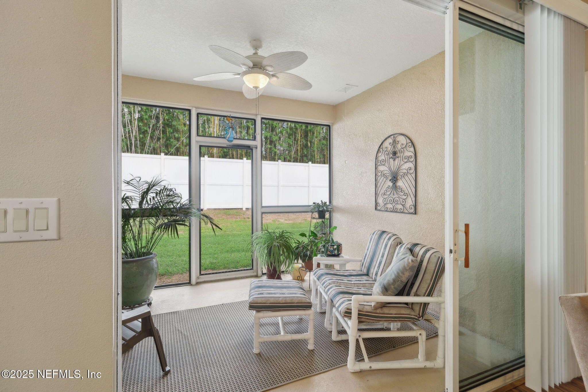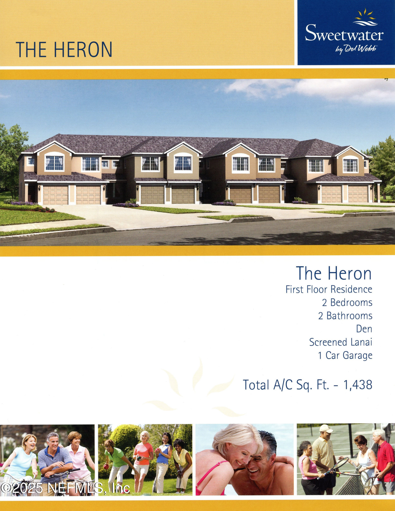 Welcome home to this Move-in Ready, Maintenance-Free, Ground Floor 2BDRM/2BA w/Den, 1-car garage Condo in The Tides at Sweetwater by Del Webb --Jacksonville's Premier 55+ Active Adult Community.This popular Heron Model w/1,438 sq.ft. boast of warm Vinyl Plank Wood Flooring in Living/Dining/ & Den; New Neutral Color Carpet in Primary & 2nd/Guest Bdrms (2025). Other Seller Upgrades incl: New Pelham Windows throughout; New HVAC 2025; New Rheem Water Heater 2022; Newer Bosch Dishwasher, Newer Whirlpool Refrigerator & Microwave; Kitchen Glass Tile Backsplash; Neutral Interior Wall Paint; Decorative Leaded Glass Front Door Insert; New Kohler no-clog Toilet in Hall Bath; Ceiling Fans installed in Bedrooms, Great Room & Screened Lanai; Cornices on both sliding glass doors; Full length shelving in garage & above Washer/Dryer; Automatic lighted garage door. Primary Bedroom & Bath with His/Her Cultured Marble Countertops, Honey Maple Cabinetry & Upgraded Frosted Shower Enclosure. No CDD Fees! THE TIDES @ SWEETWATER BY DEL WEBB is centrally located to major shopping (St. John's Town Center & Avenues Mall), grocery stores, restaurants, pharmacies, major medical (Mayo Clinic & Urgent Care), & easy access to major highways, the airport, and the city's Atlantic beaches. SWEETWATER residents enjoy the World-Class 22,000 SF Amenities Center called Summerland Hall, w/State-of-the-Art Fitness Center, Indoor heated & Outdoor Pools, indoor Jacuzzi, Ballroom & Dance Floor, Game & Crafts Rooms, Library, Business Center, Yoga/Pilates Room, Billiards Room, & a variety of Chartered Clubs & Interest Groups -- all staffed by a full-time Lifestyle Director. Tennis & Pickleball Courts, Bocce Ball Courts, Party Pavilion w/BBQ Grills, Putting Green, lighted walking/nature trails, bike lanes, & much more! Enjoy the Maintenance-Free Lifestyle in The Tides at Sweetwater!
